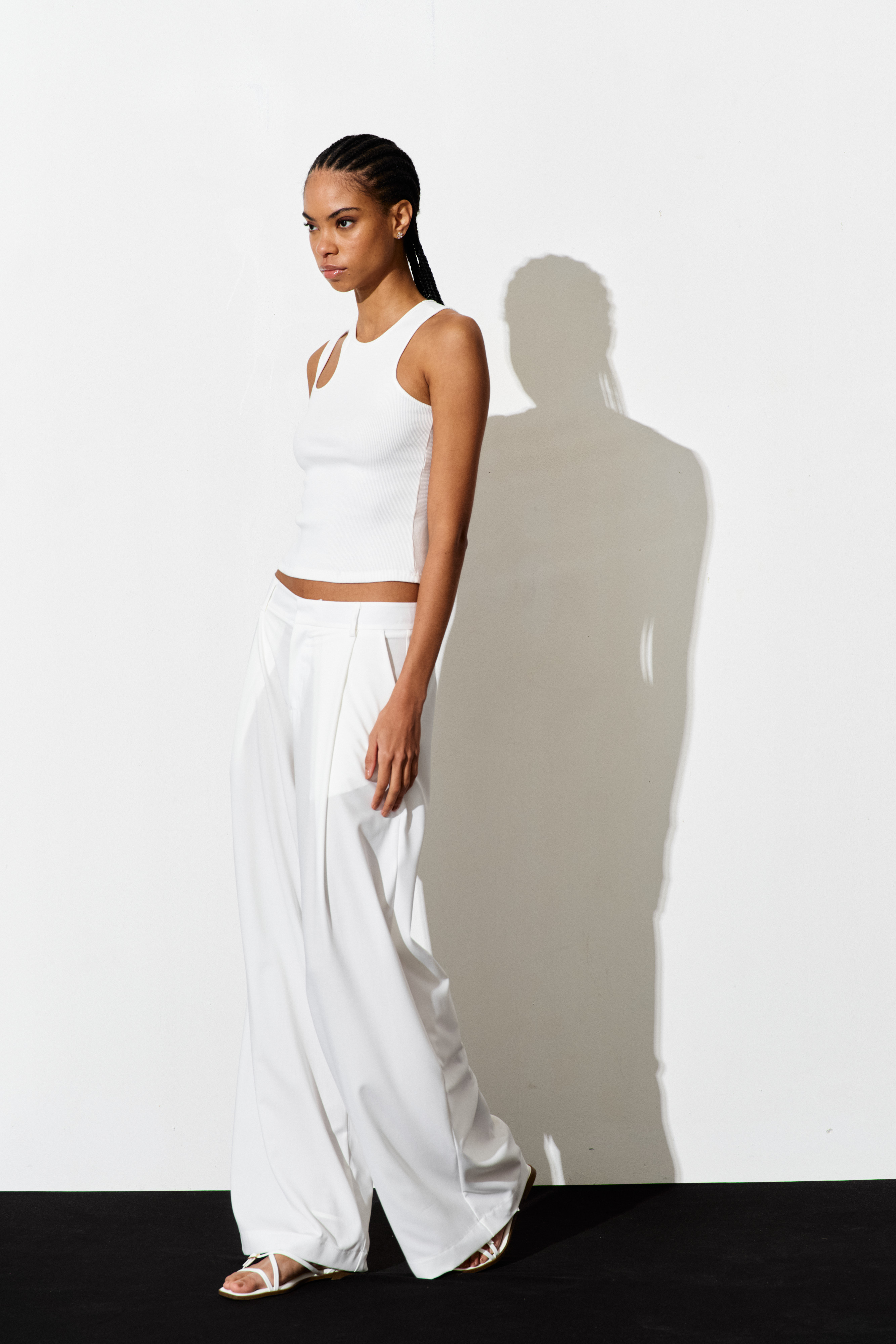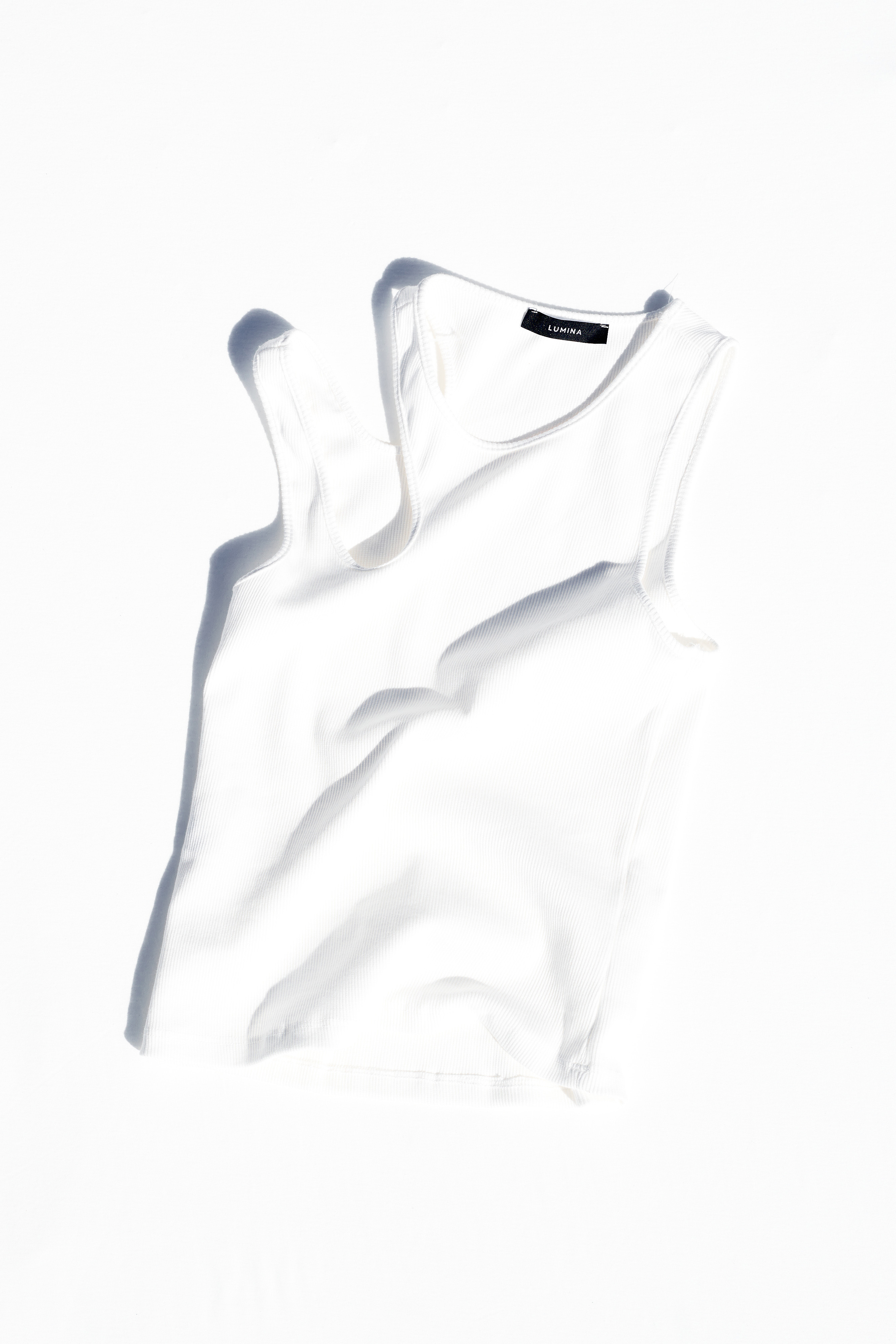 Canotta crop a costine con scollo ampio arrotondato.