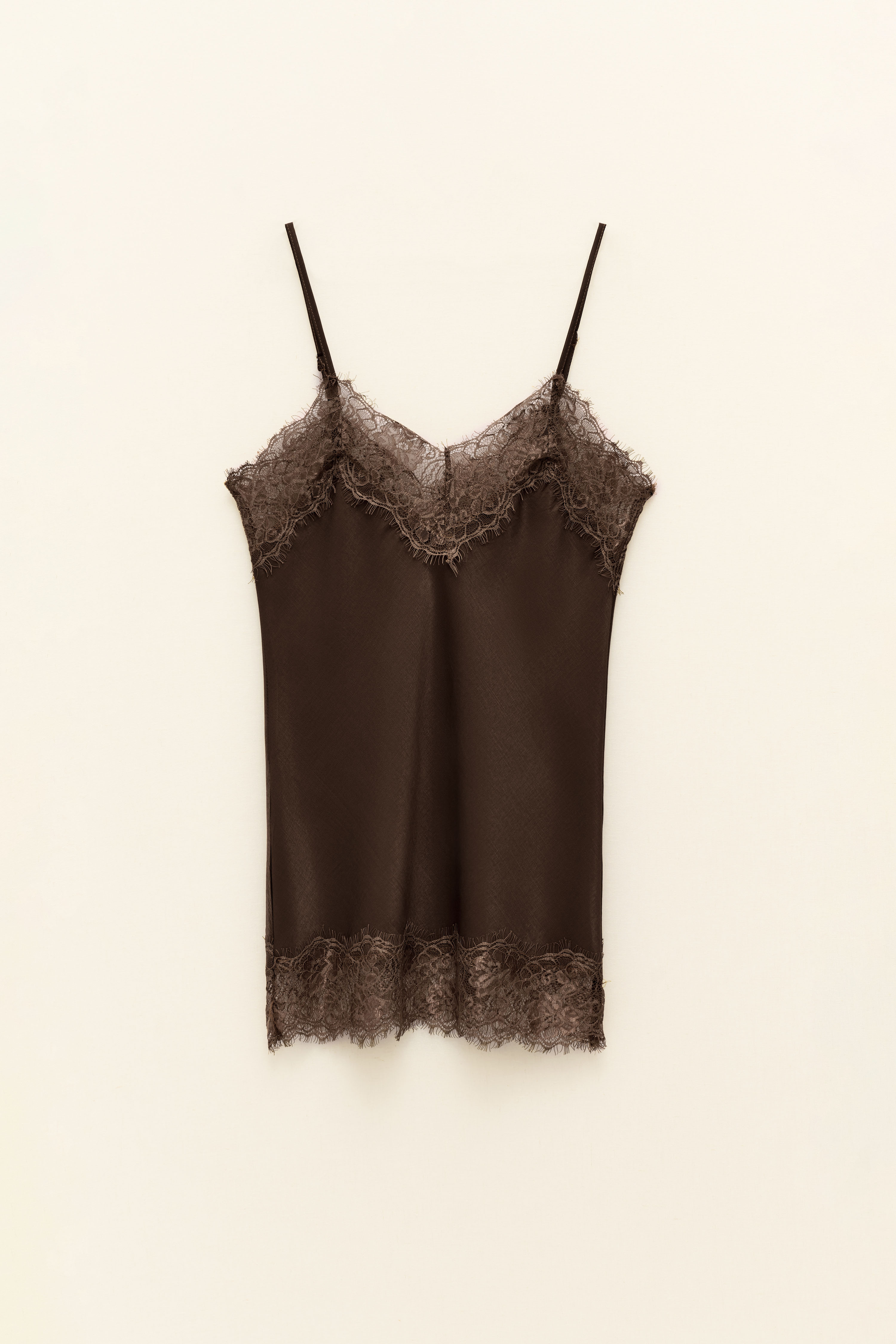 Scollo a cuore sagomato. Spalline sottili regolabili.
