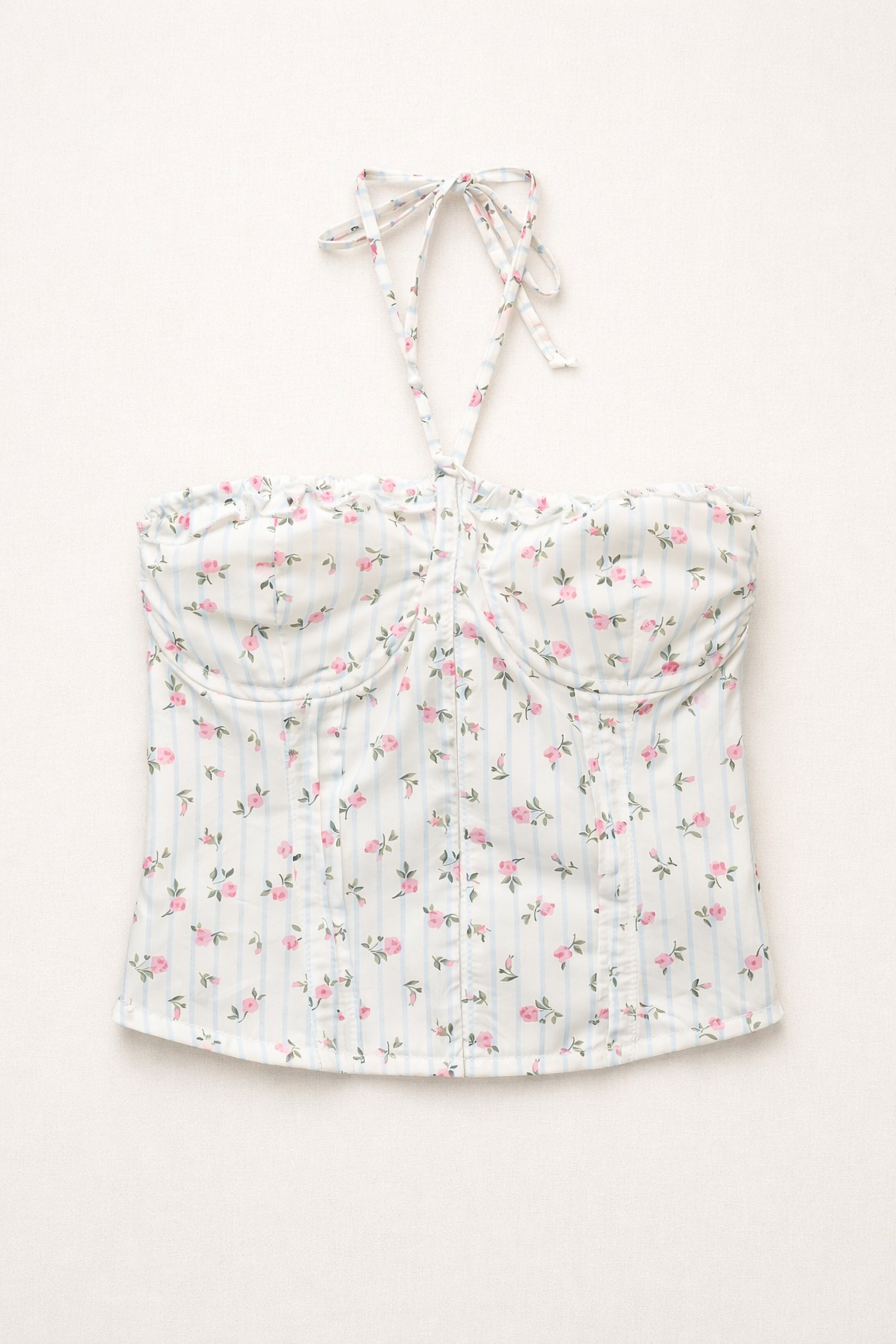 Scollo a cuore sagomato. Spalline sottili regolabili.