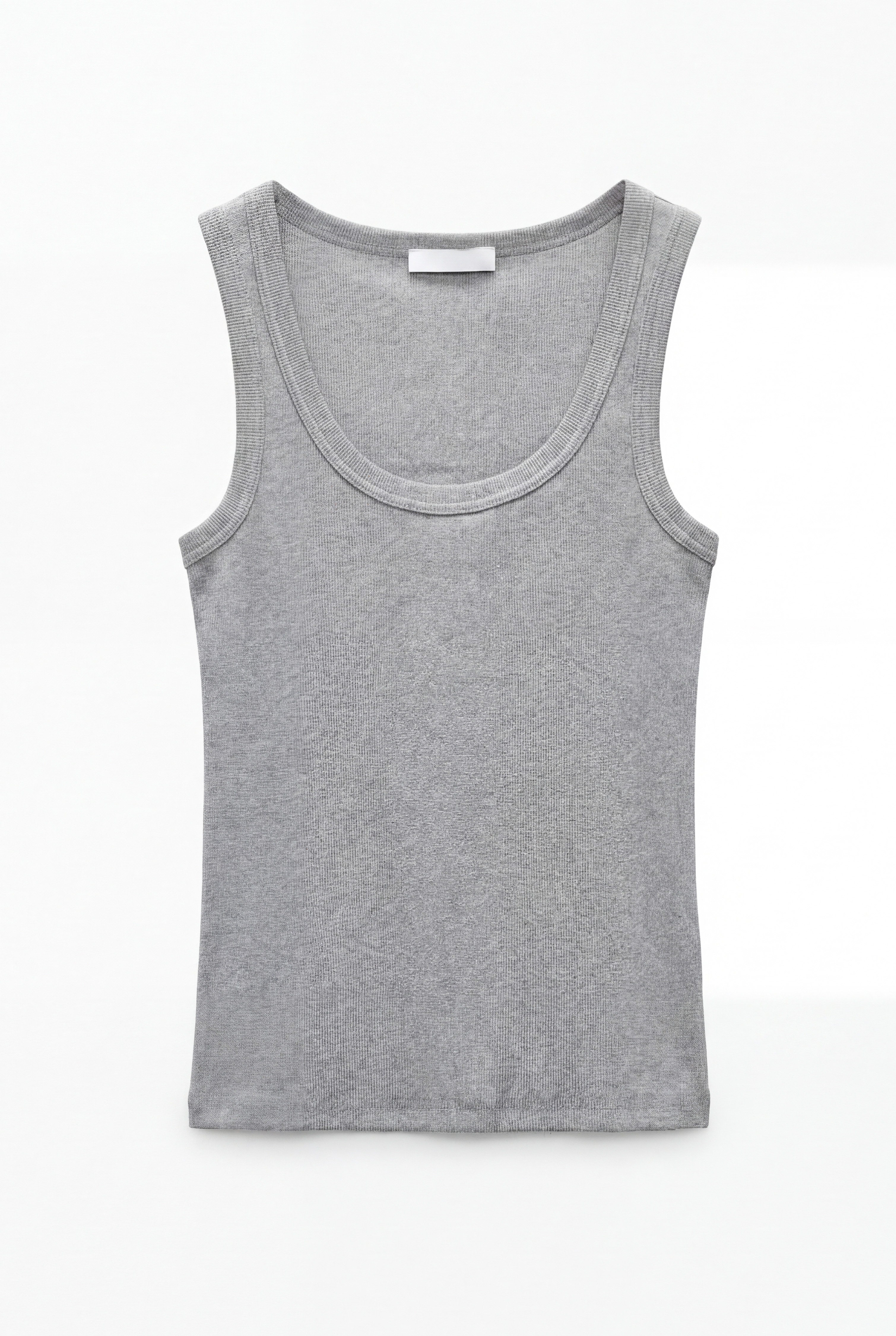 Canotta crop a costine con scollo ampio arrotondato.
