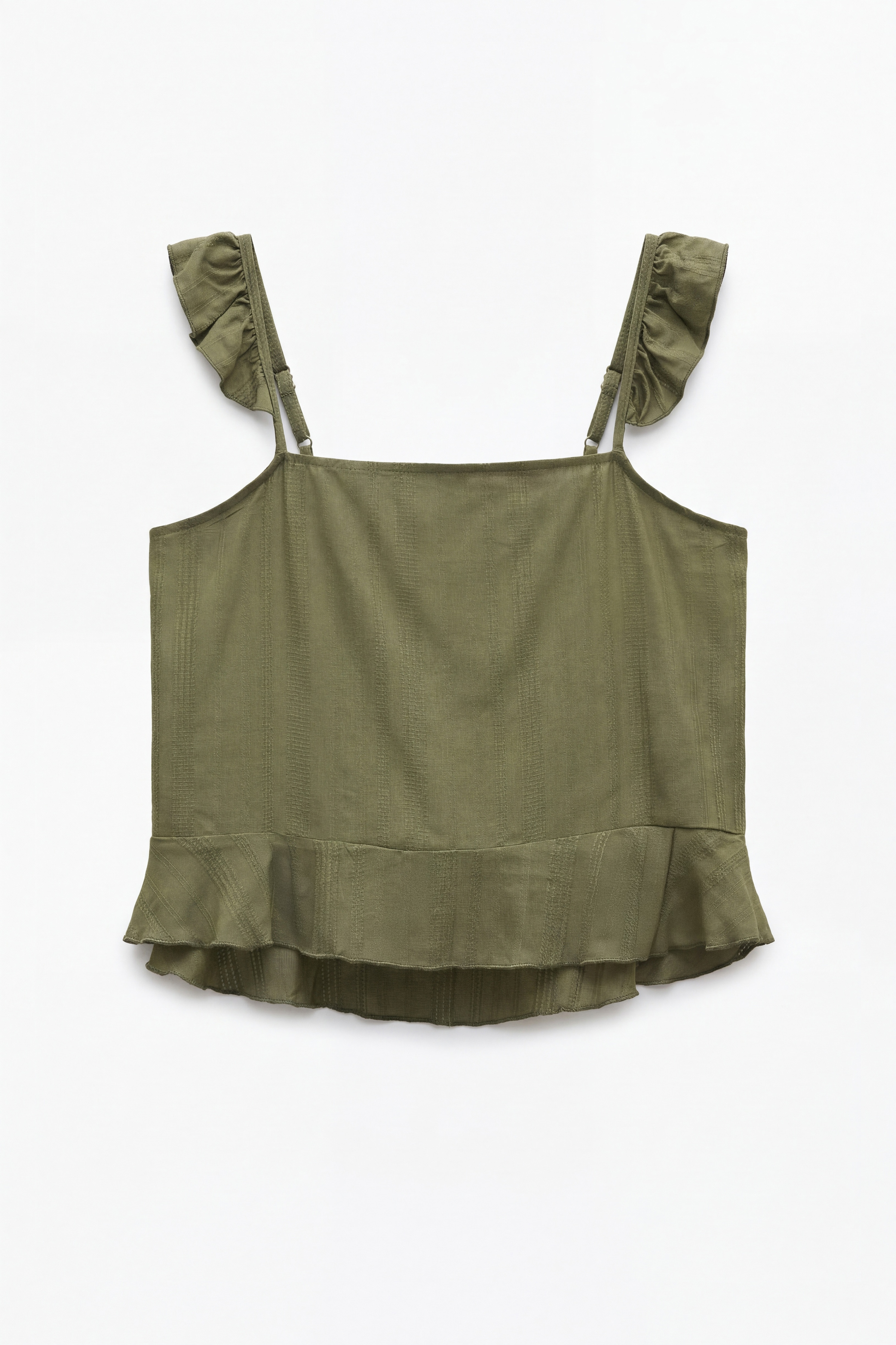 Scollo ampio, spalline larghe, fondo dritto rifiniti con inserti in pizzo.