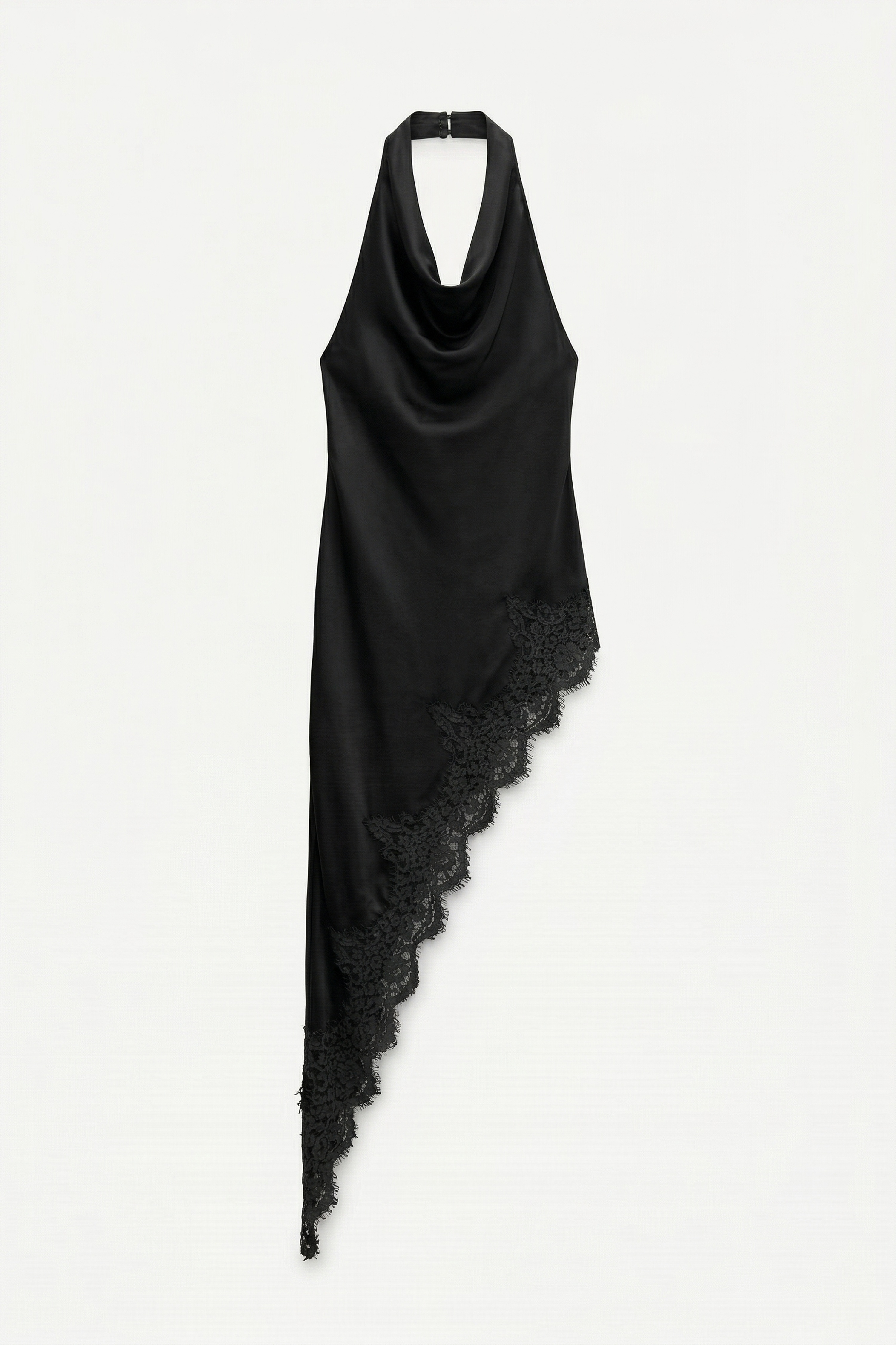 Scollo halter con collo alto avvolgente.