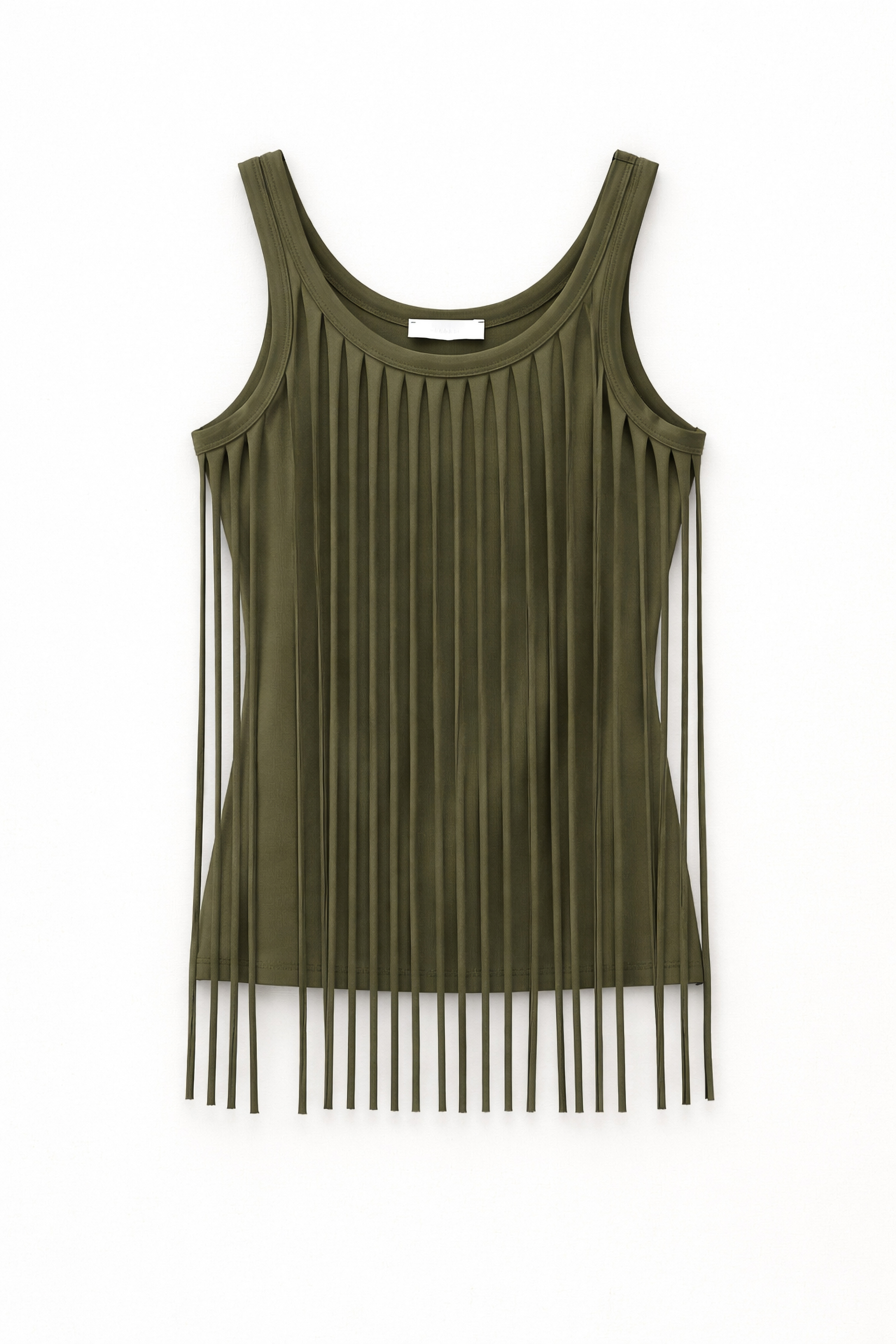 Inserto frontale con frange lunghe.