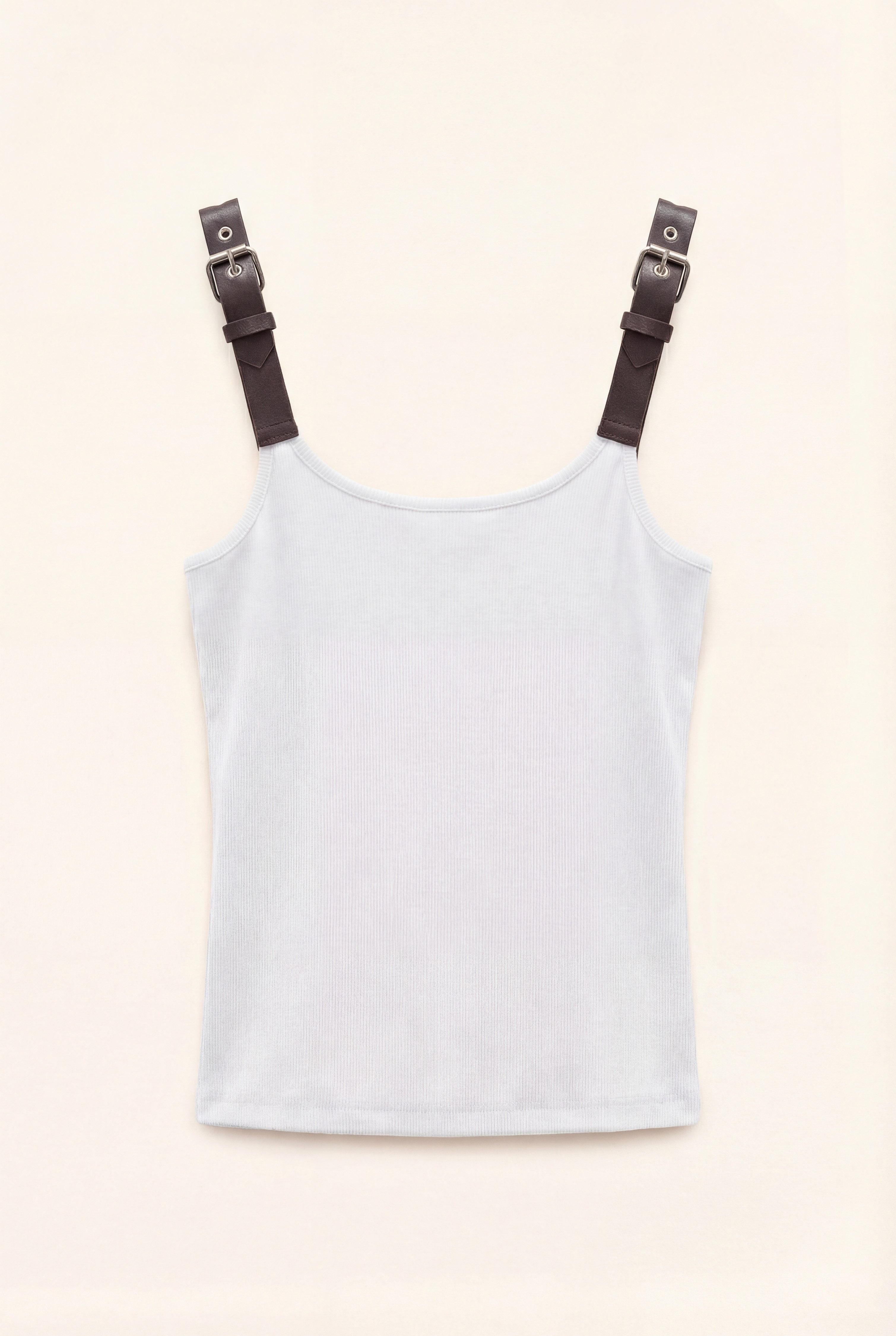 Top in maglia con spalline in pelle