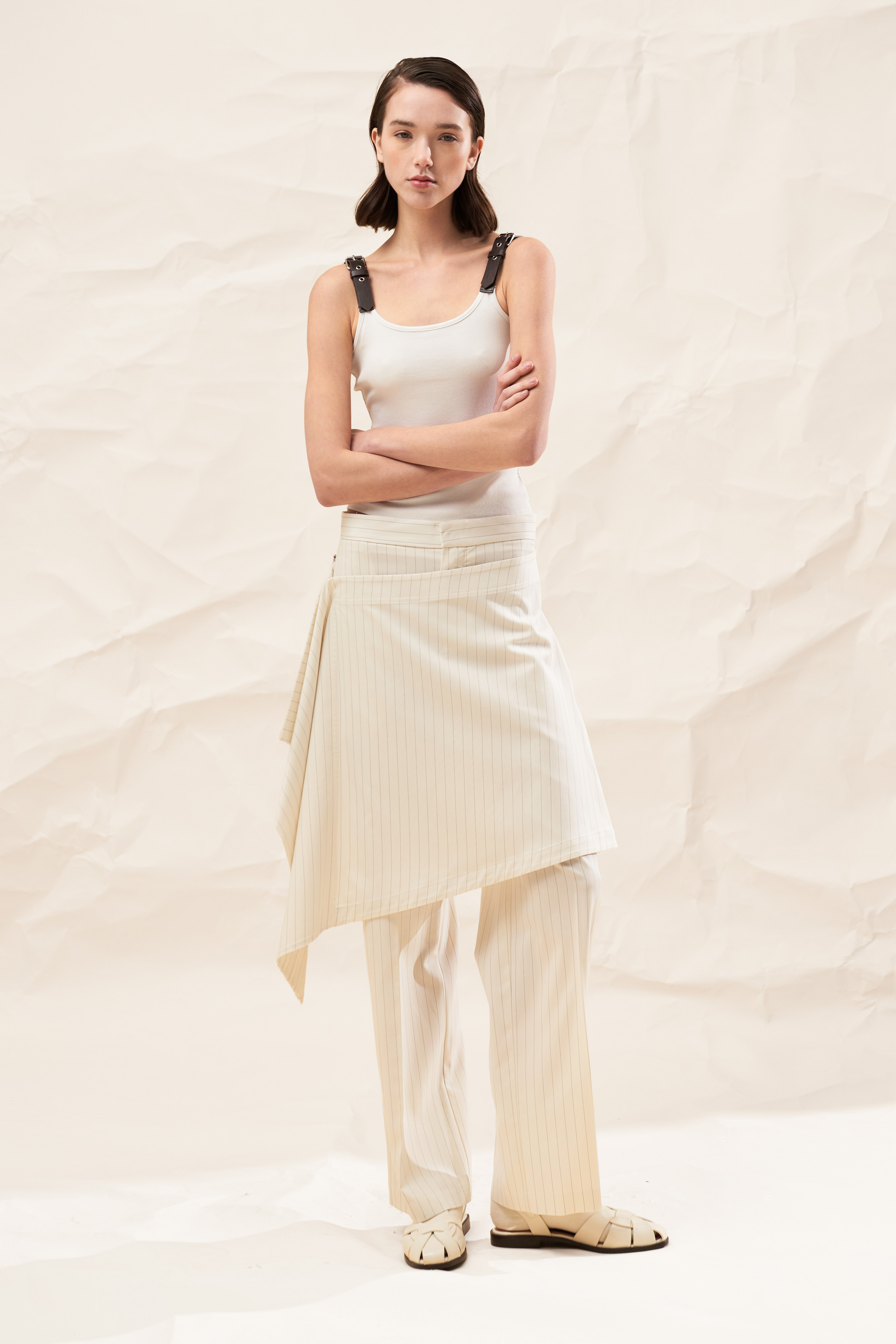 Top asimmetrico in tessuto satinato 100% viscosa.