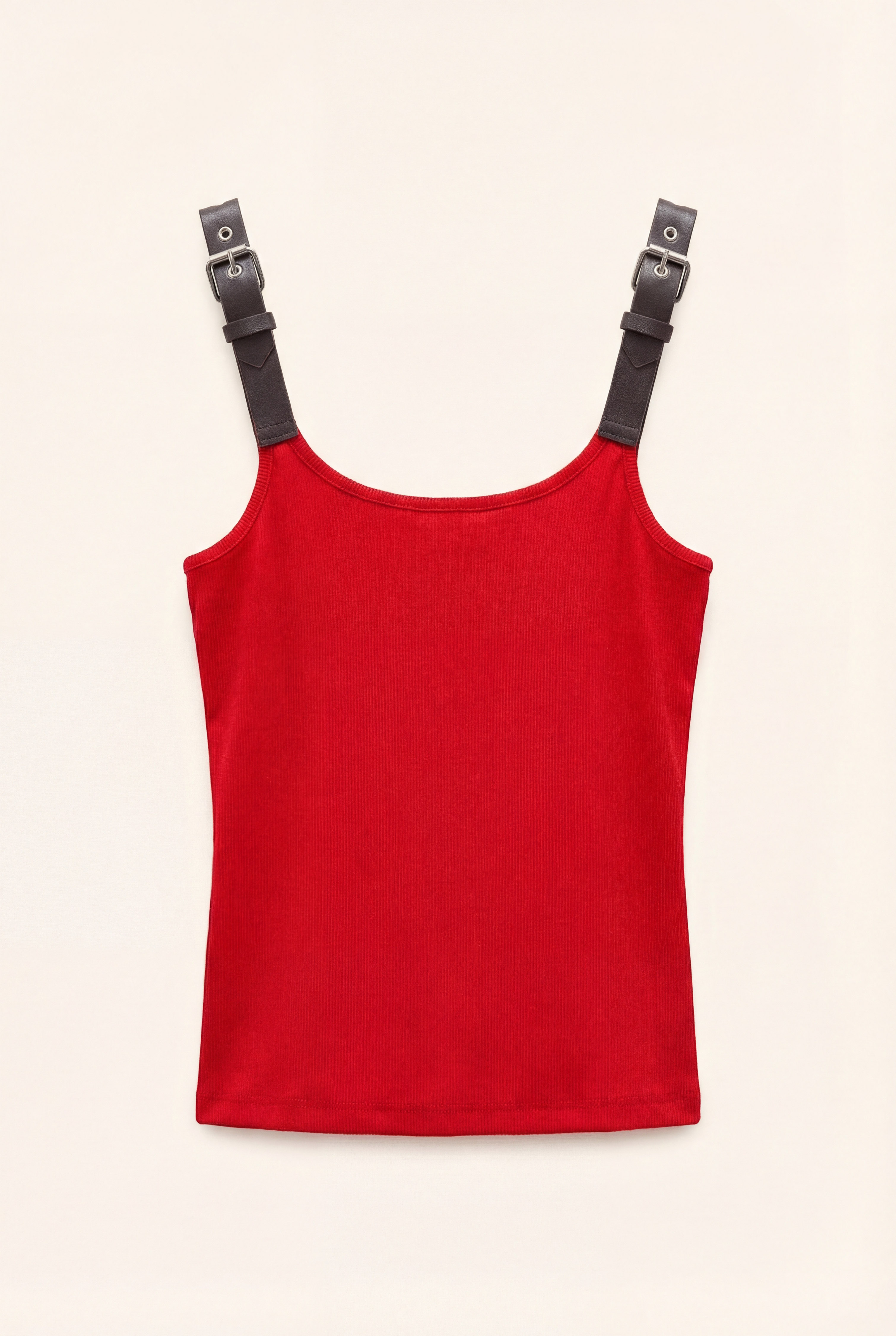 Top in maglia con spalline in pelle