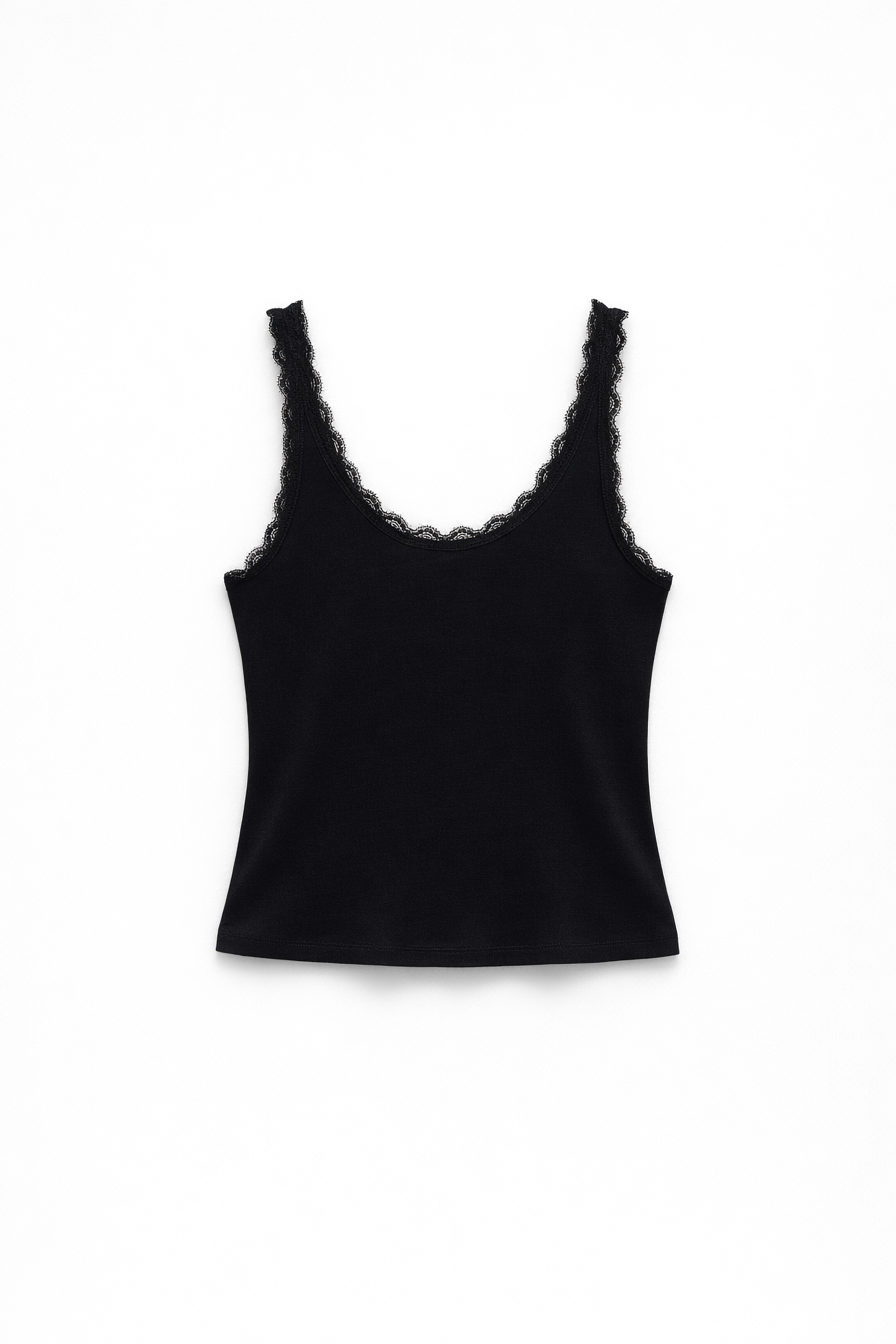 Senza maniche con spalline larghe rifinite in pizzo.