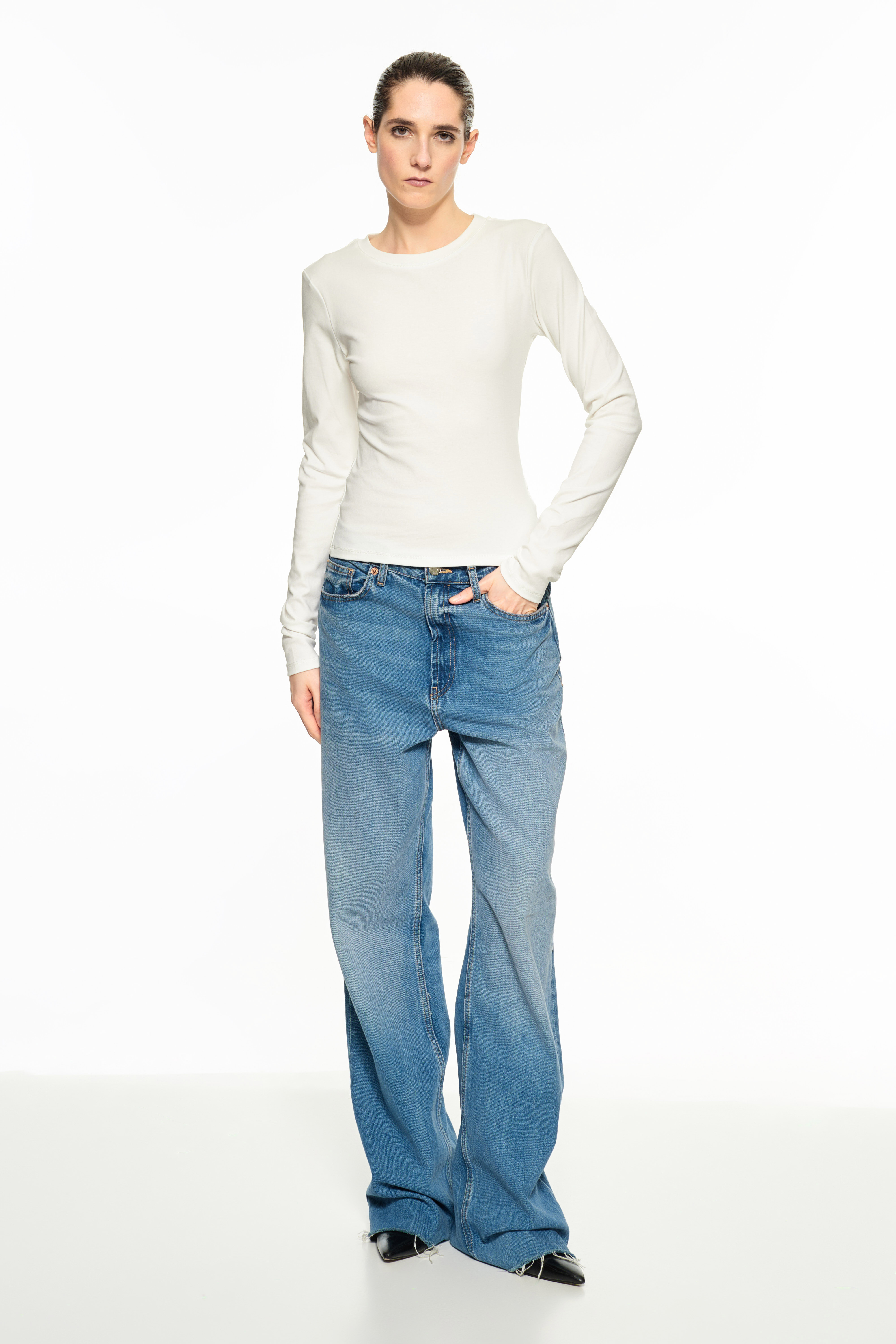 Top made of fine ribbed knit fabric.