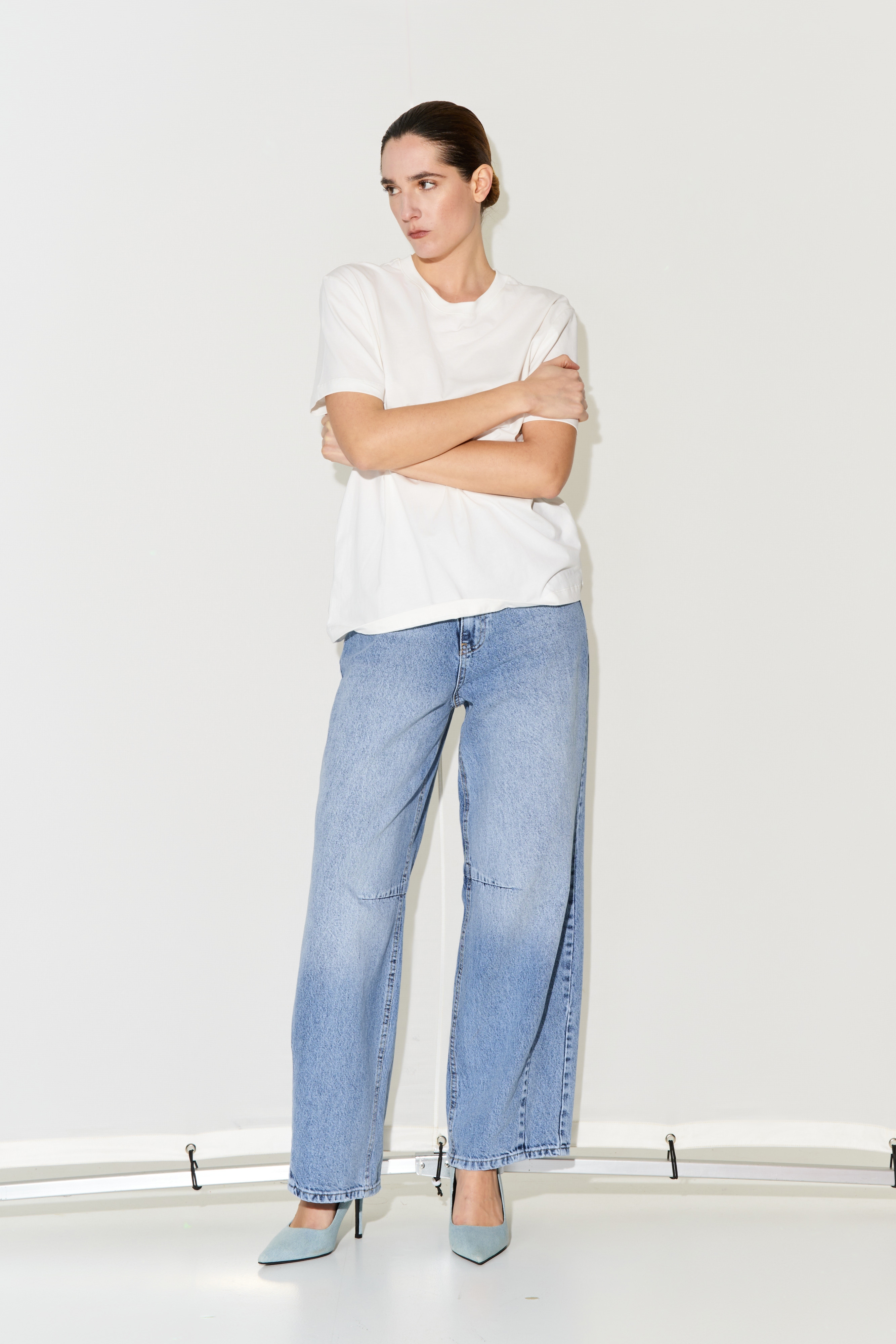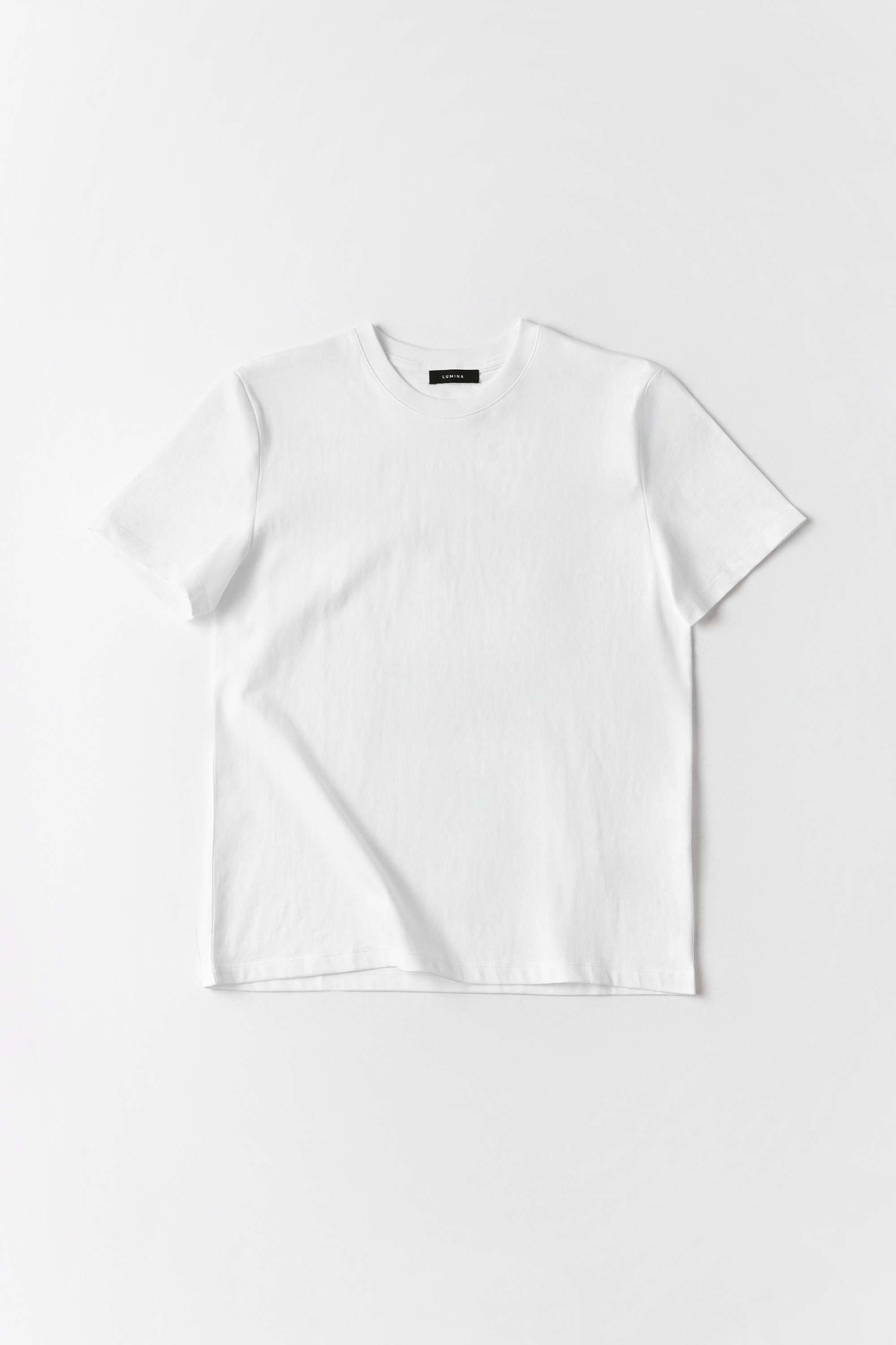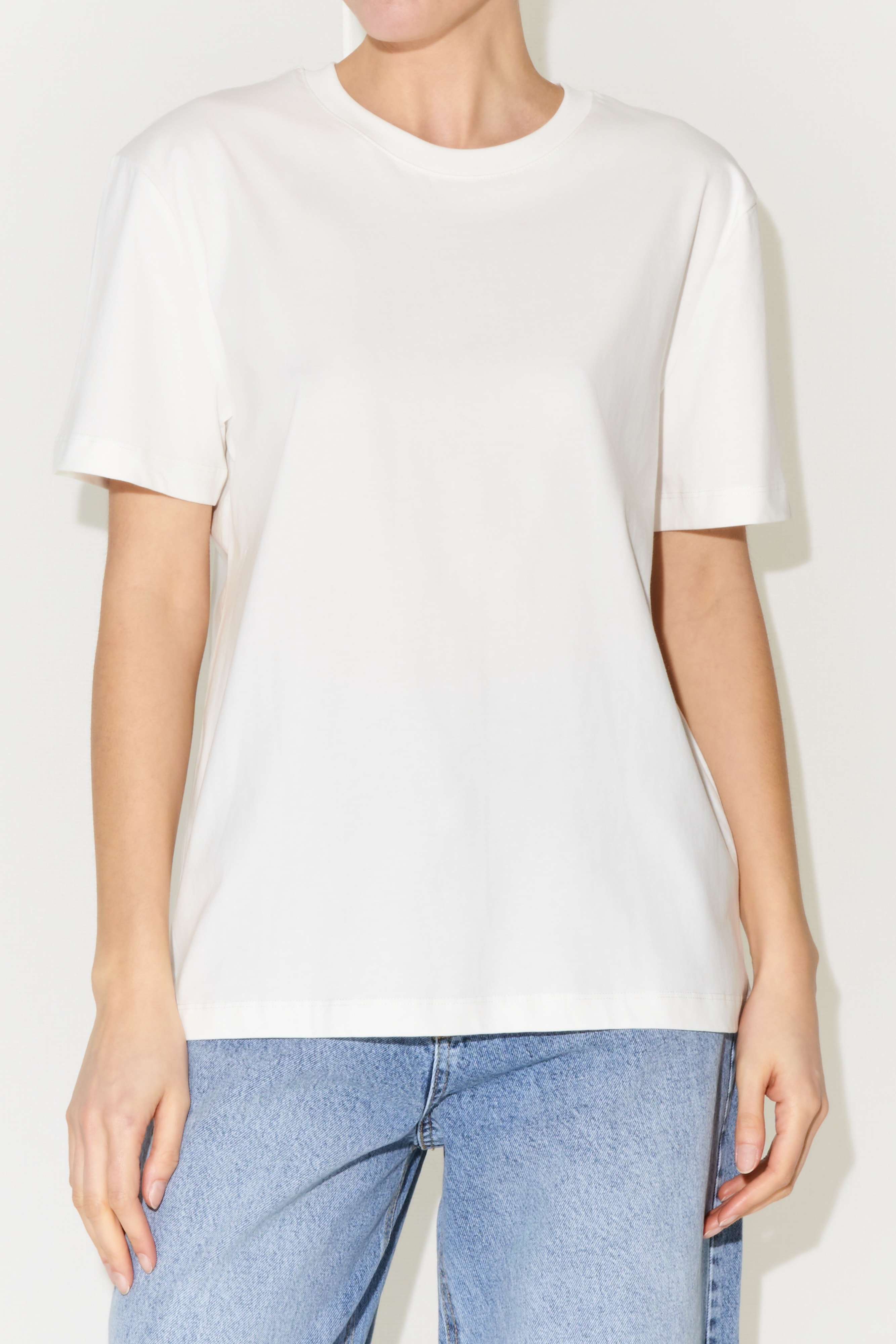 Crew neck, short-sleeved cotton T-shirt.