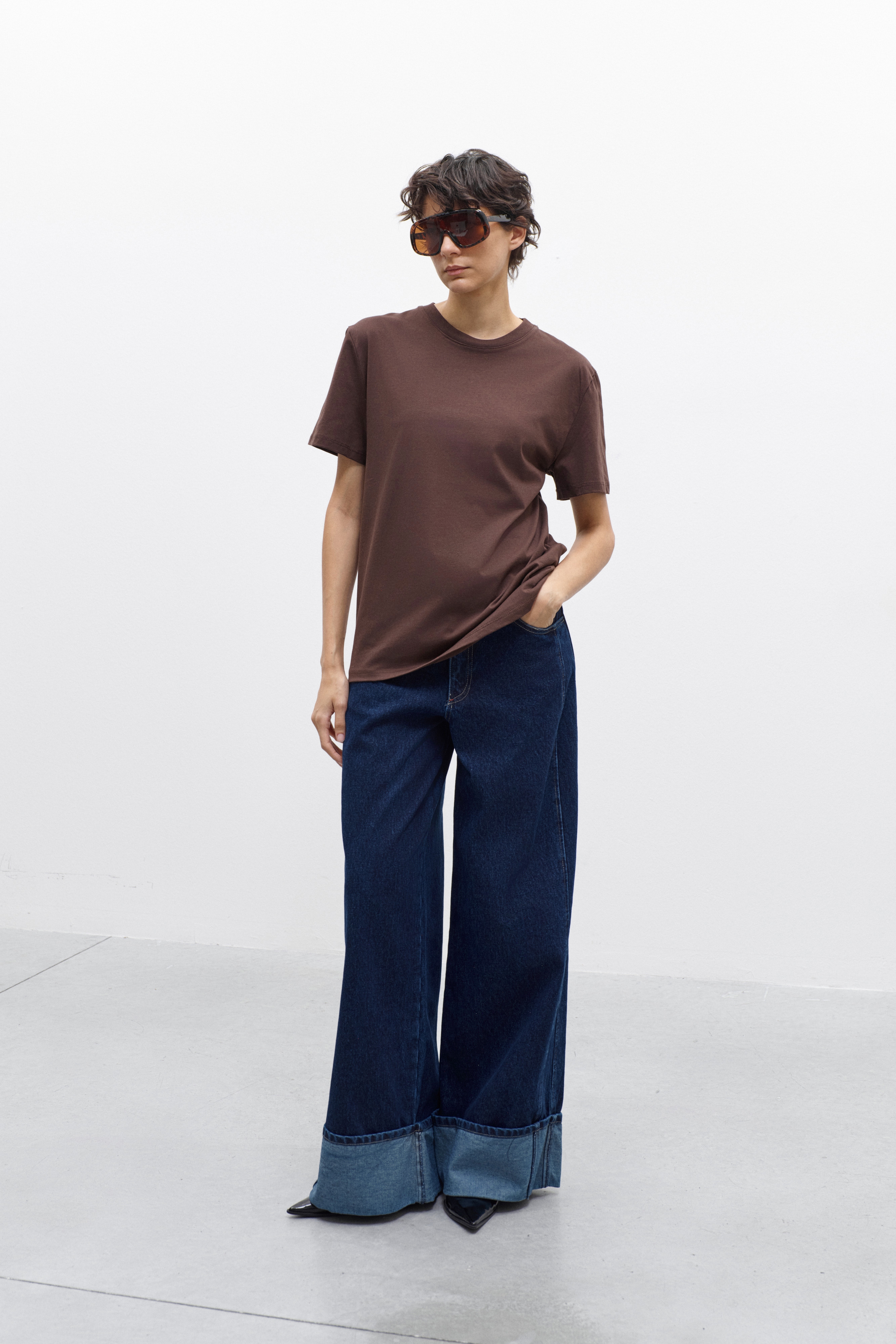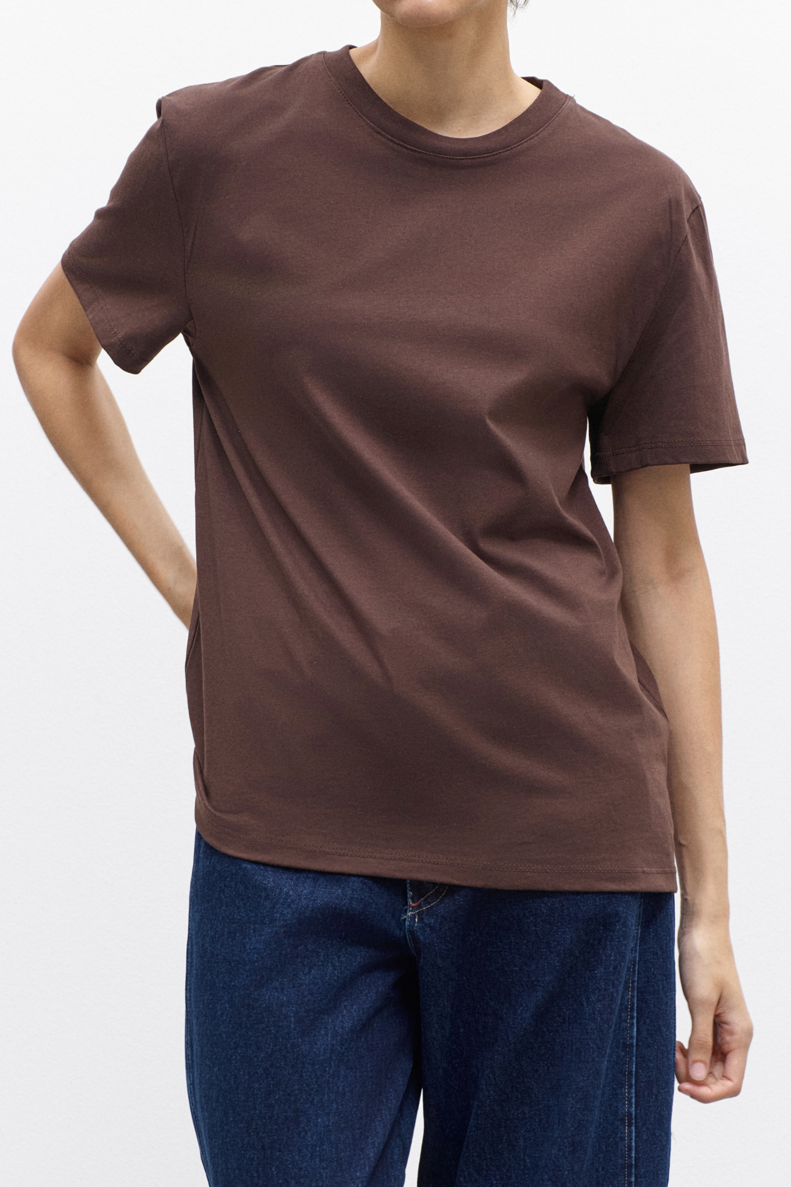 Crew neck, short-sleeved cotton T-shirt.
