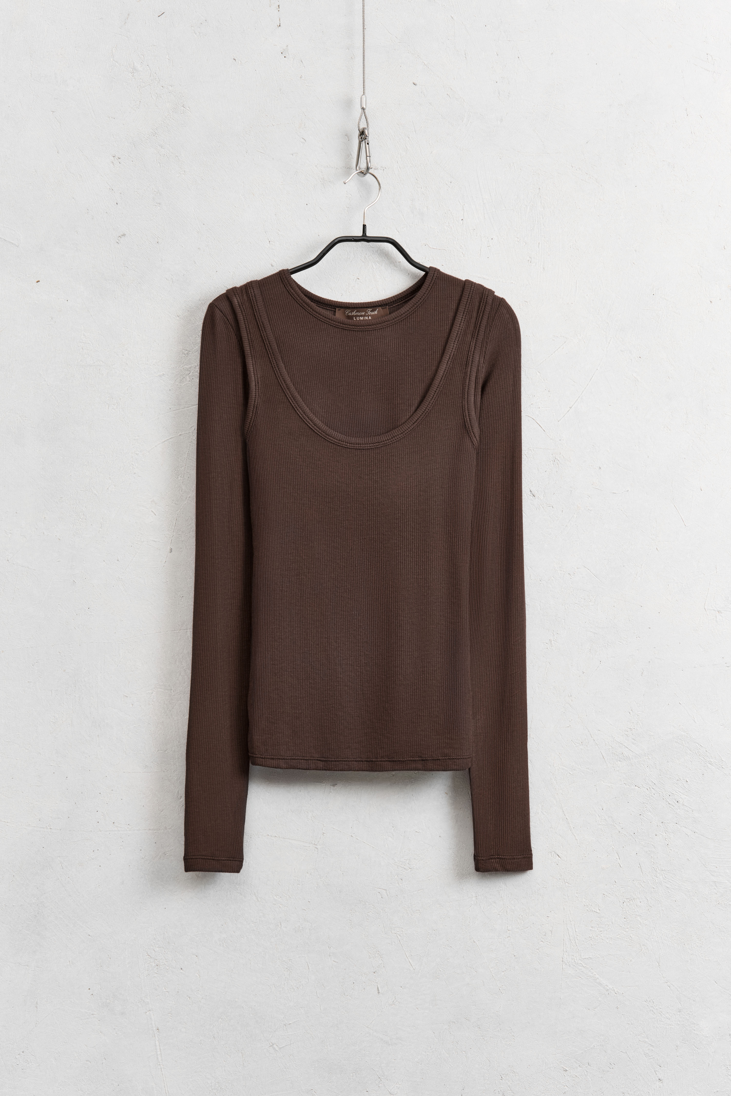 Top made of fine ribbed knit fabric.