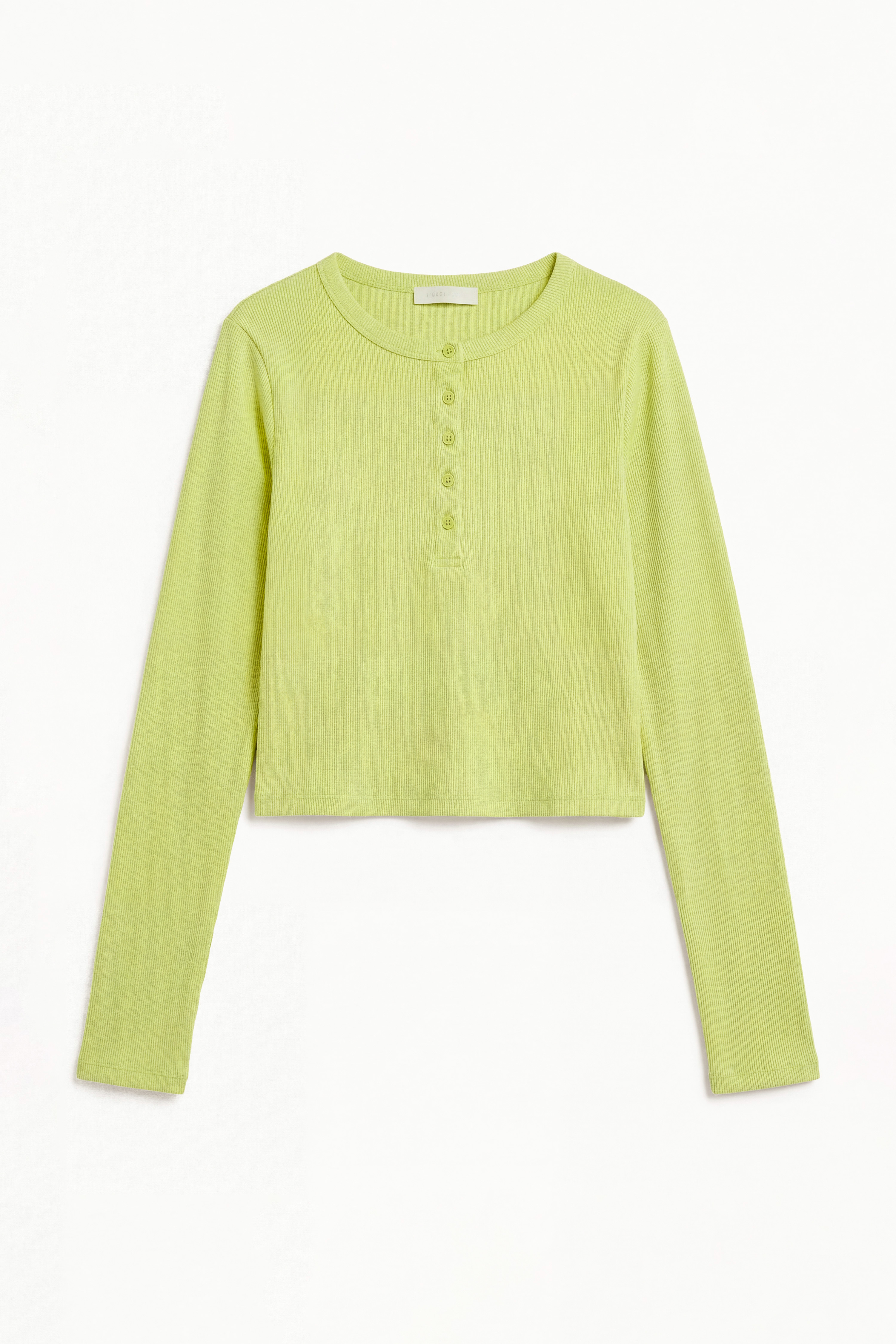Round neckline with front buttoning.