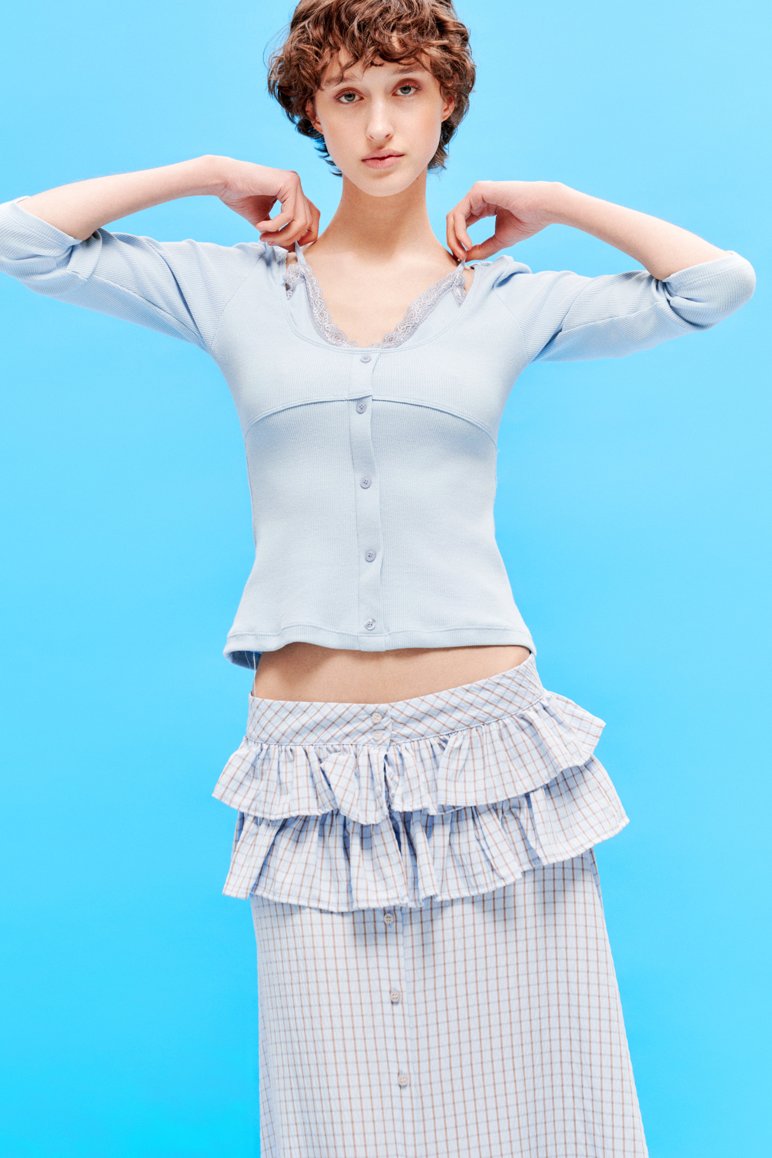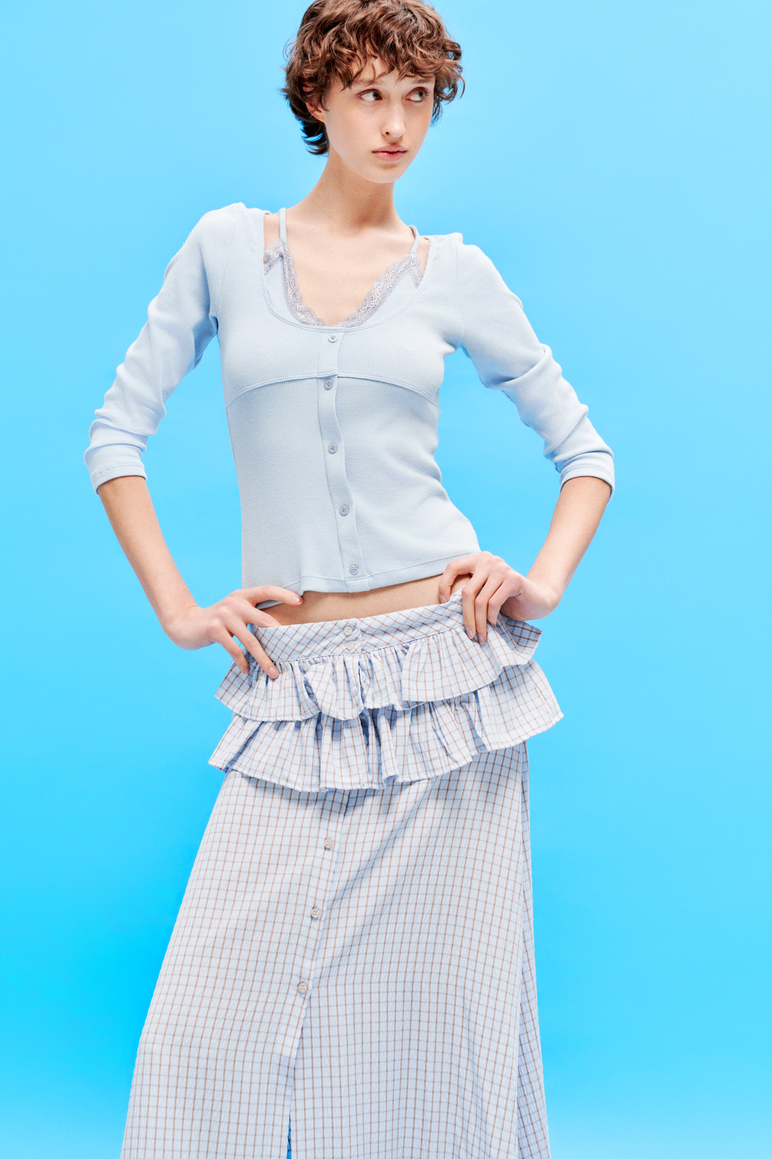Long-sleeved shirt in stretch ribbed cotton blend.