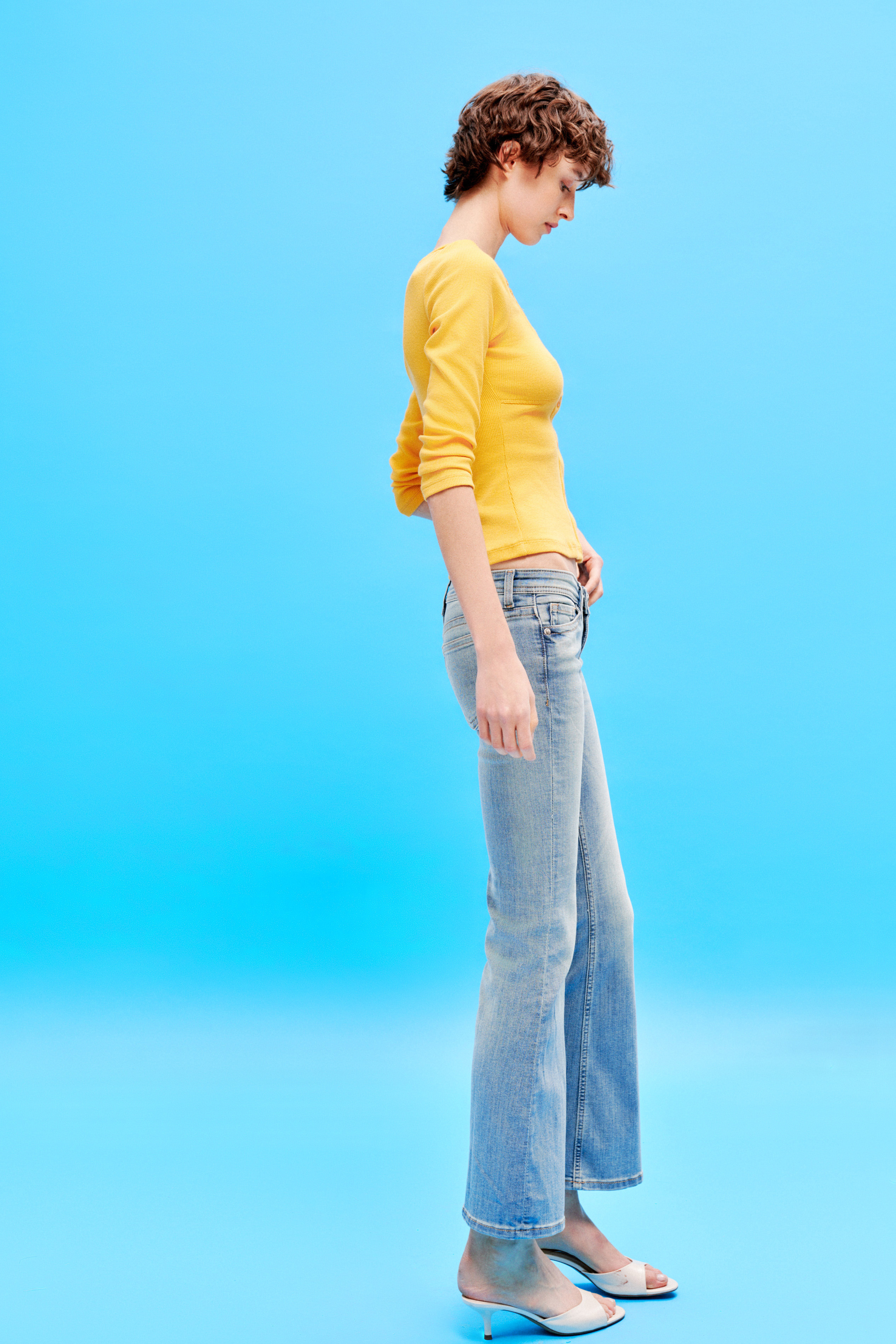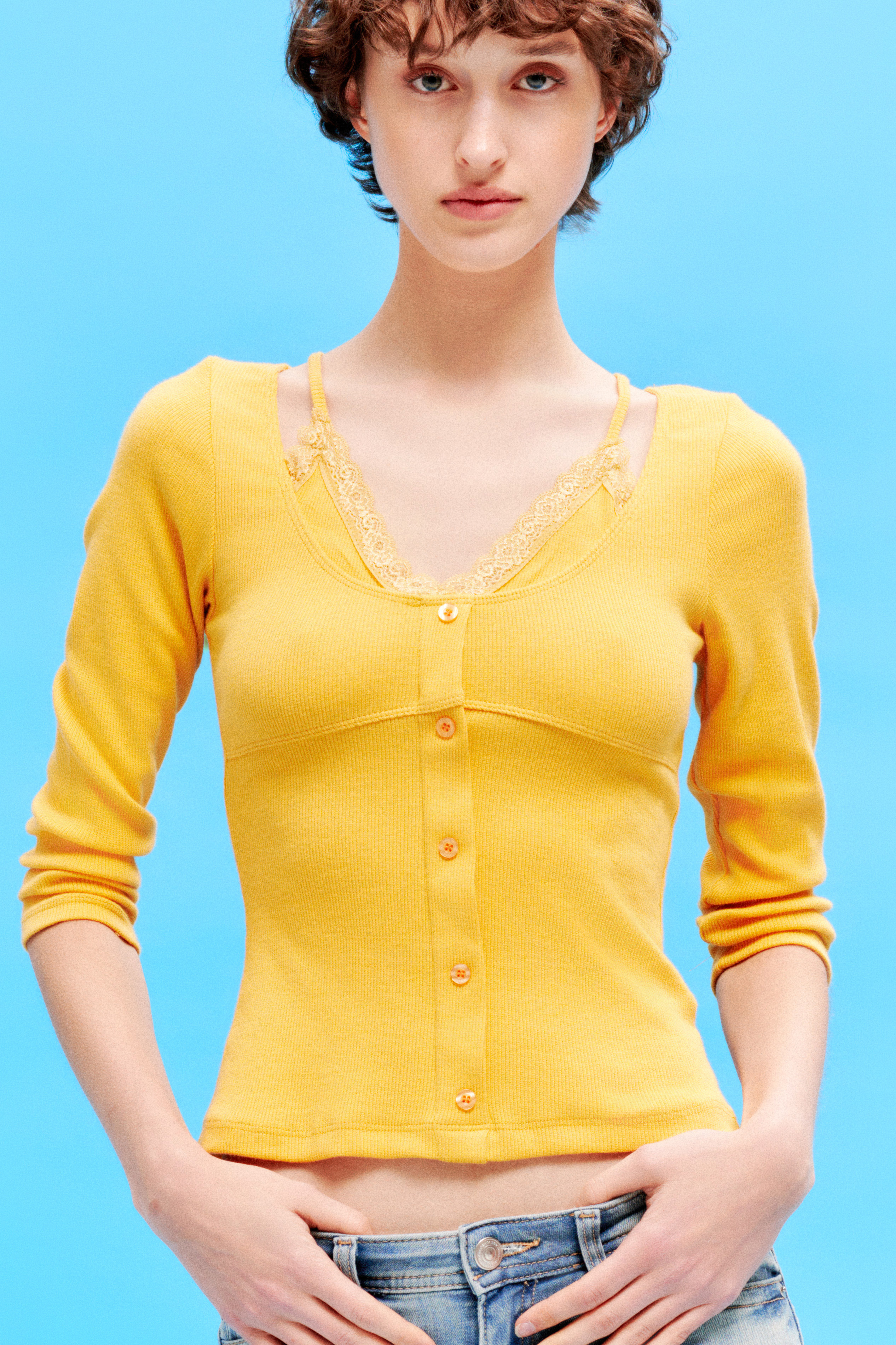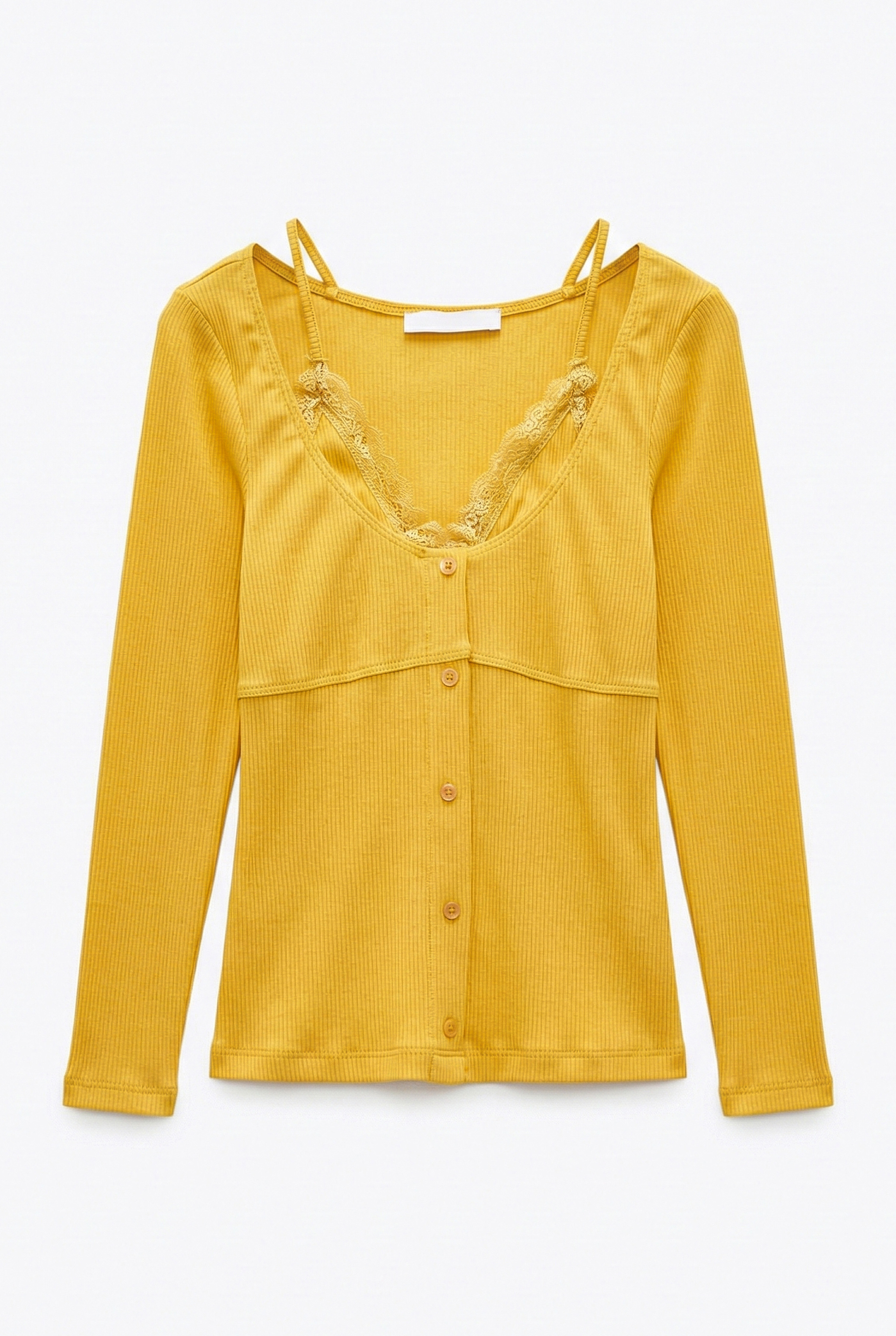 Long-sleeved shirt in stretch ribbed cotton blend.