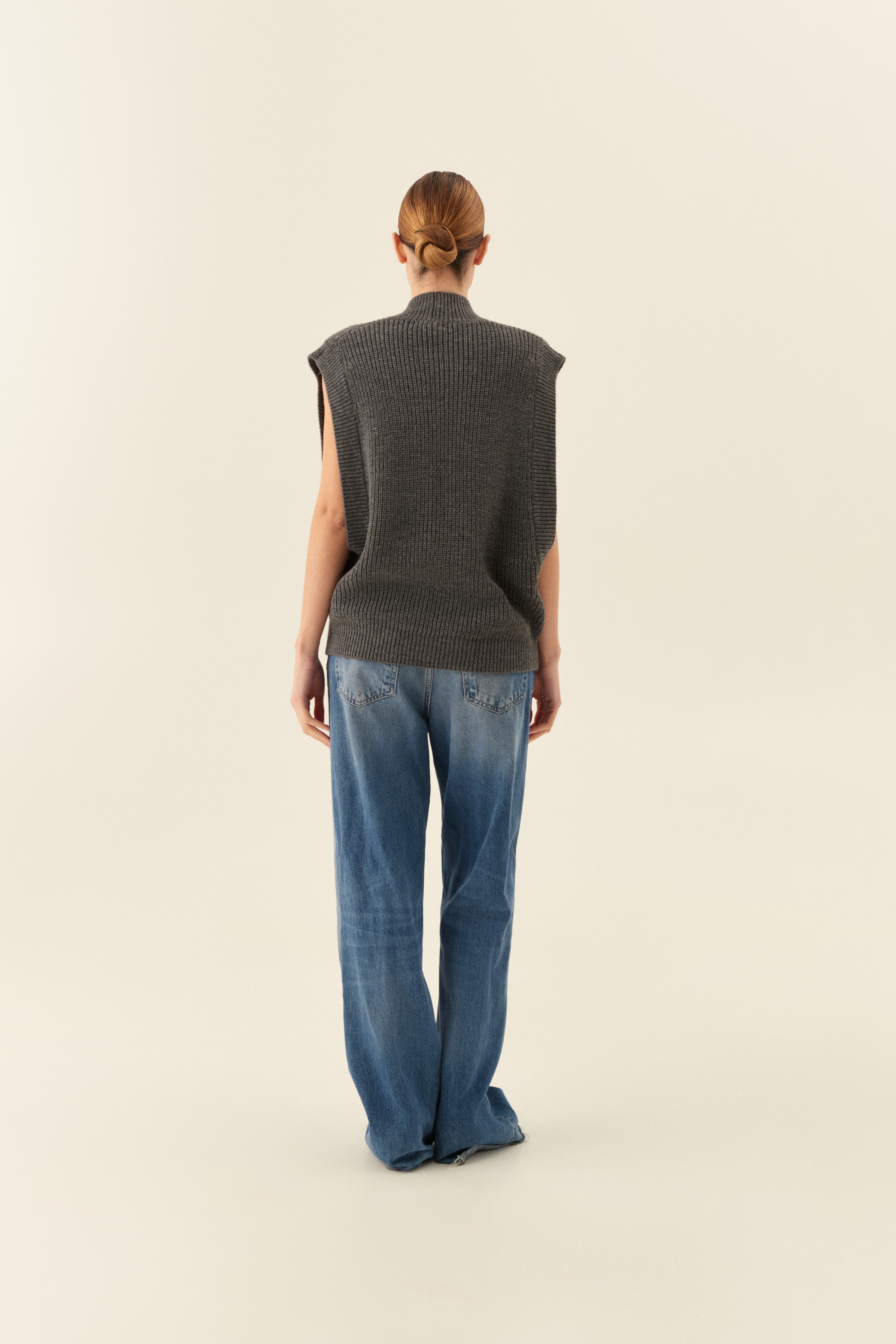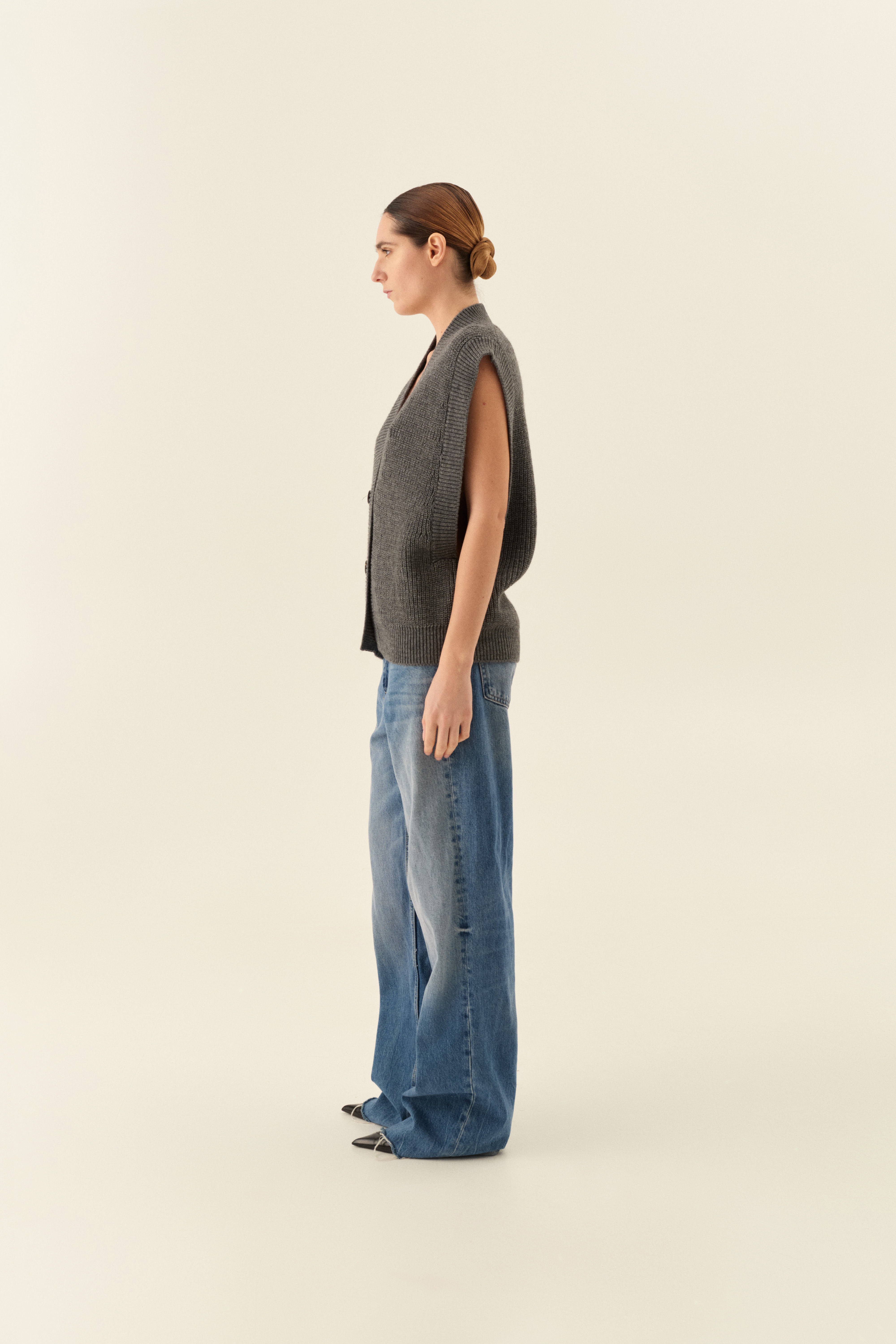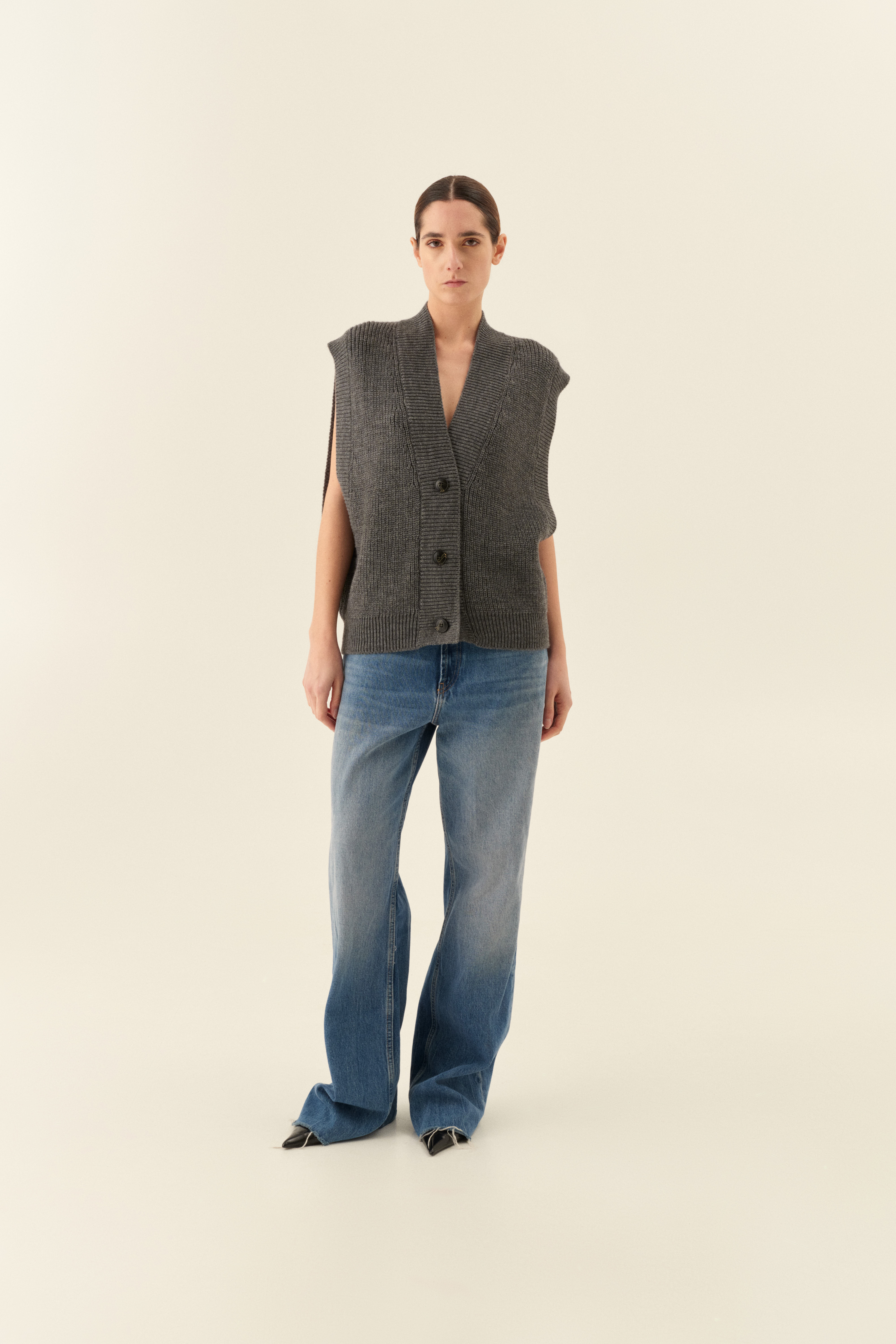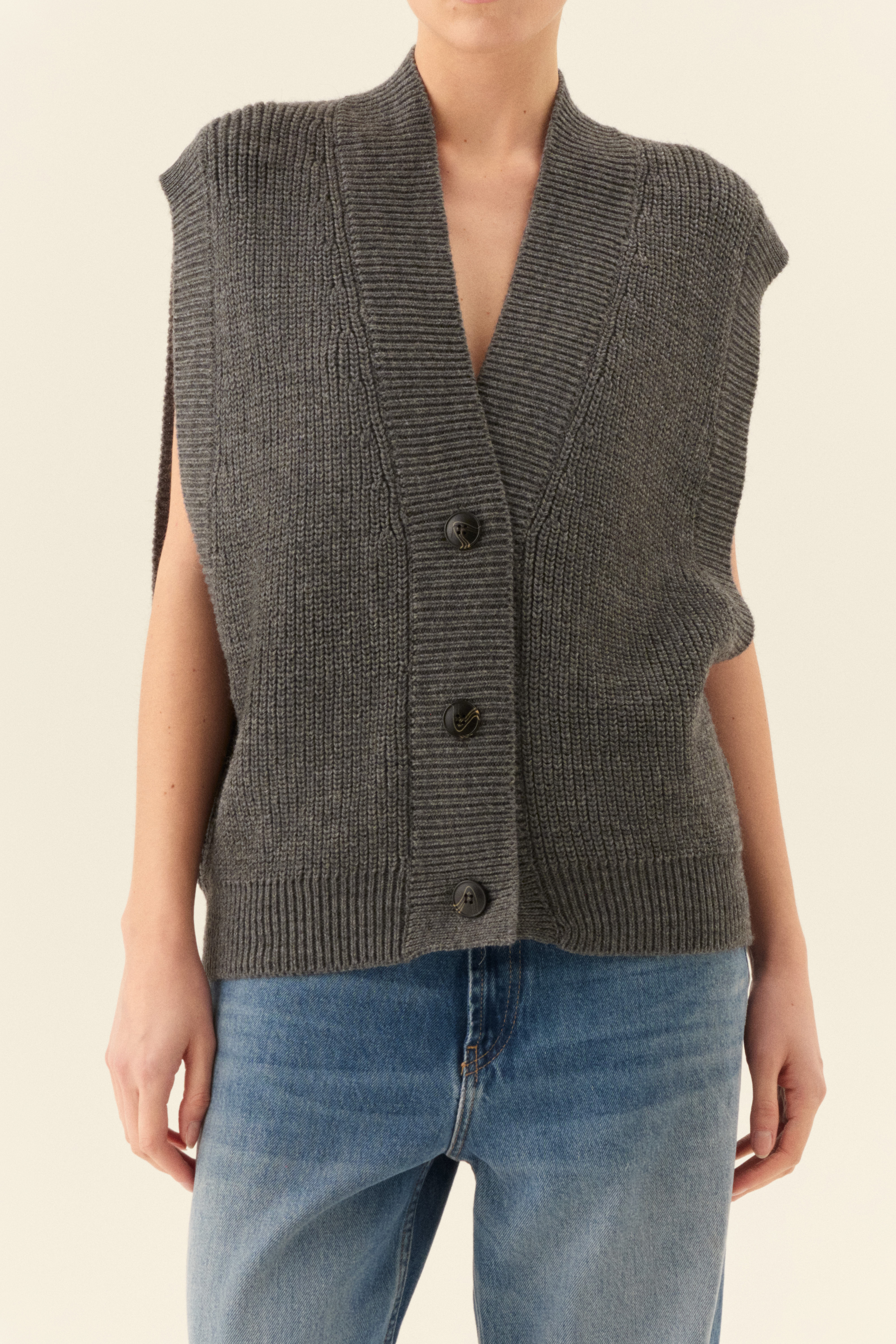 Knitted vest with "V" neckline.