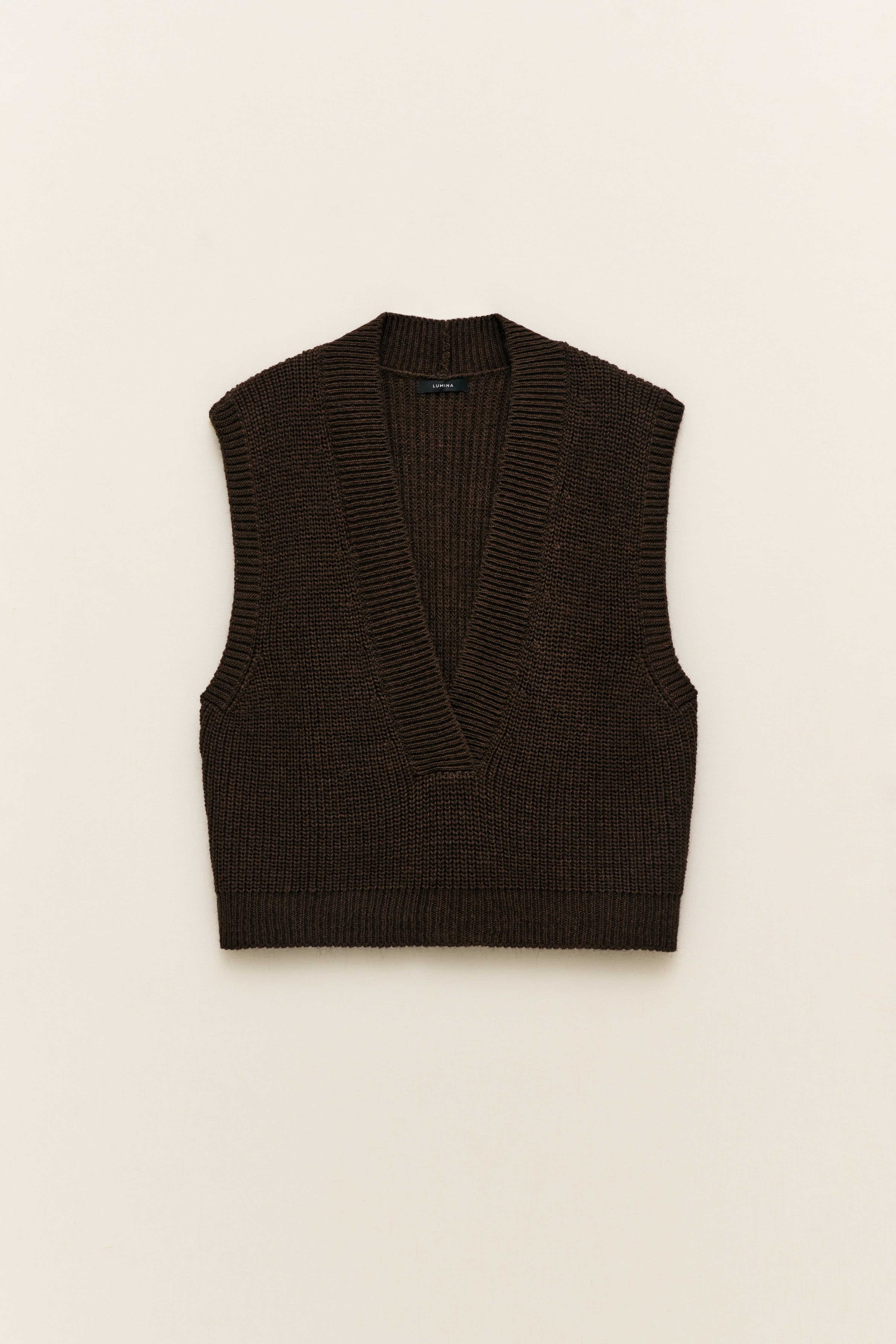 Knitted vest with "V" neckline.