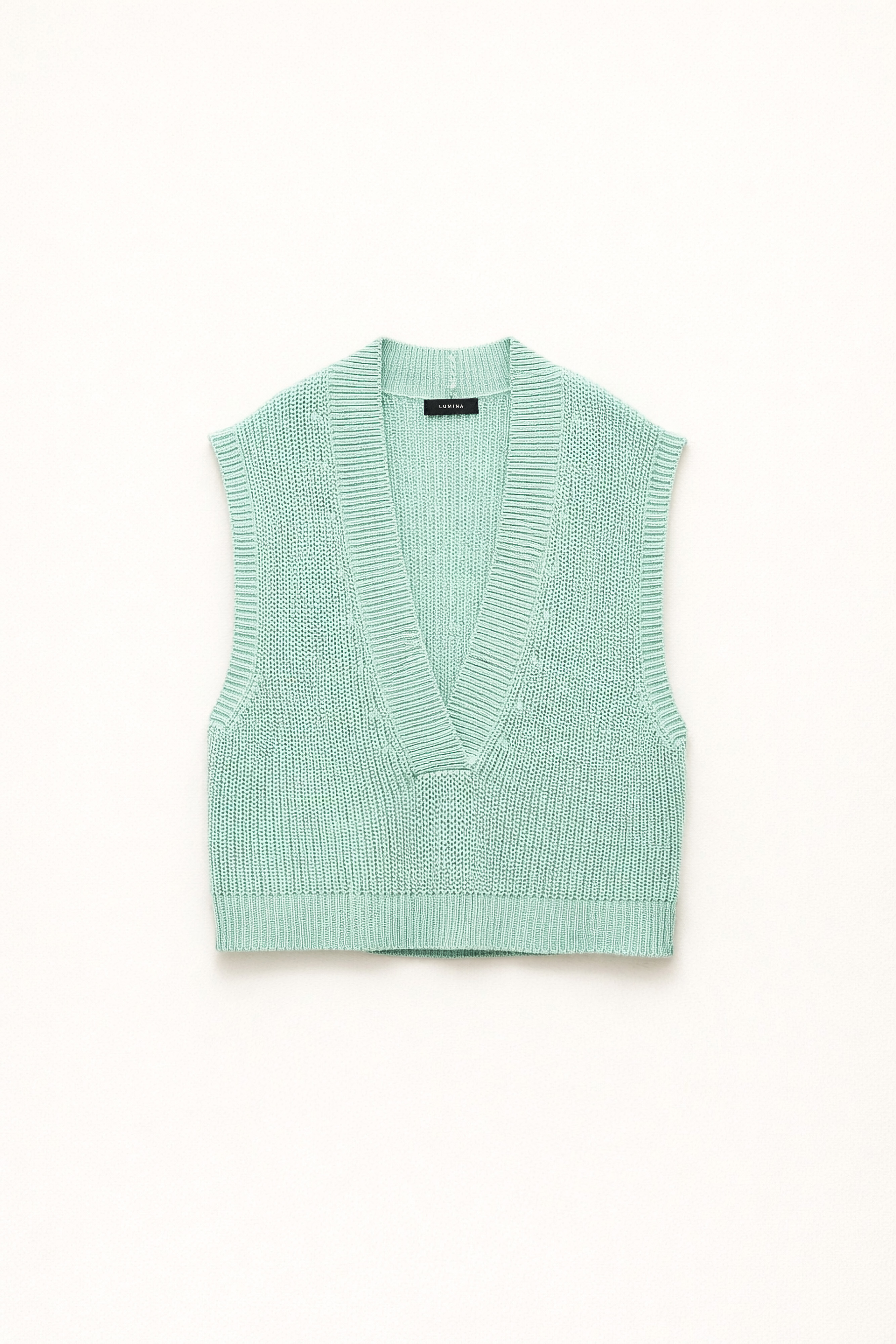 Knitted vest with "V" neckline.