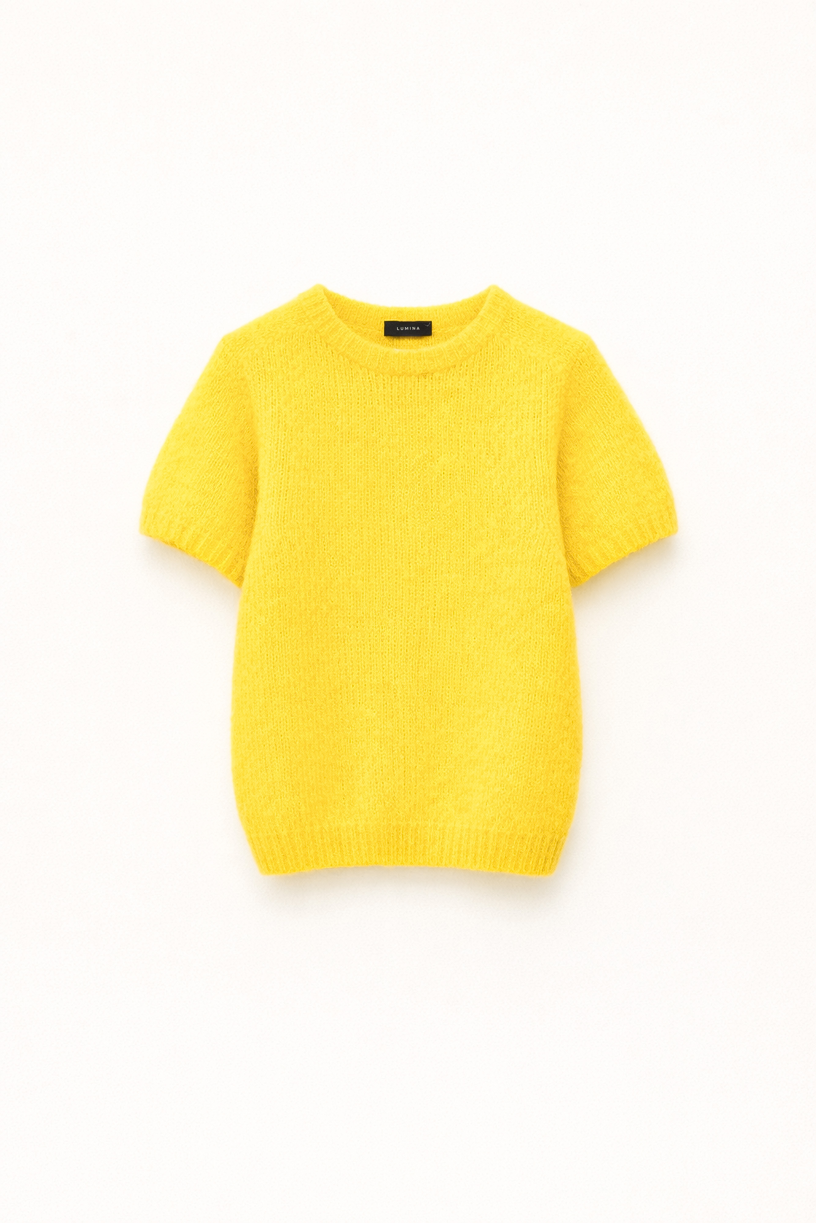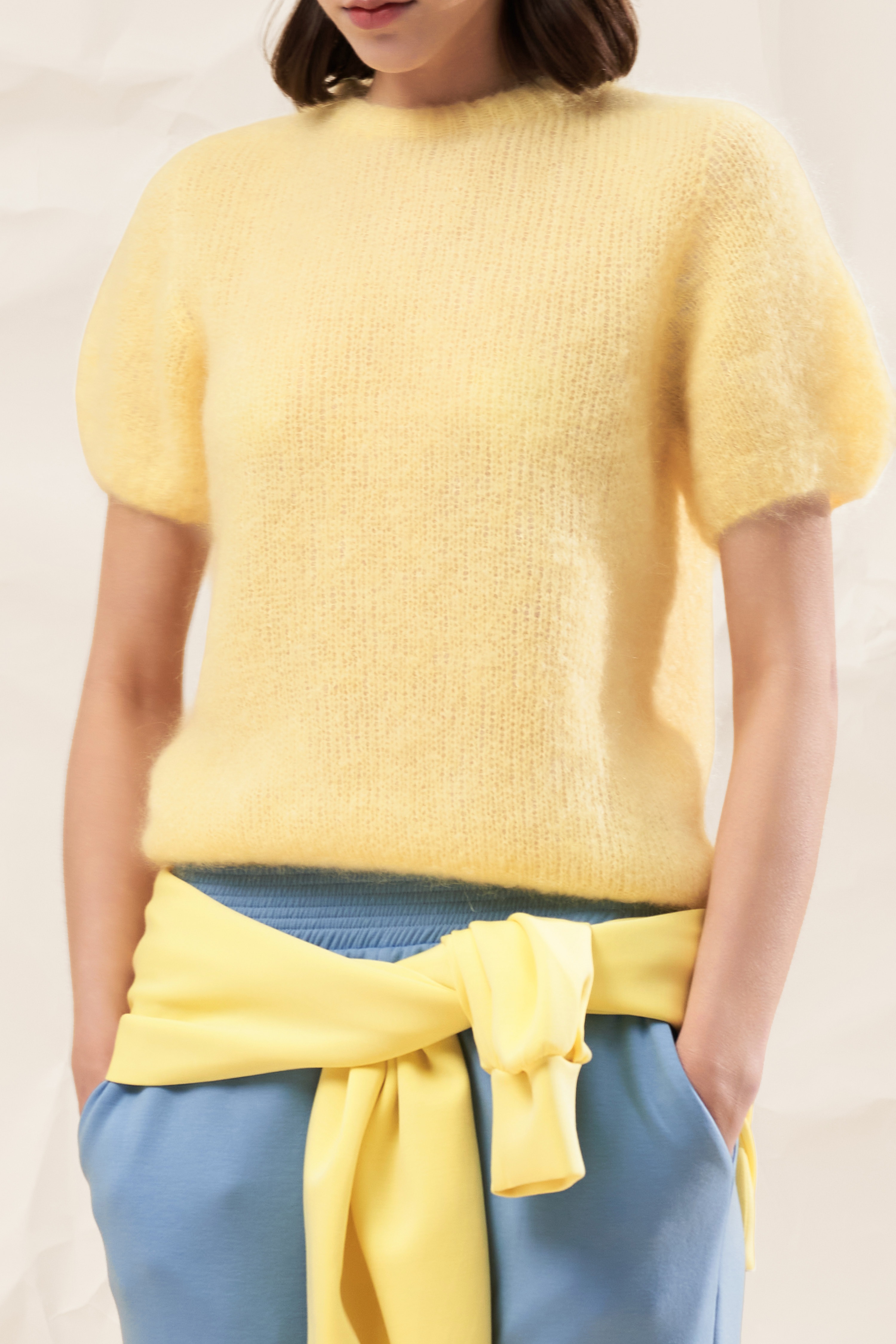 Short-sleeved knitted sweater.