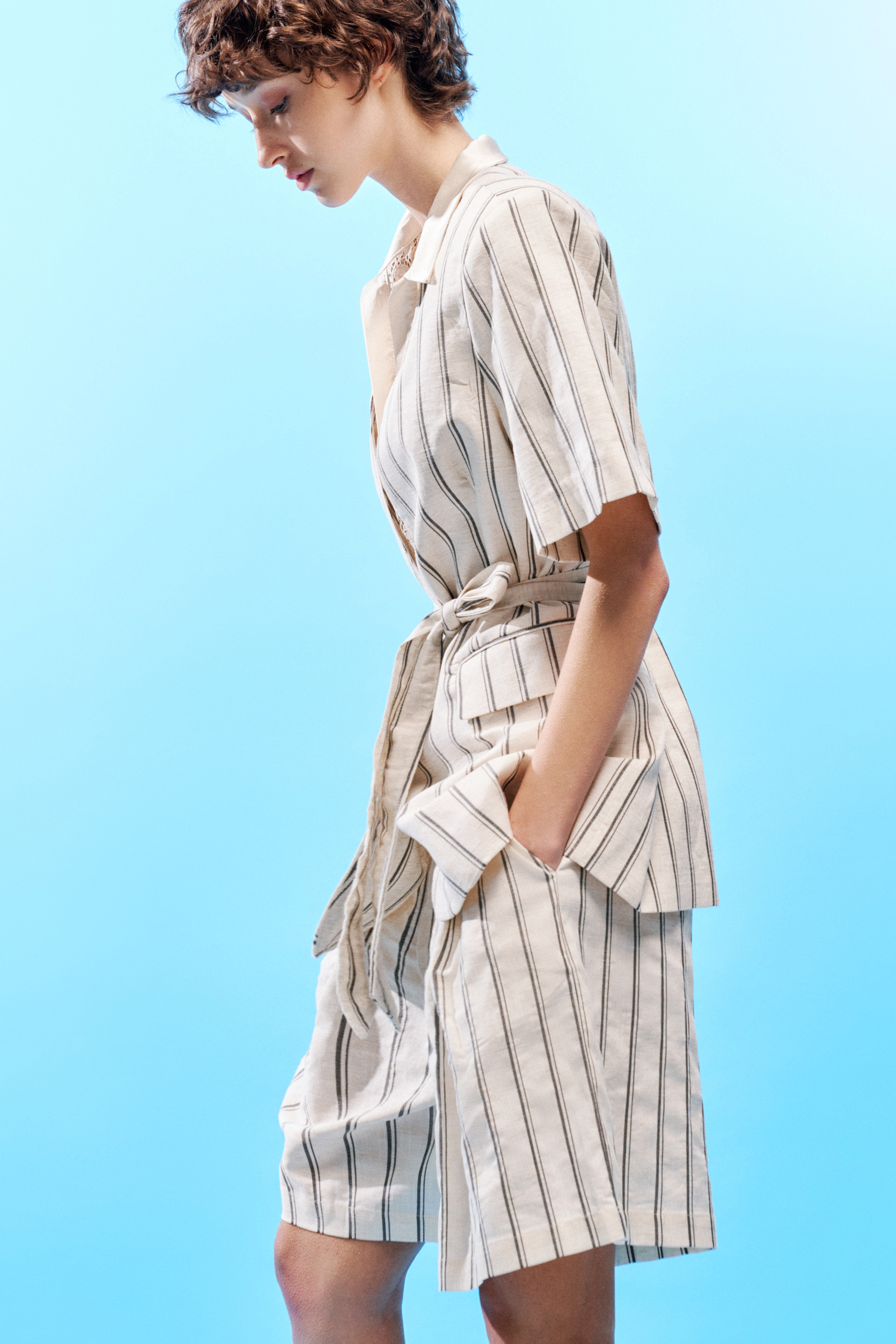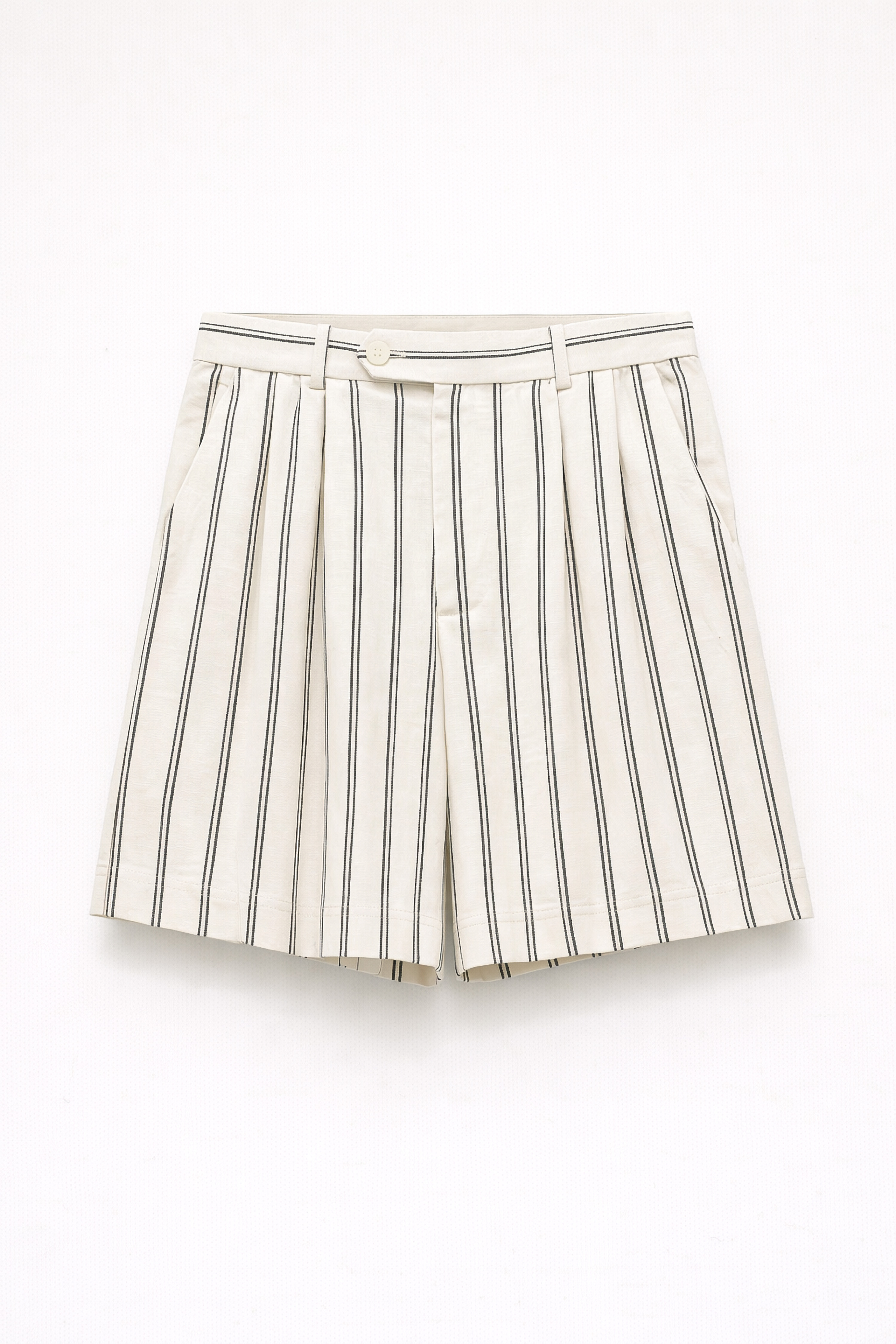 Bermuda shorts with striped pattern in linen blend.