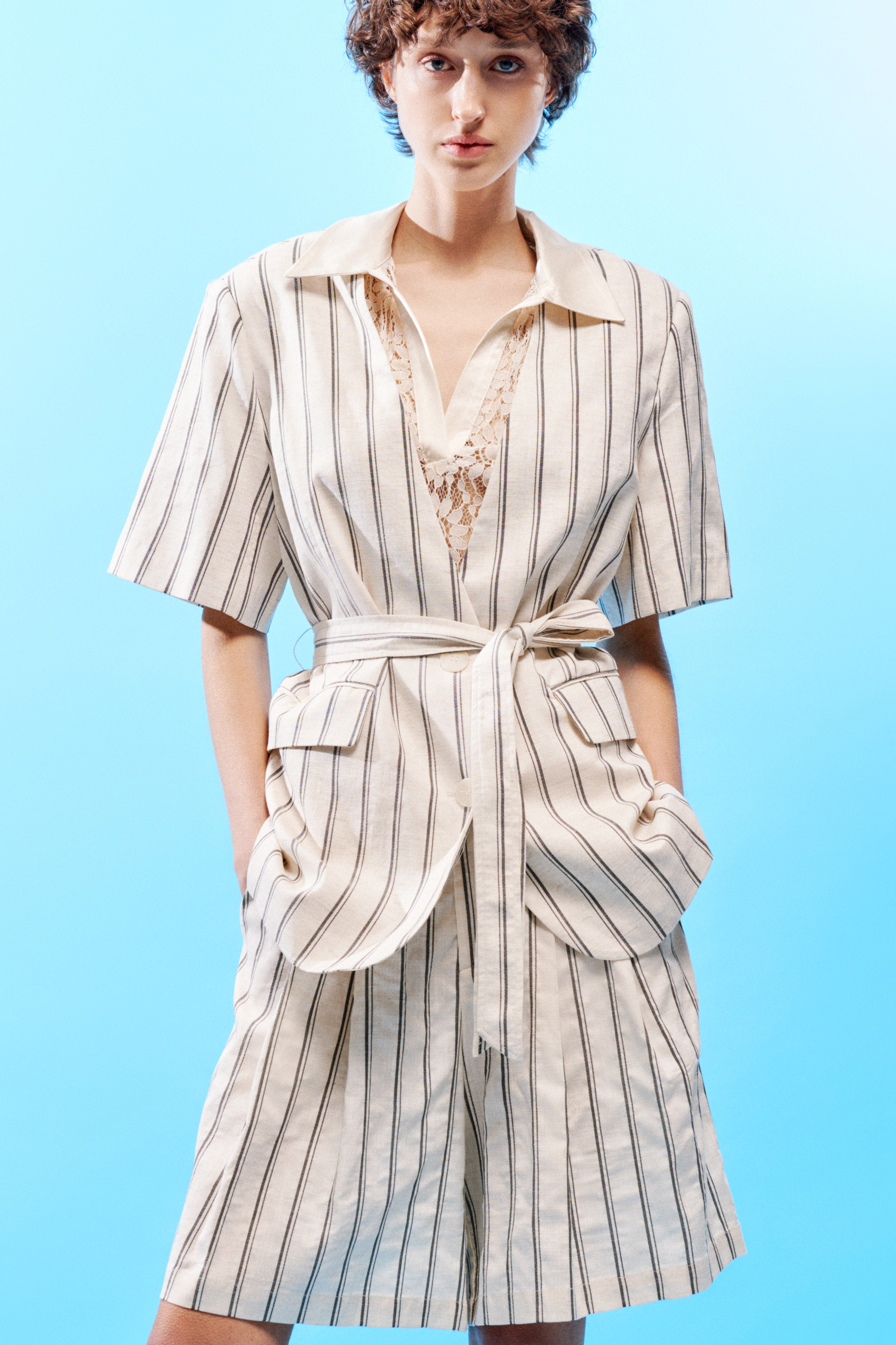 Short-sleeved striped jacket in linen blend.