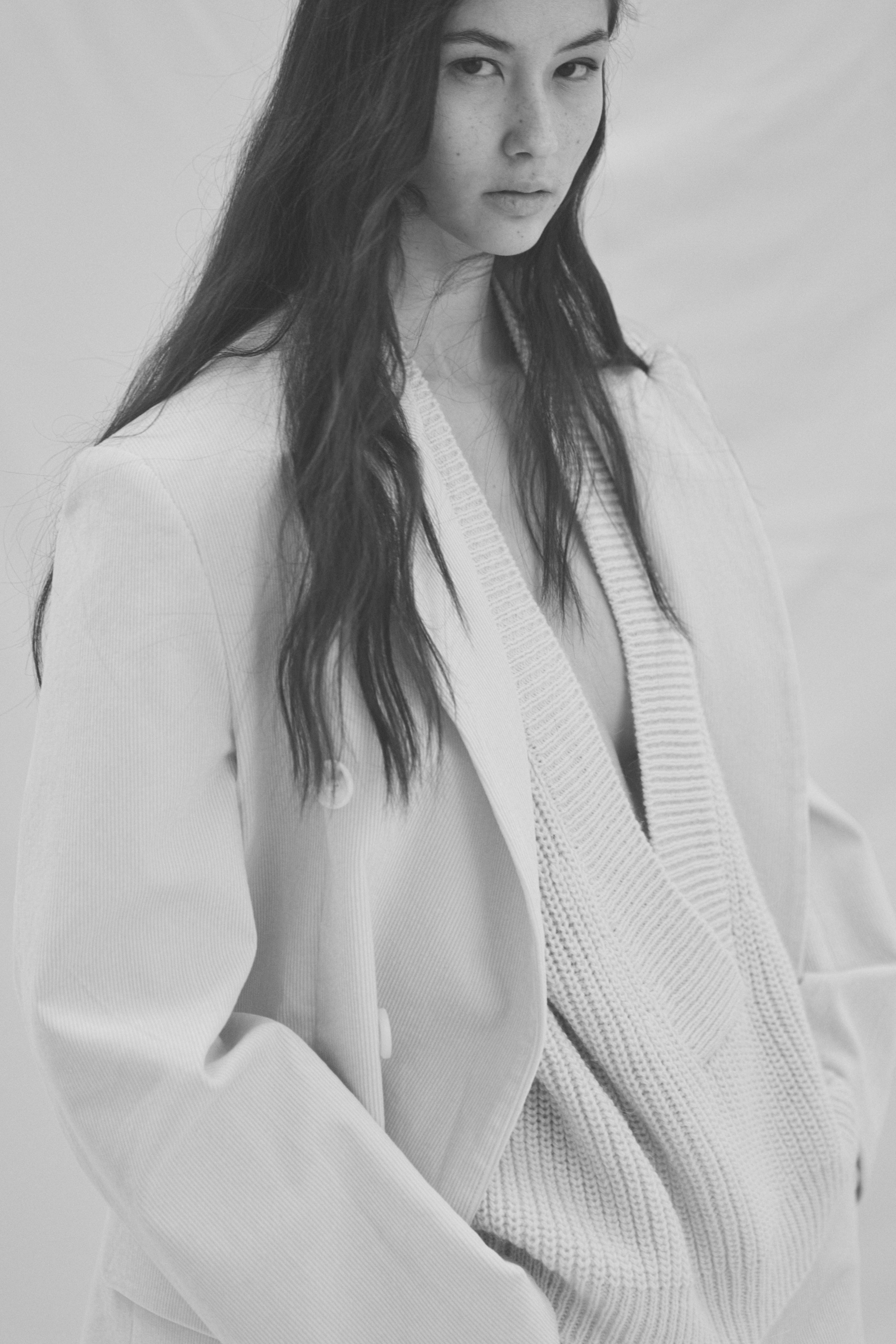 Double-breasted ribbed blazer.