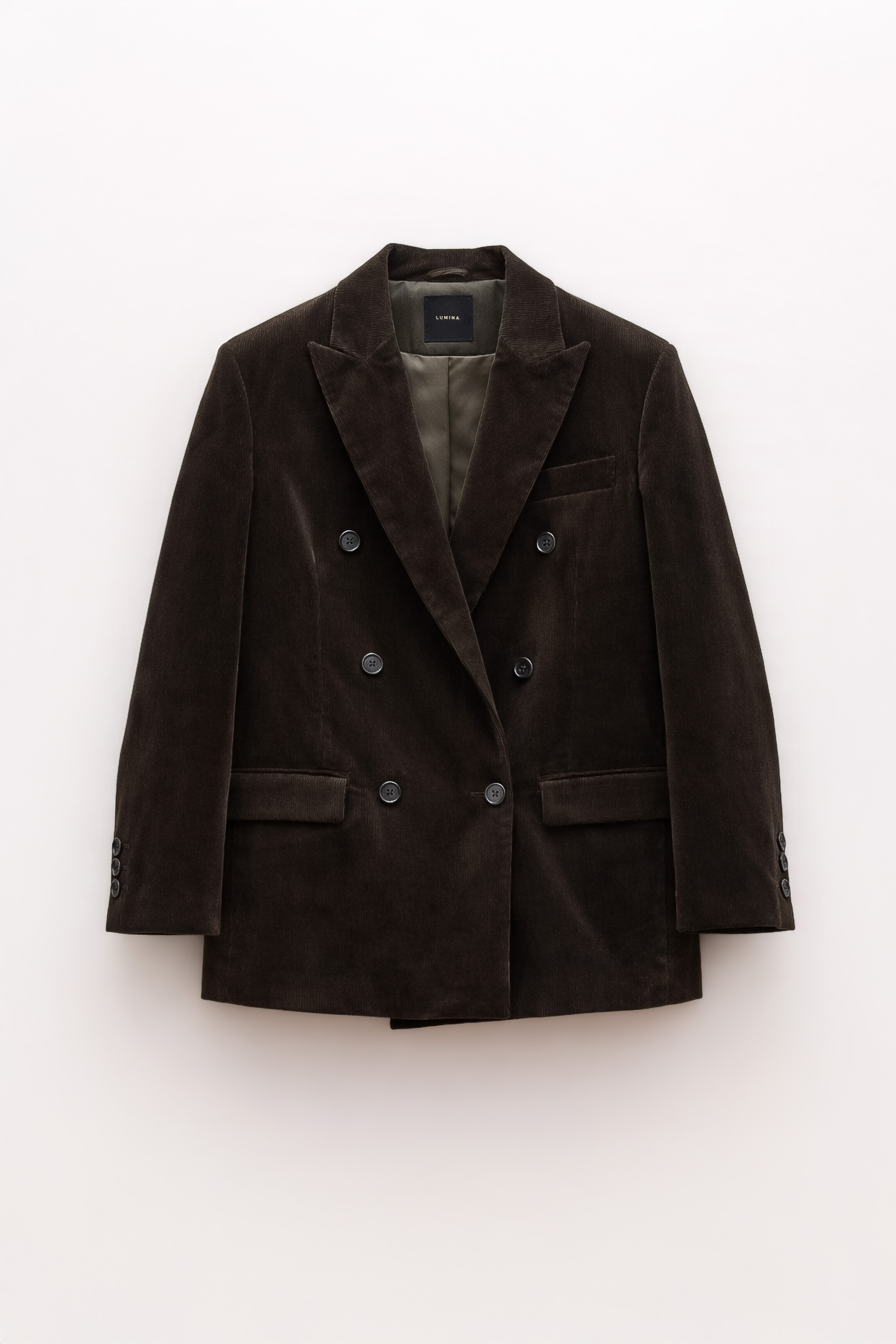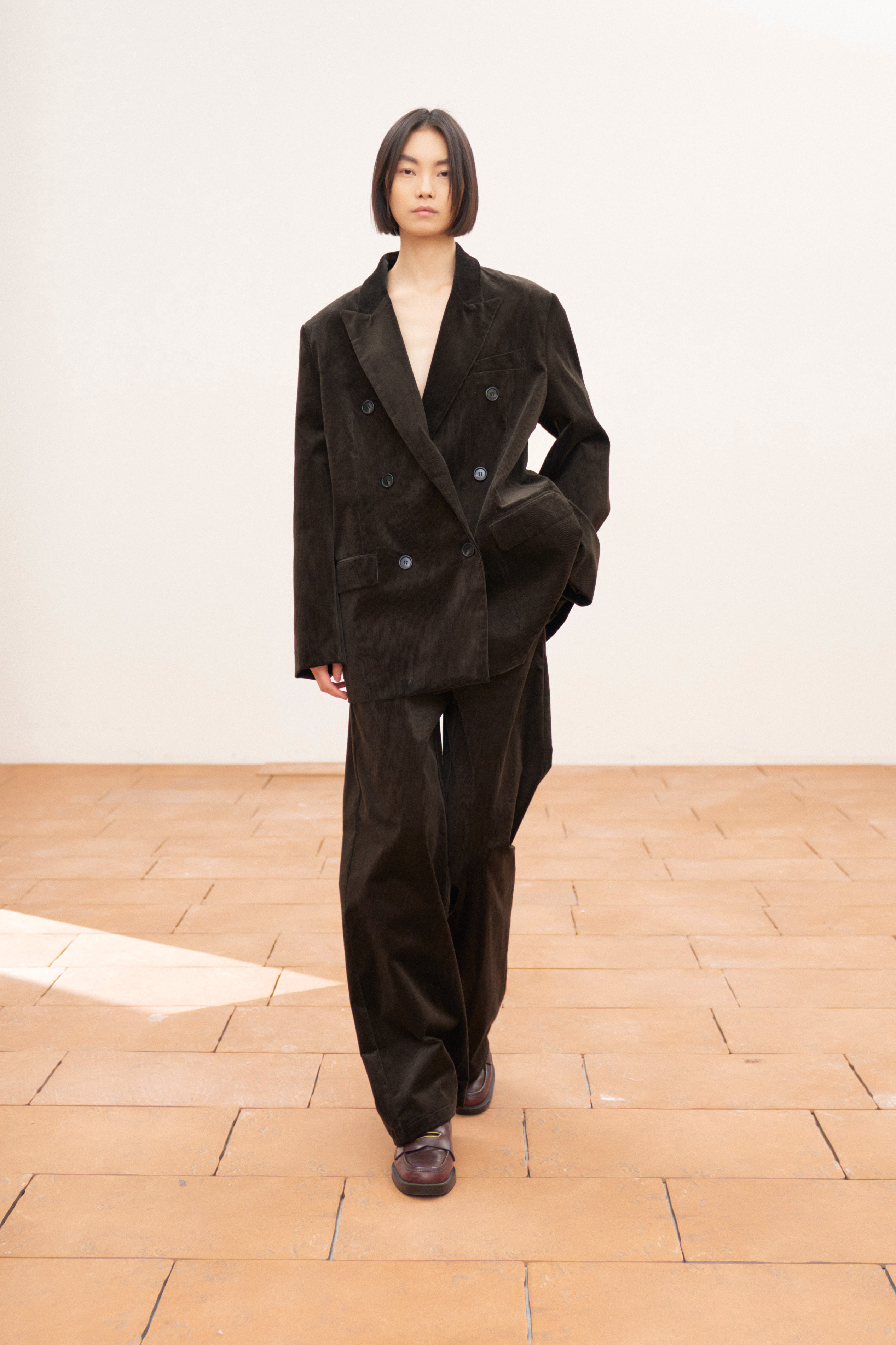 Classic lapel collar. Long sleeves with contrasting cuffs.