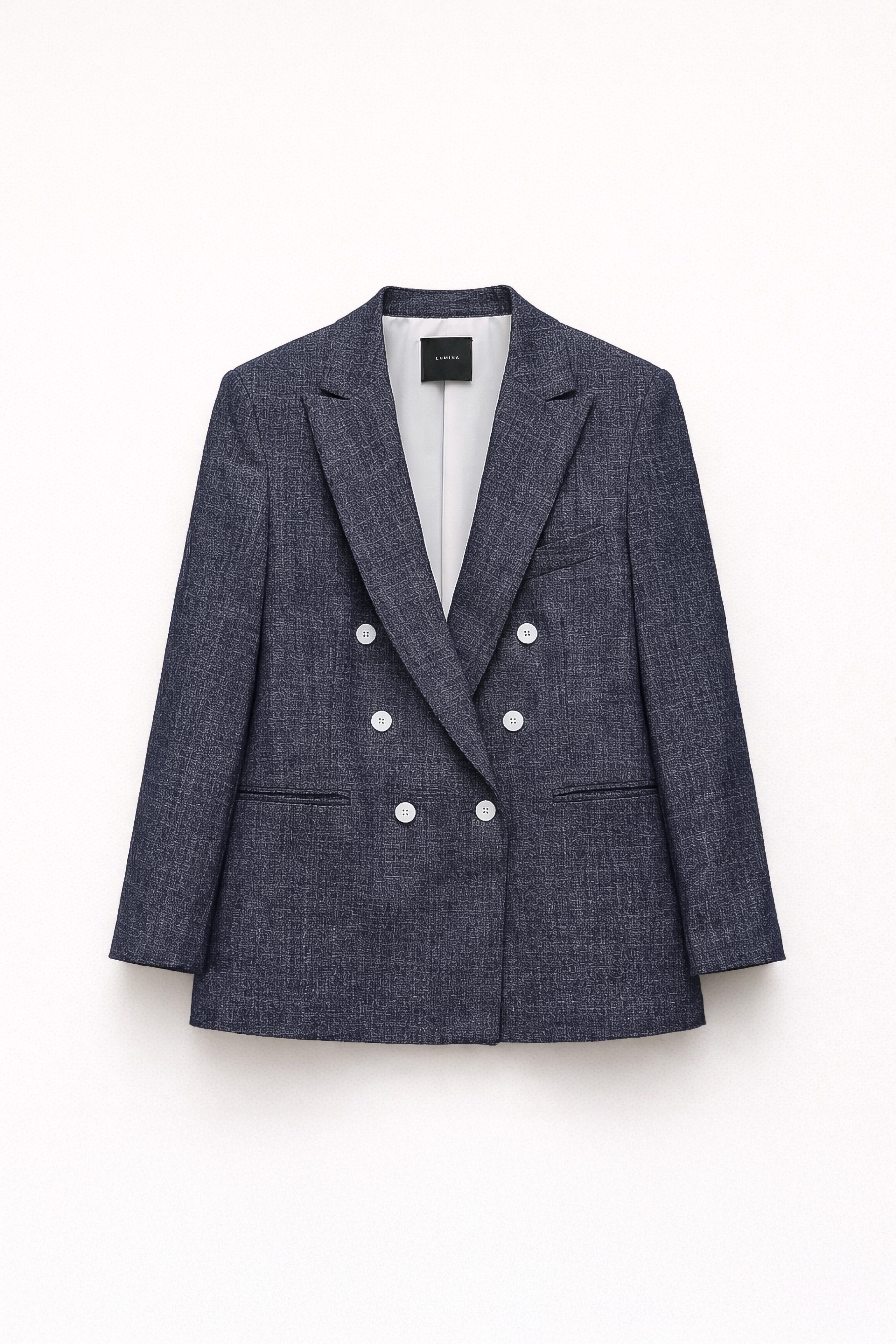 Single-breasted blazer with classic lapels.