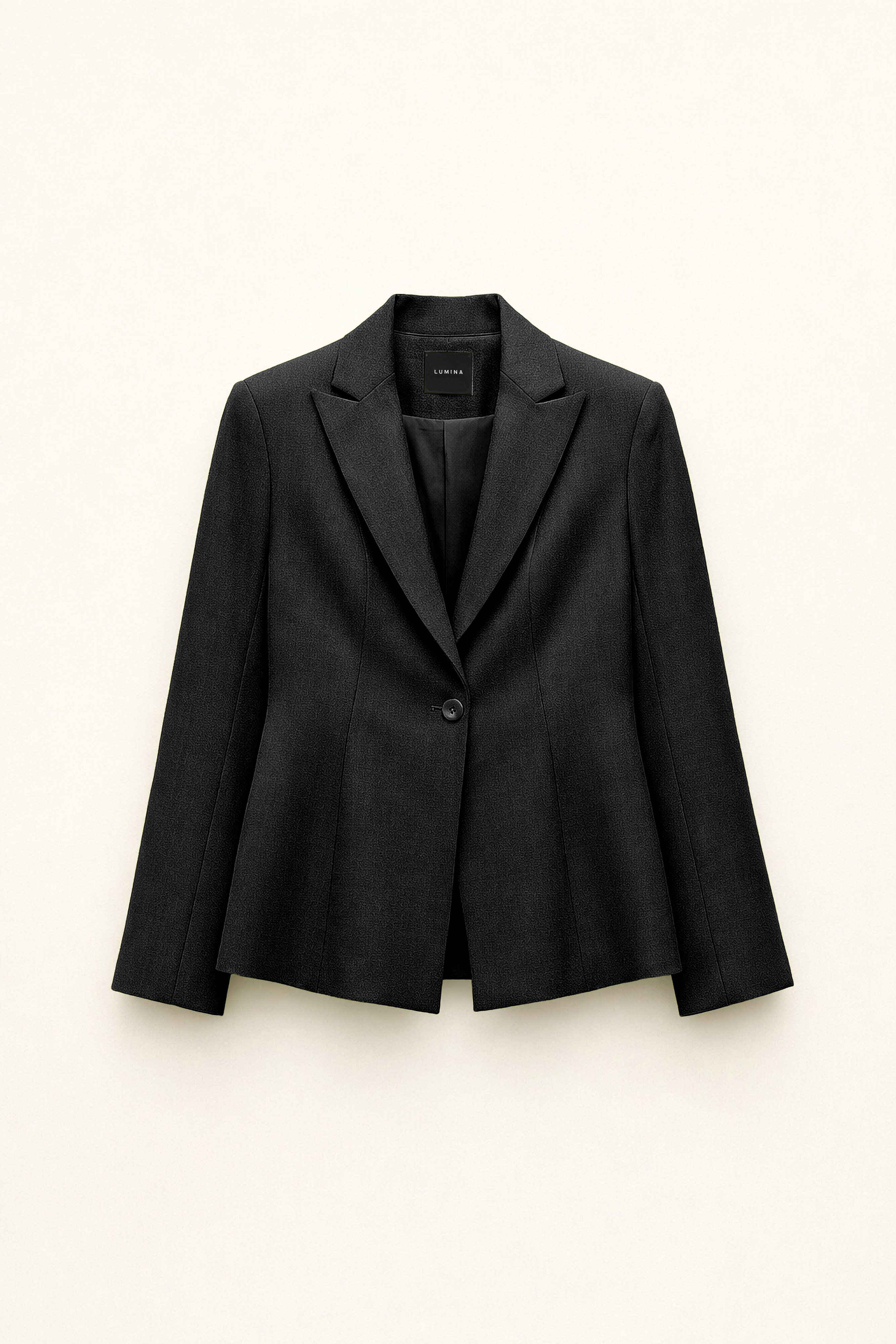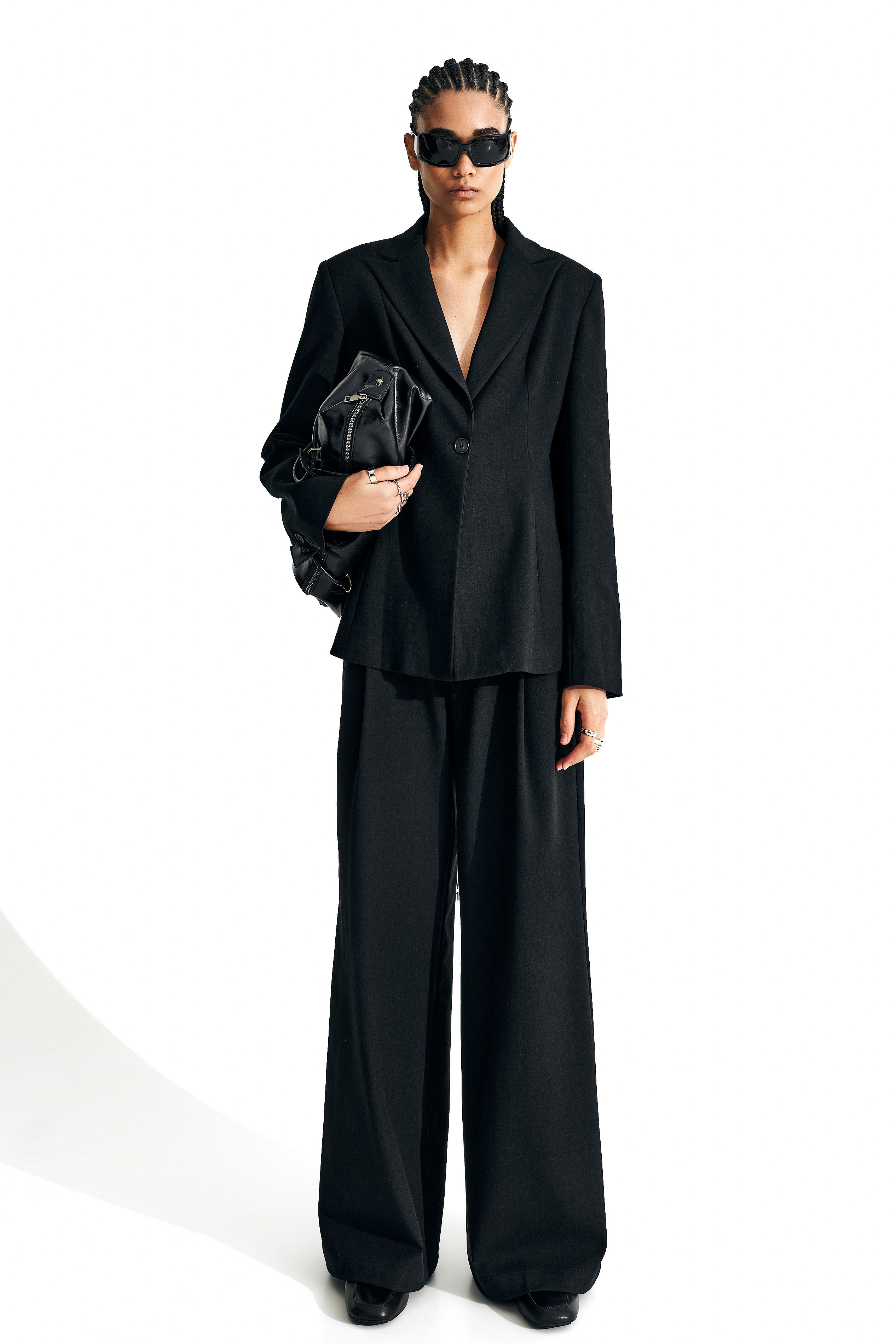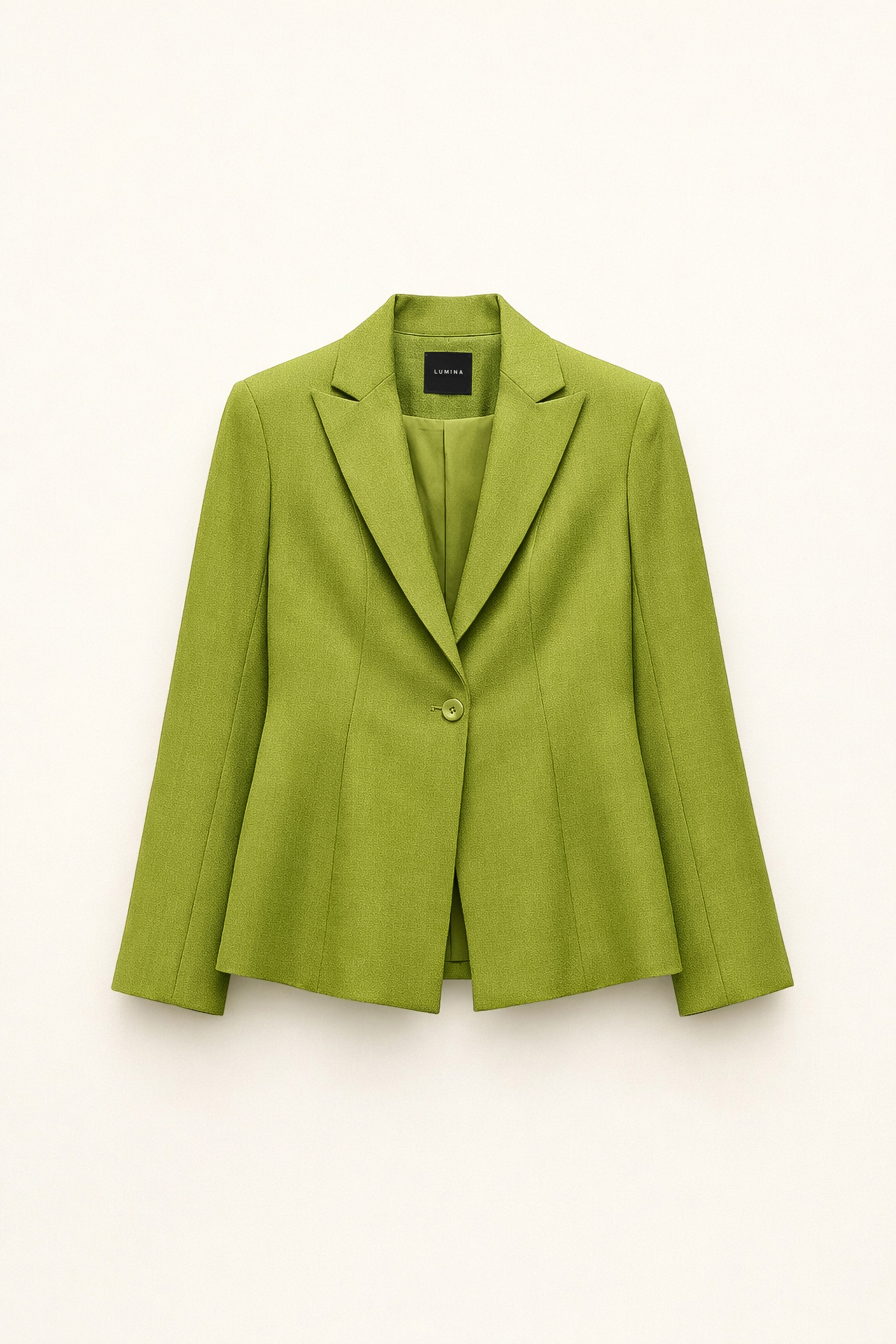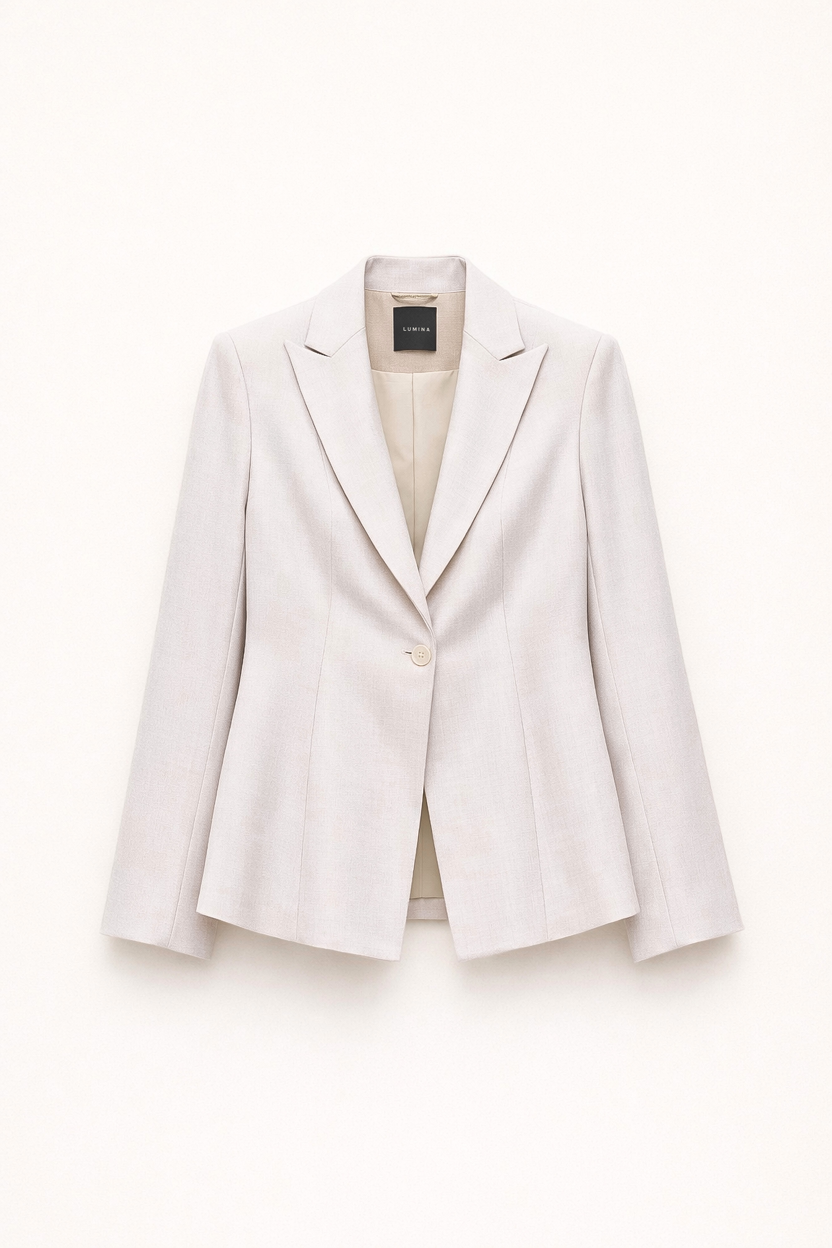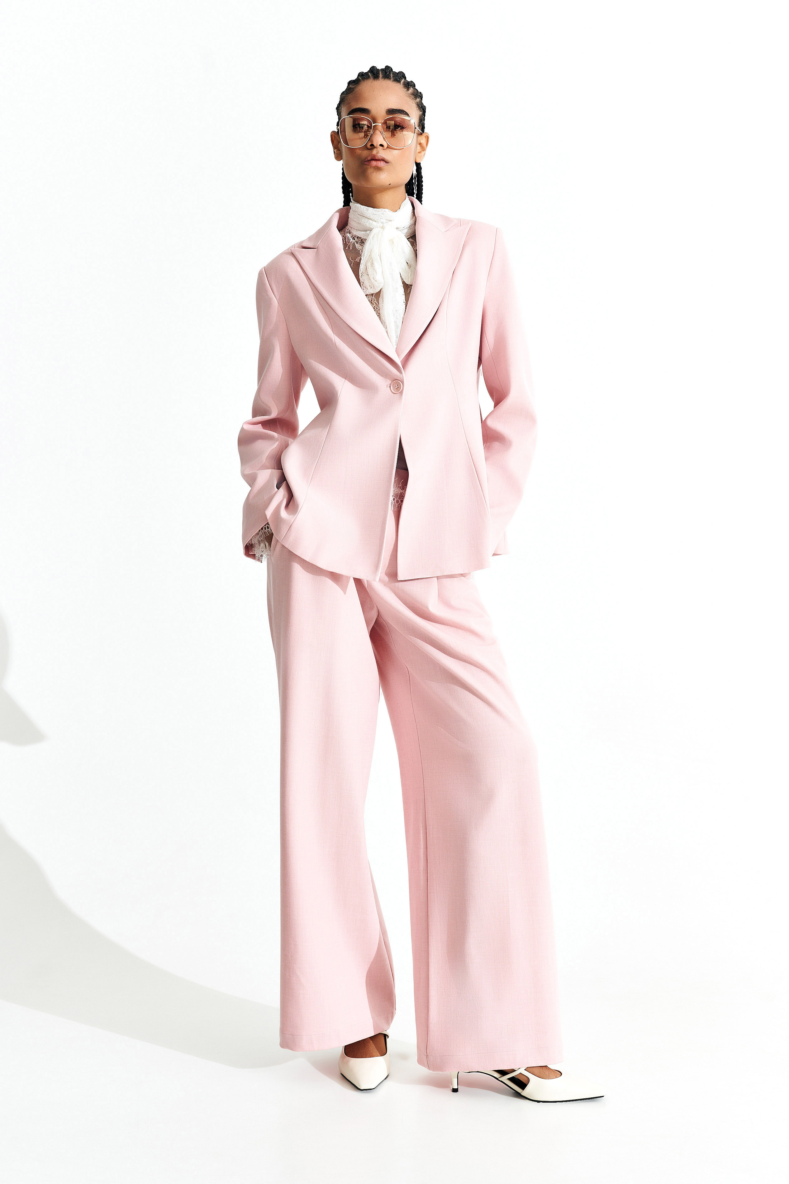 Classic lapel collar. Long sleeves with contrasting cuffs.