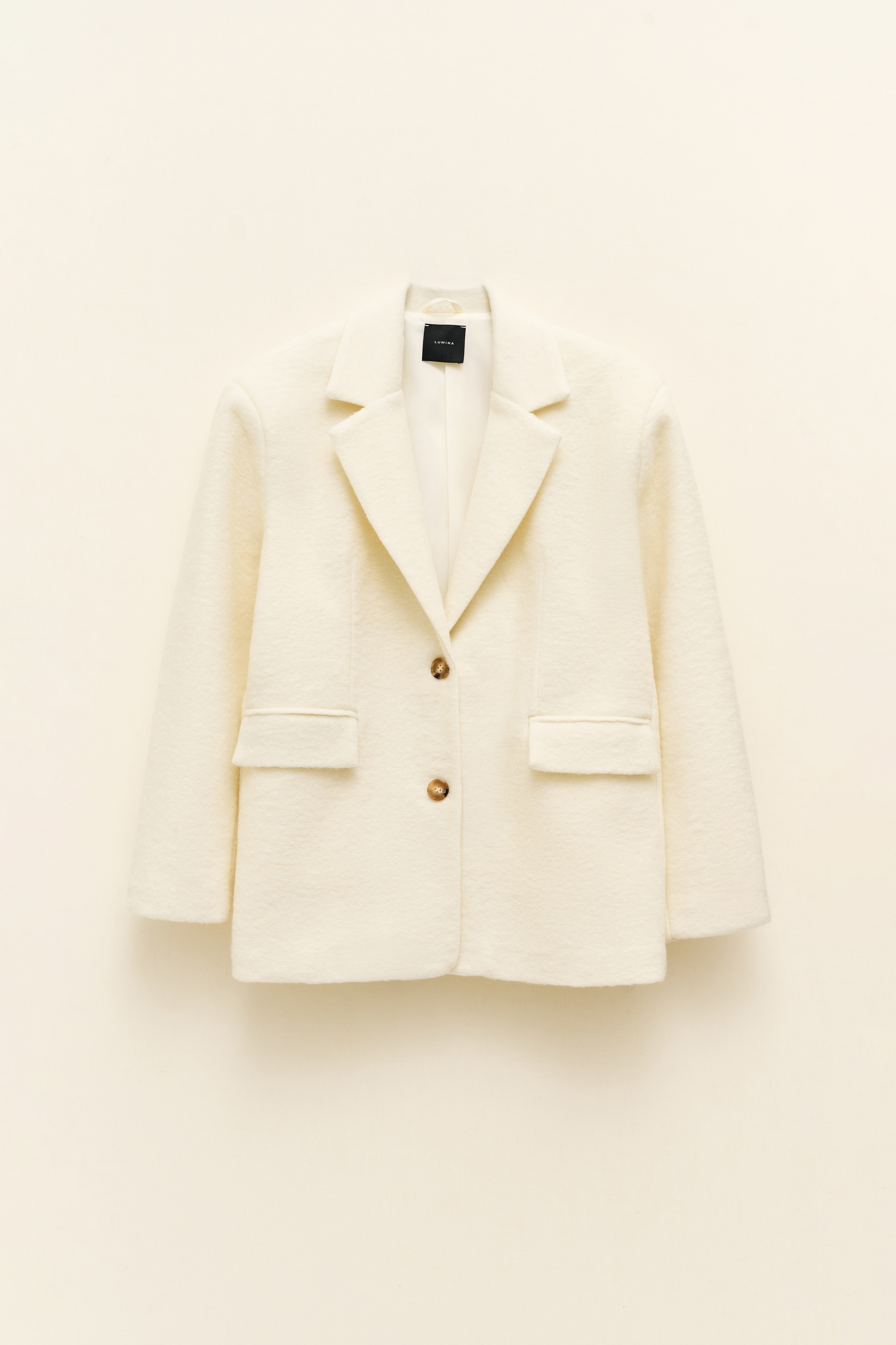 Classic lapel collar. Long sleeves with contrasting cuffs.