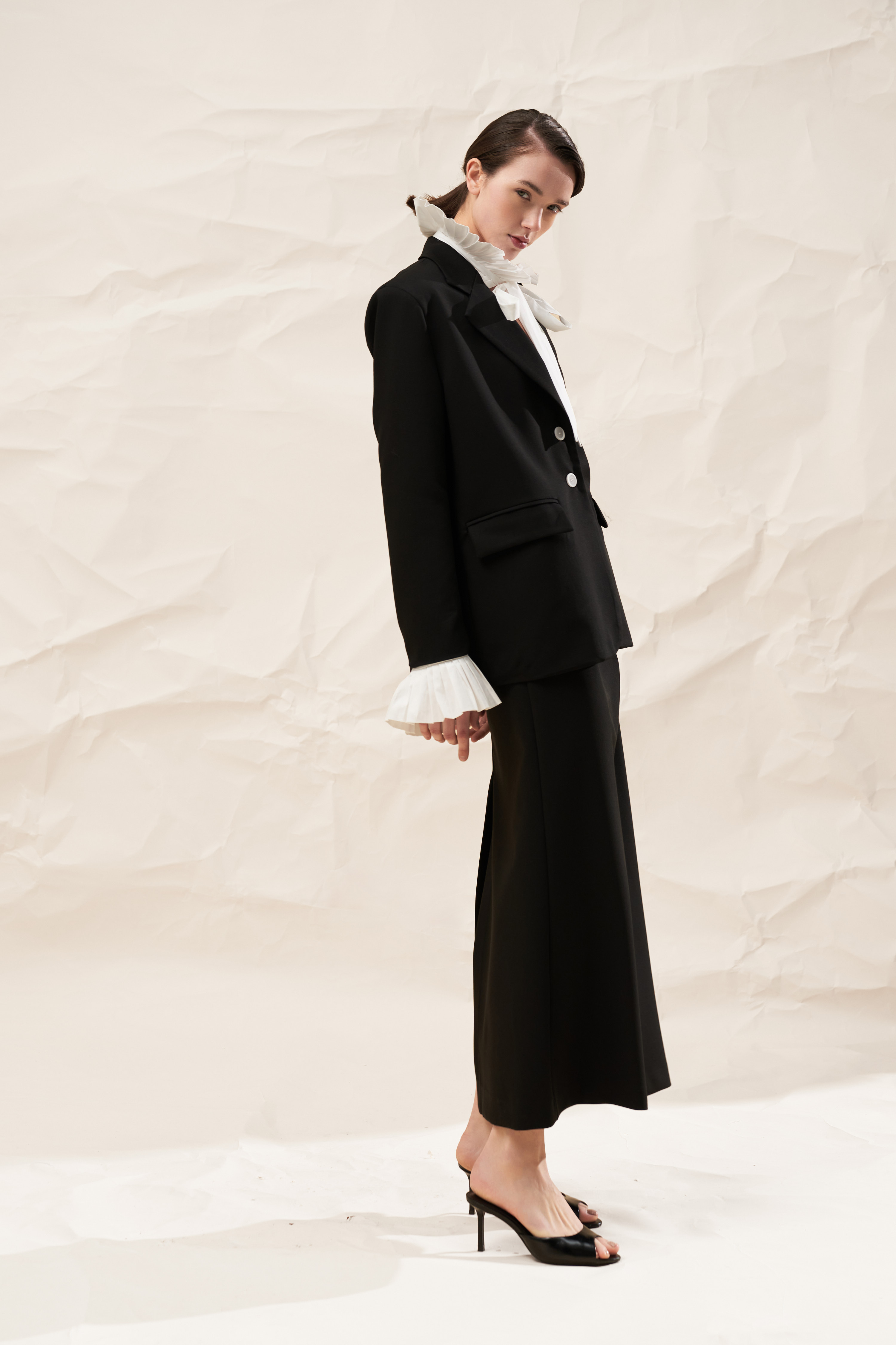 Single-breasted blazer with classic lapels.