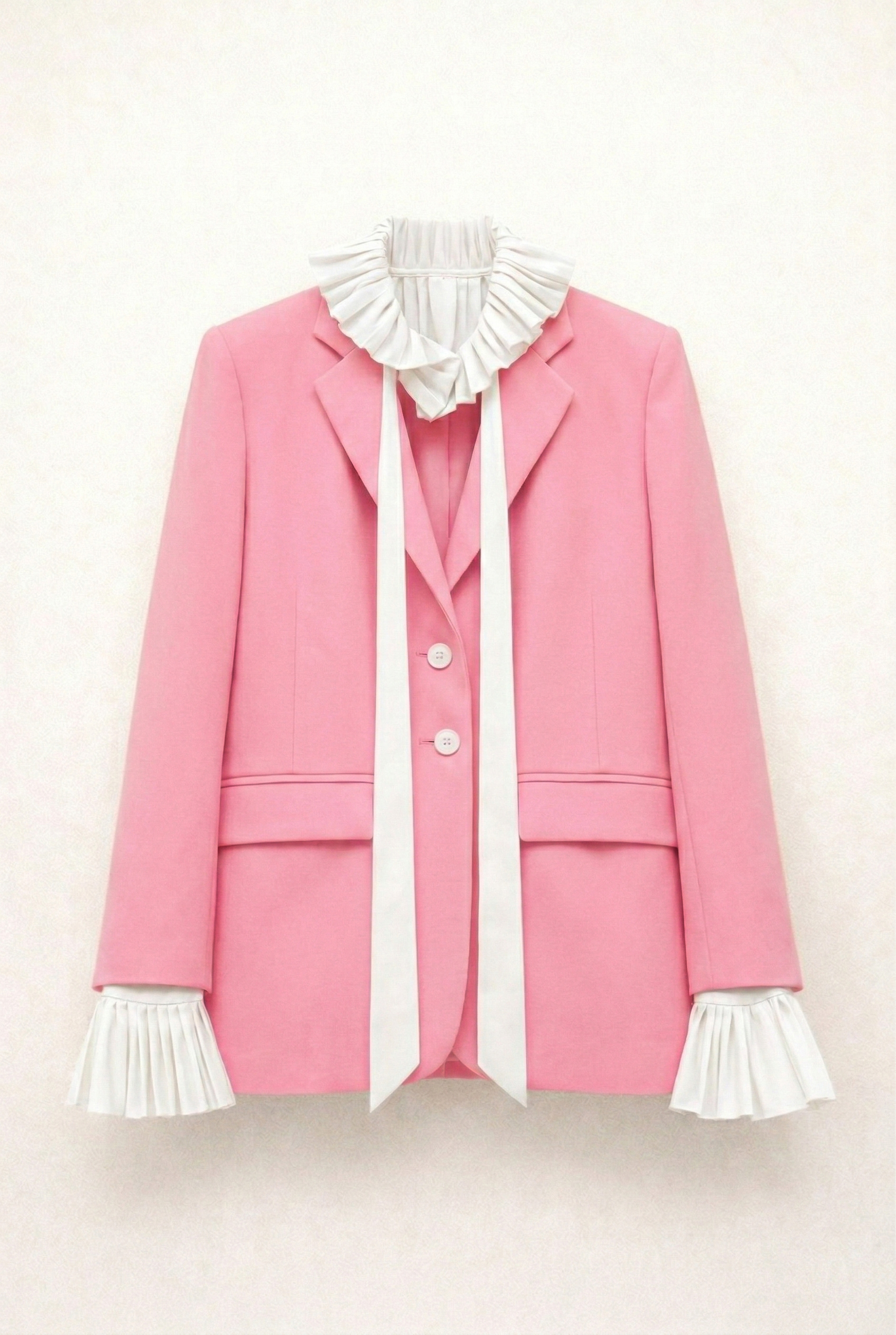 Classic lapel collar. Long sleeves with contrasting cuffs.