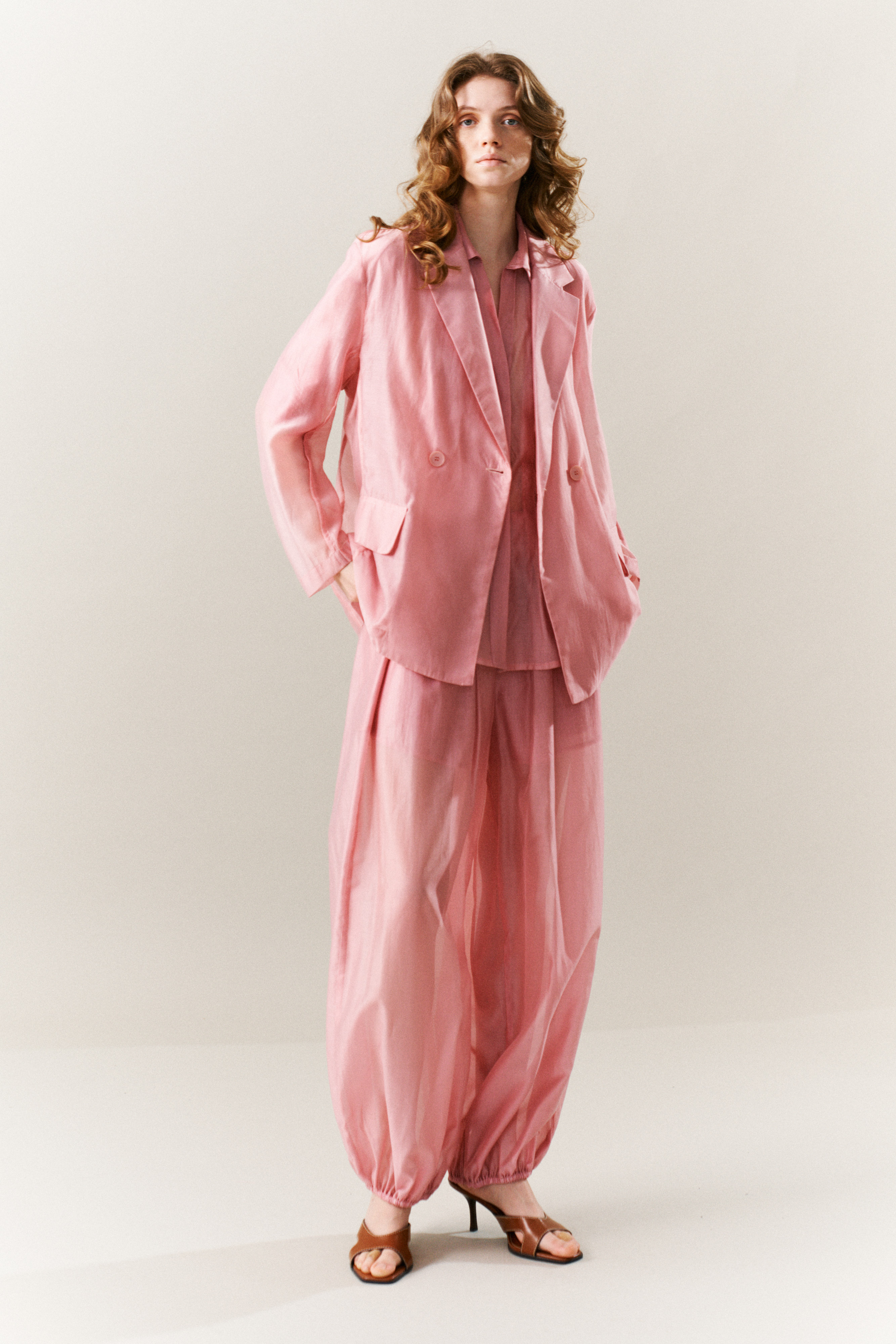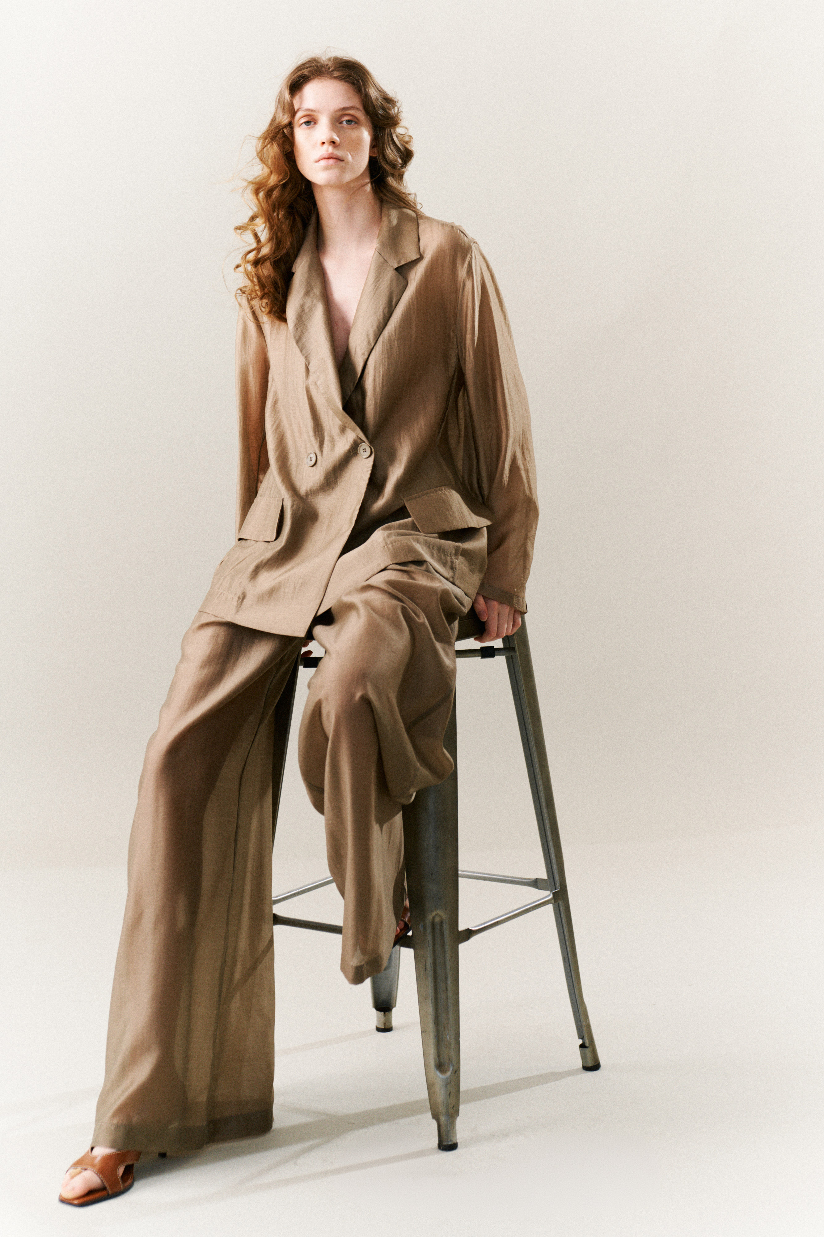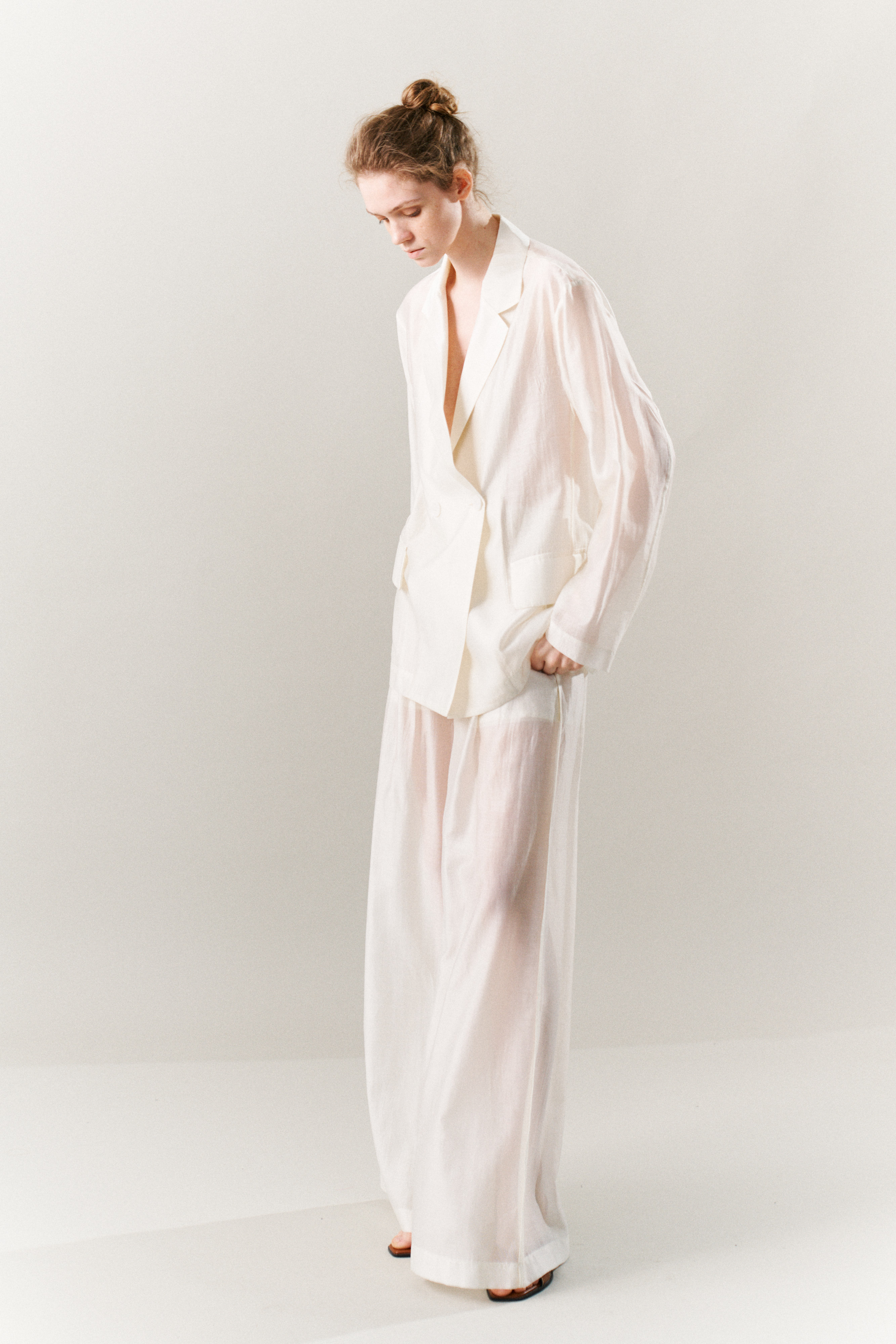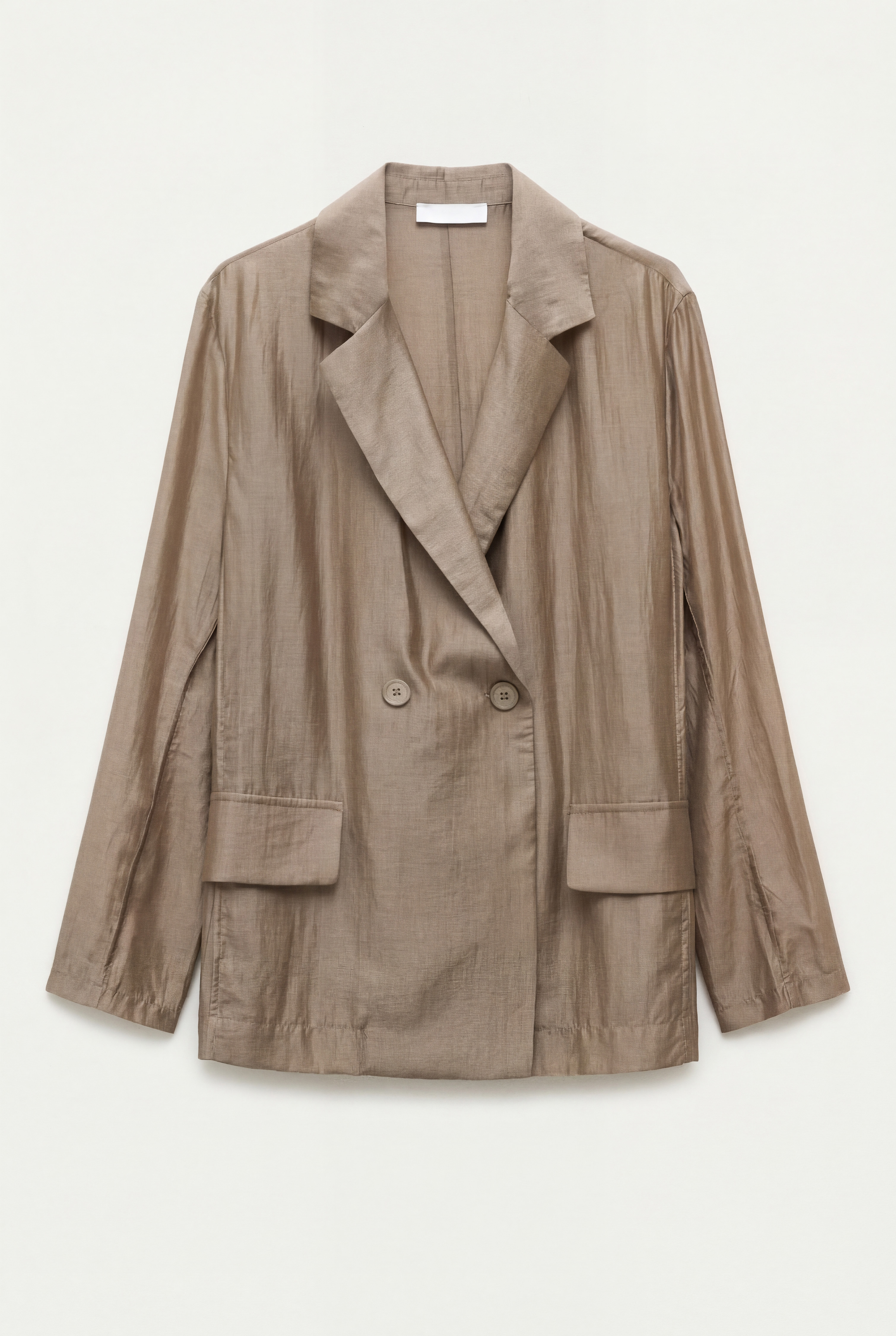Classic lapel collar. Long sleeves with contrasting cuffs.