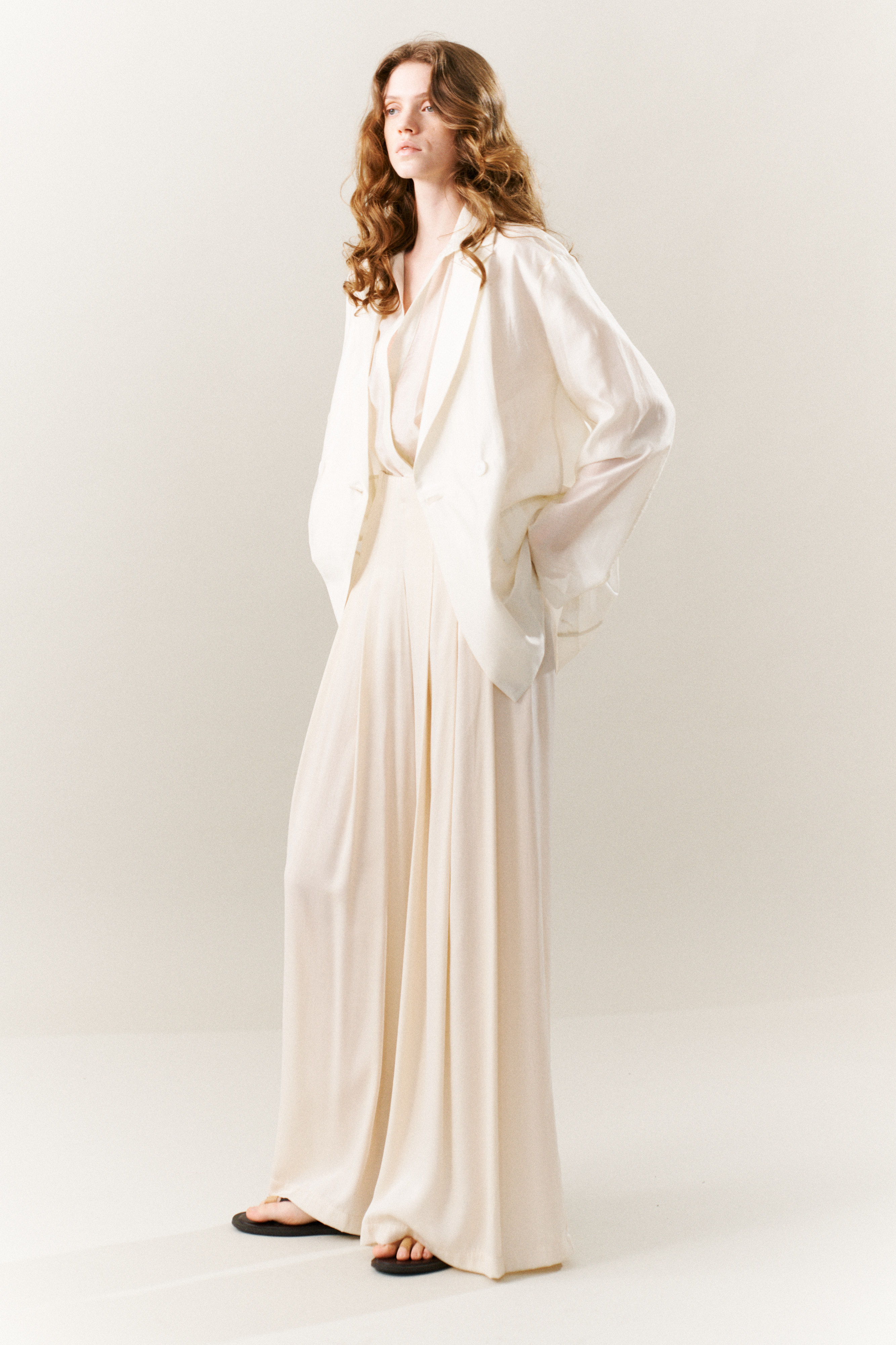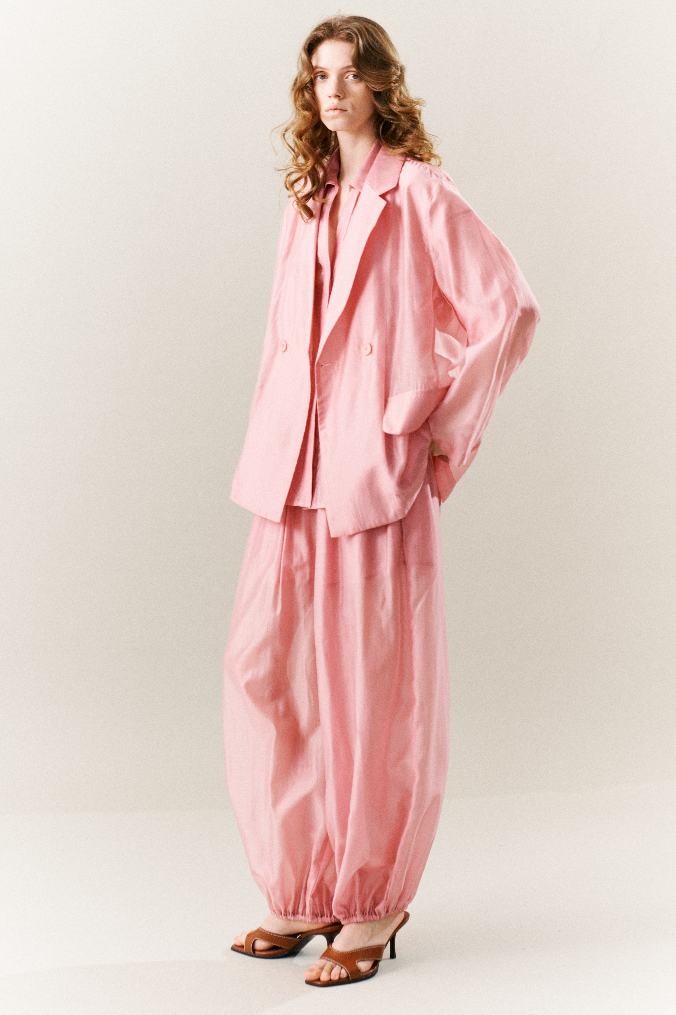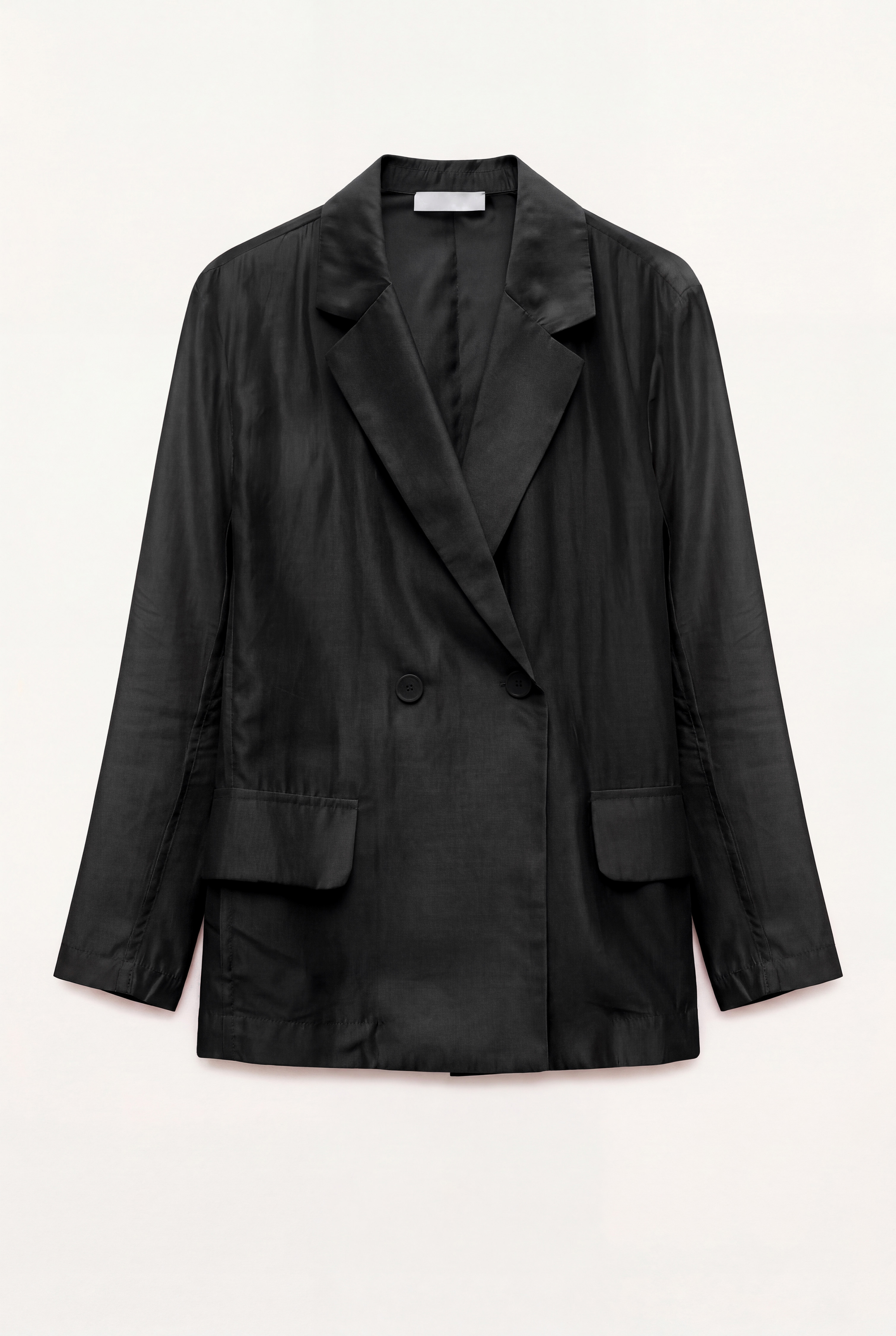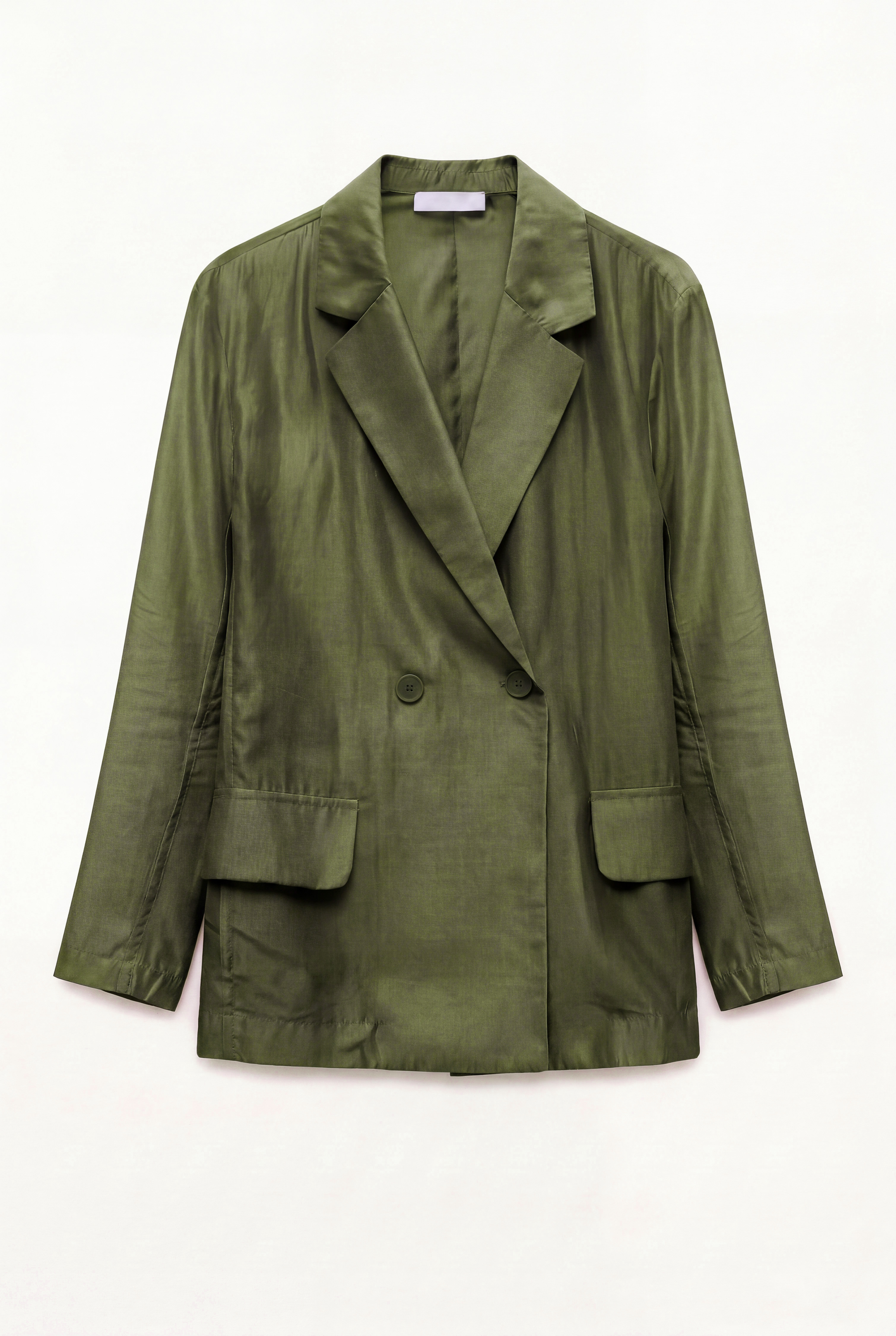 Classic lapel collar. Long sleeves with contrasting cuffs.