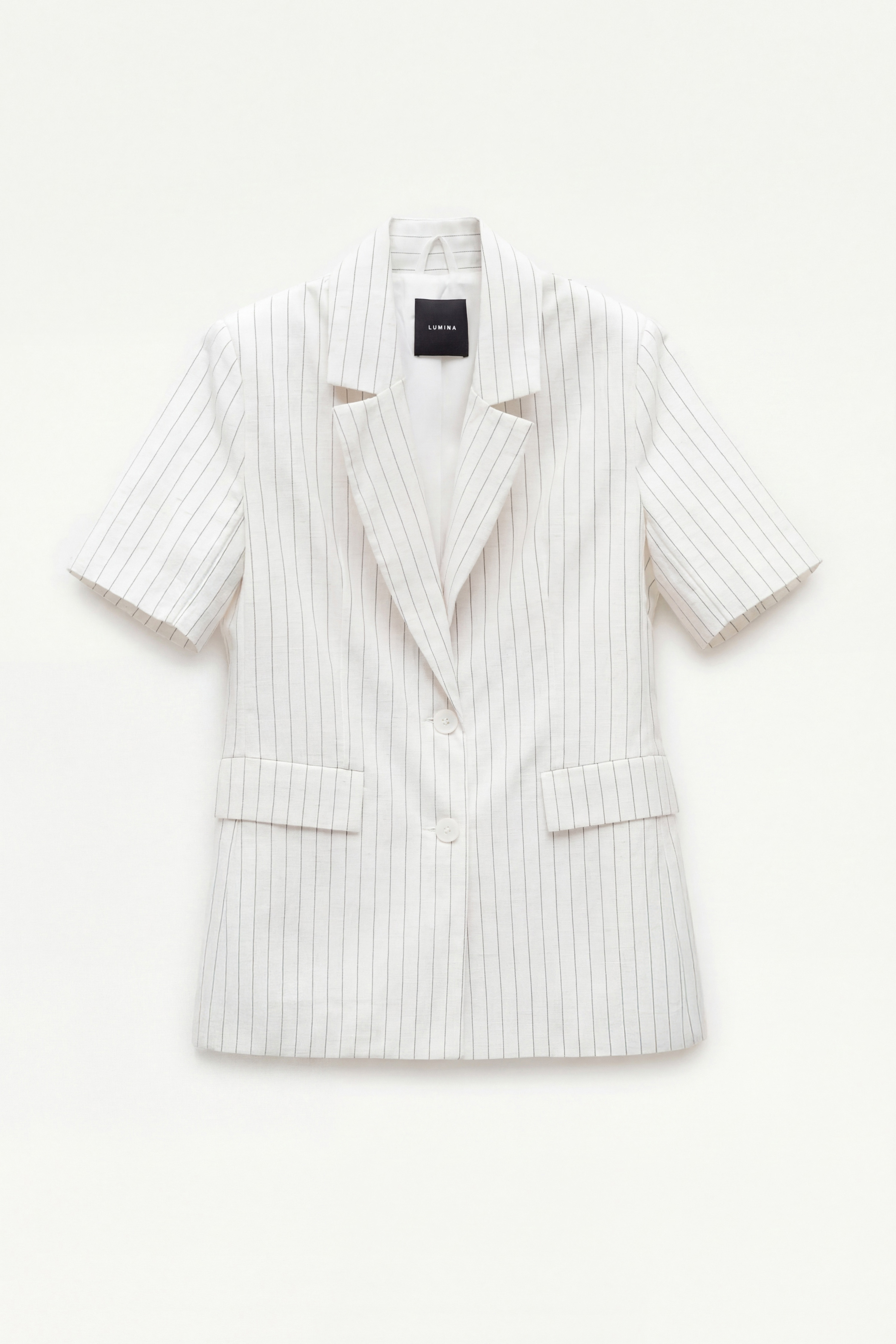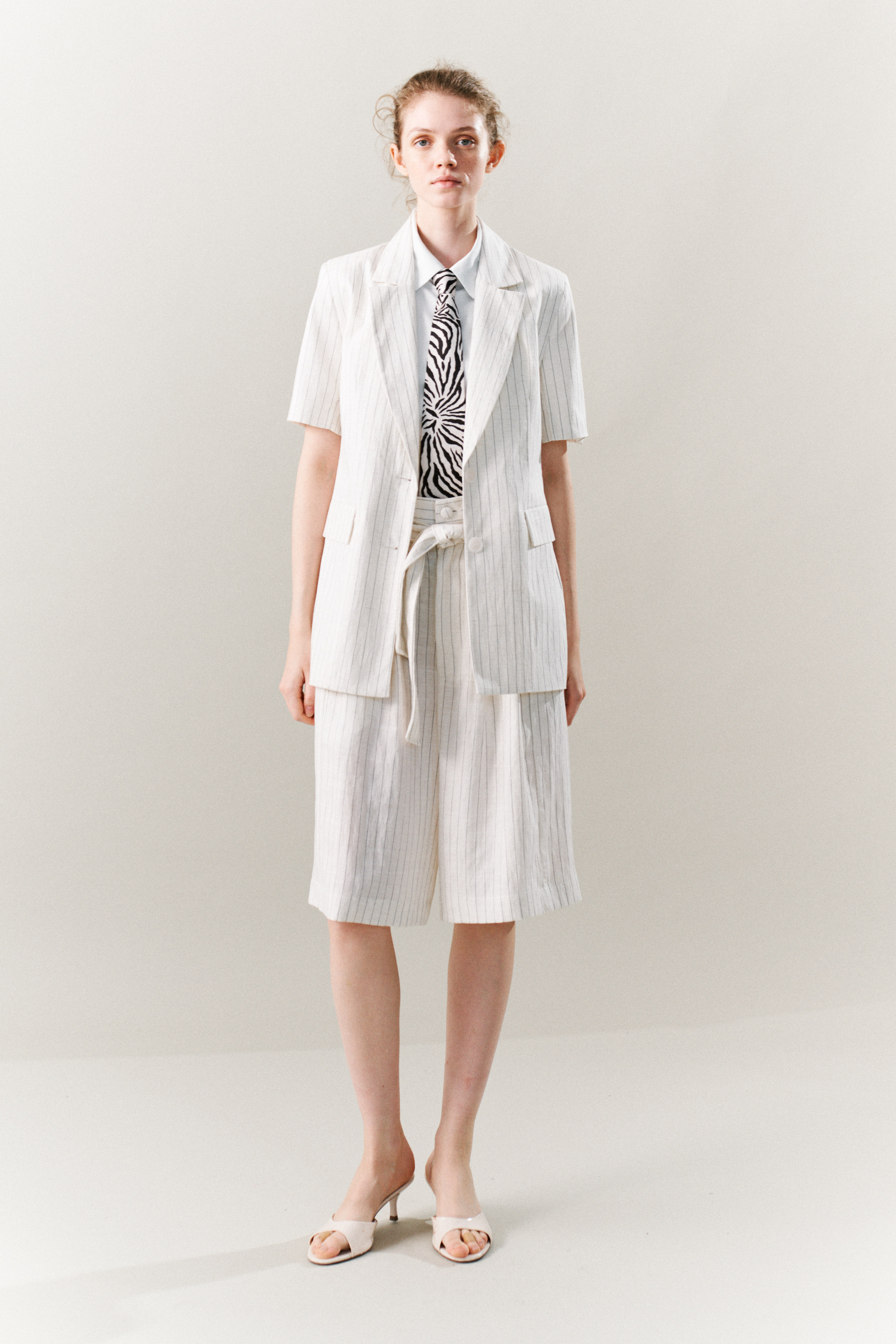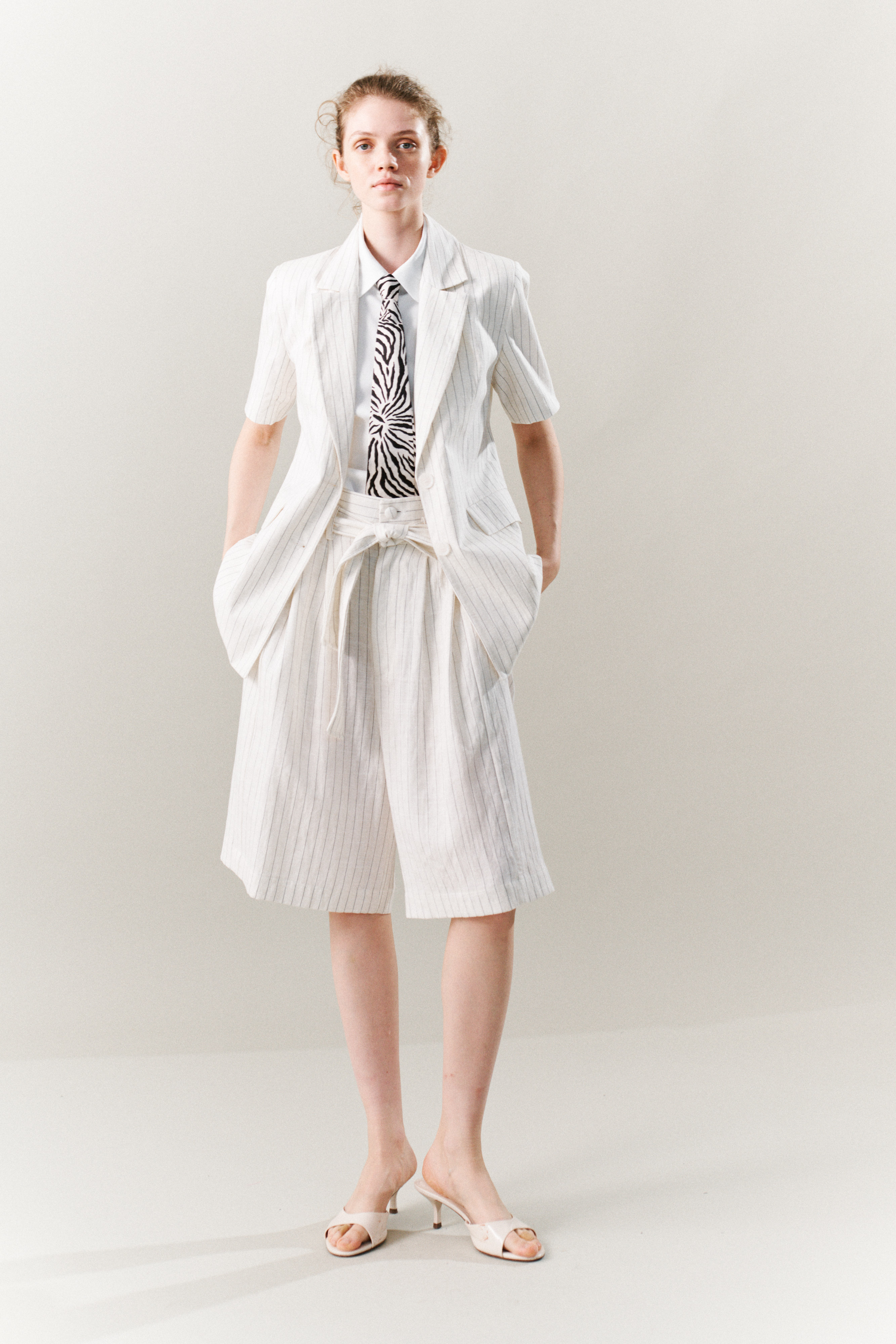 Classic lapel collar. Long sleeves with contrasting cuffs.