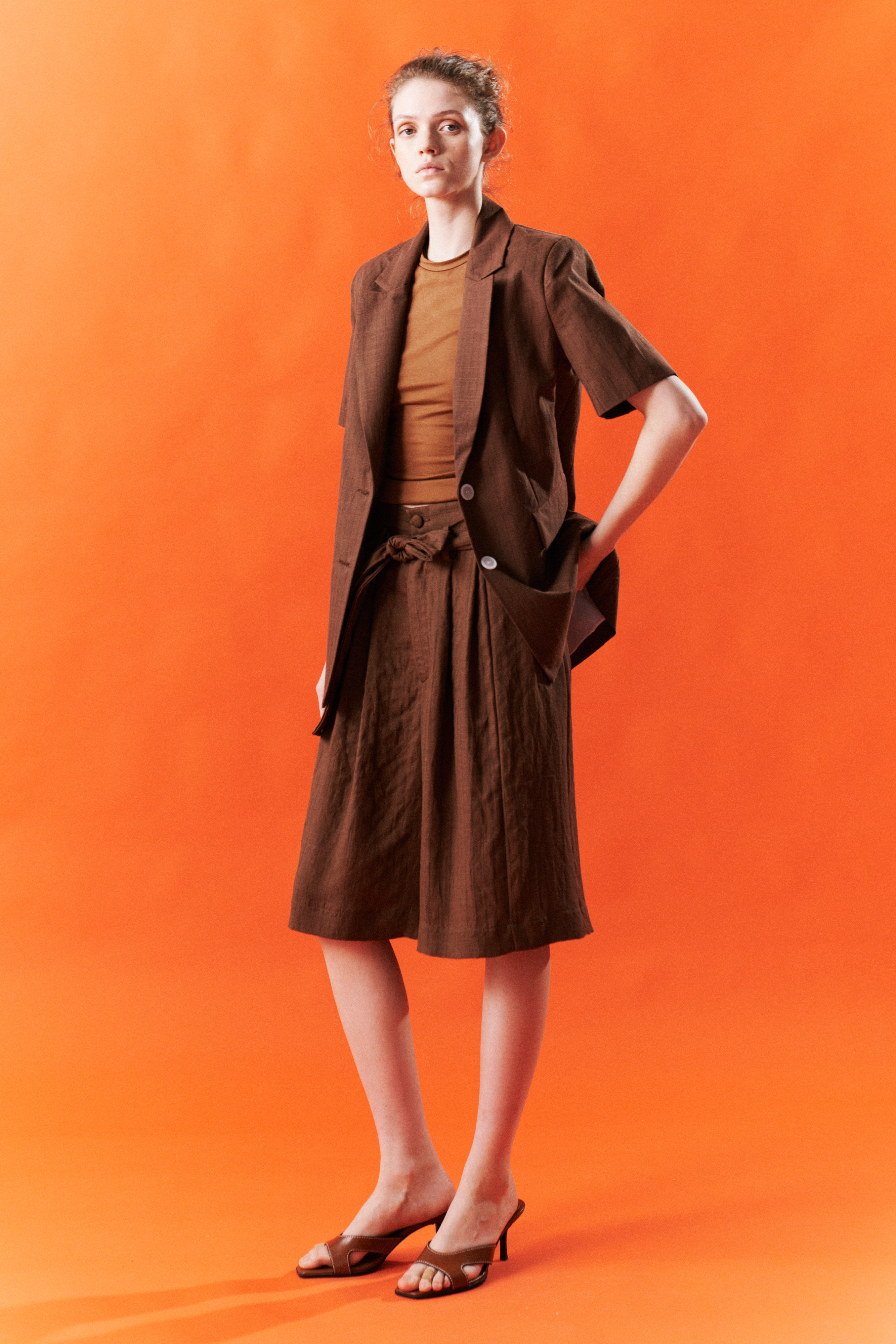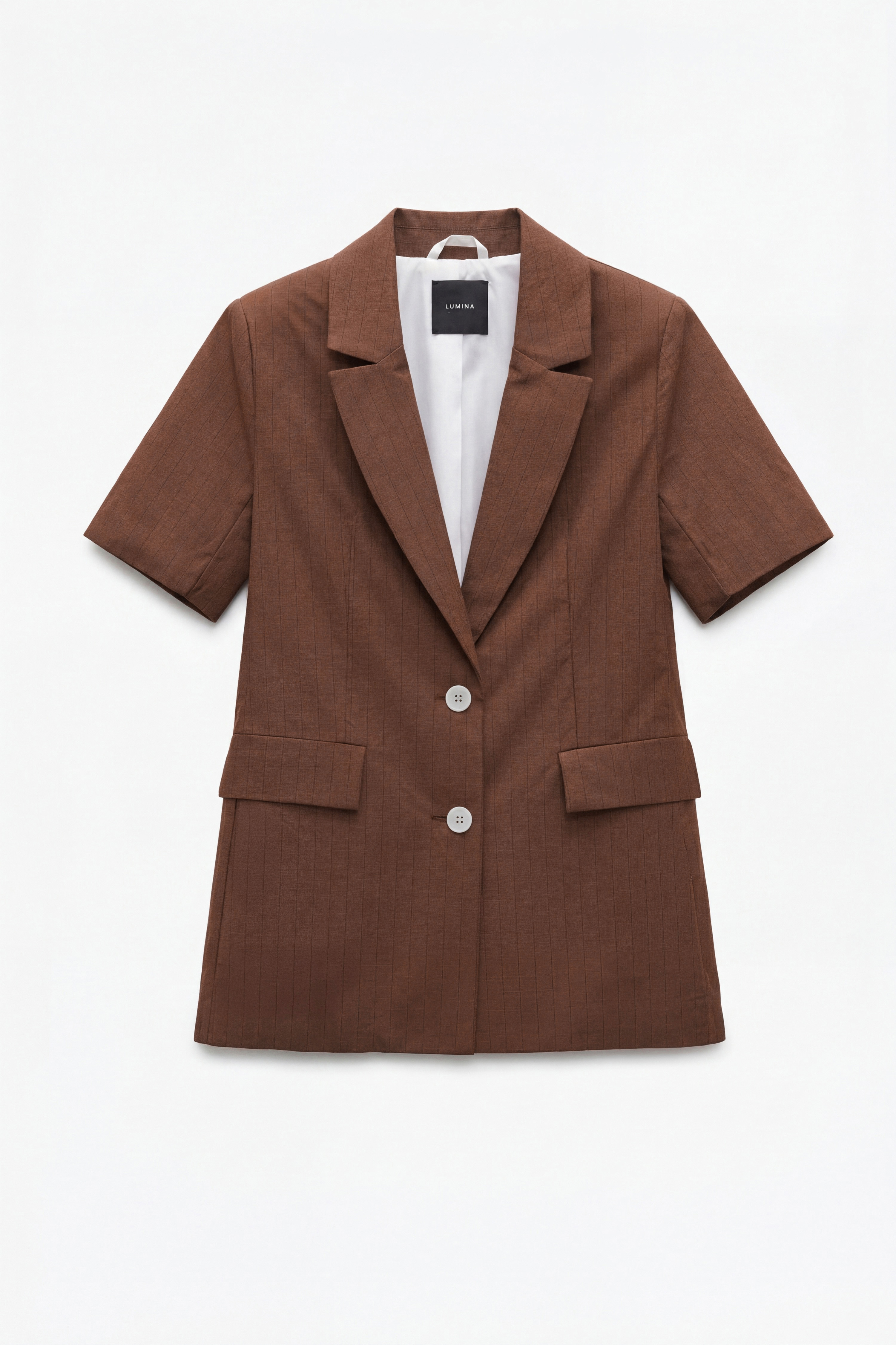 Classic lapel collar. Long sleeves with contrasting cuffs.