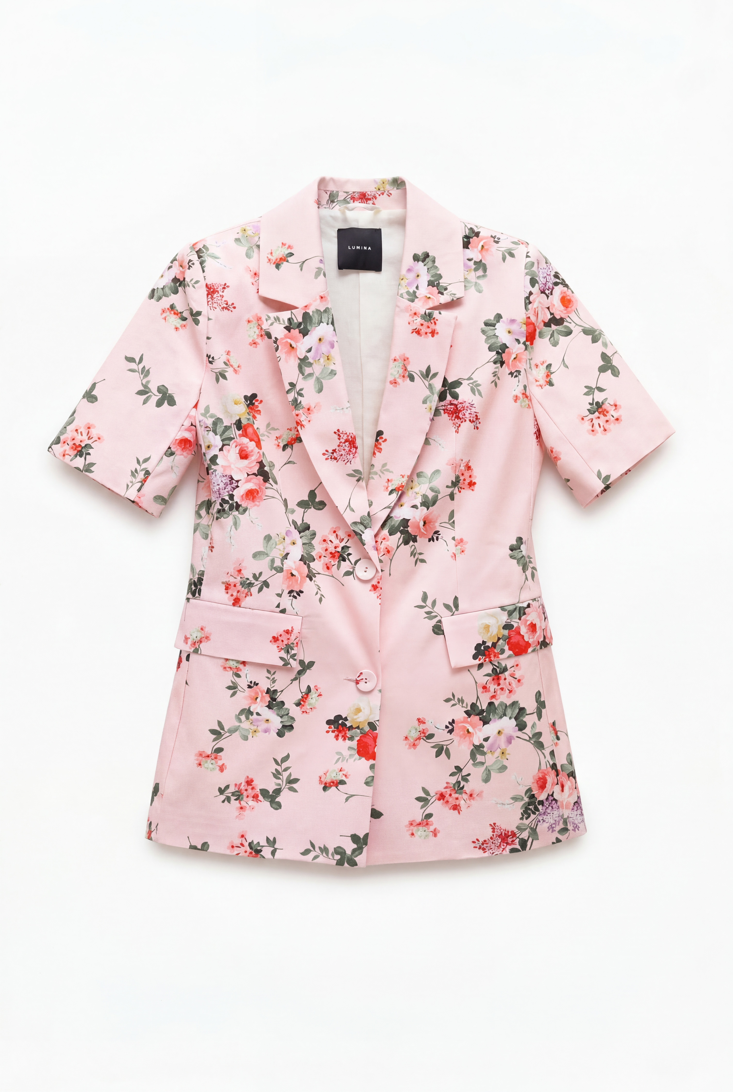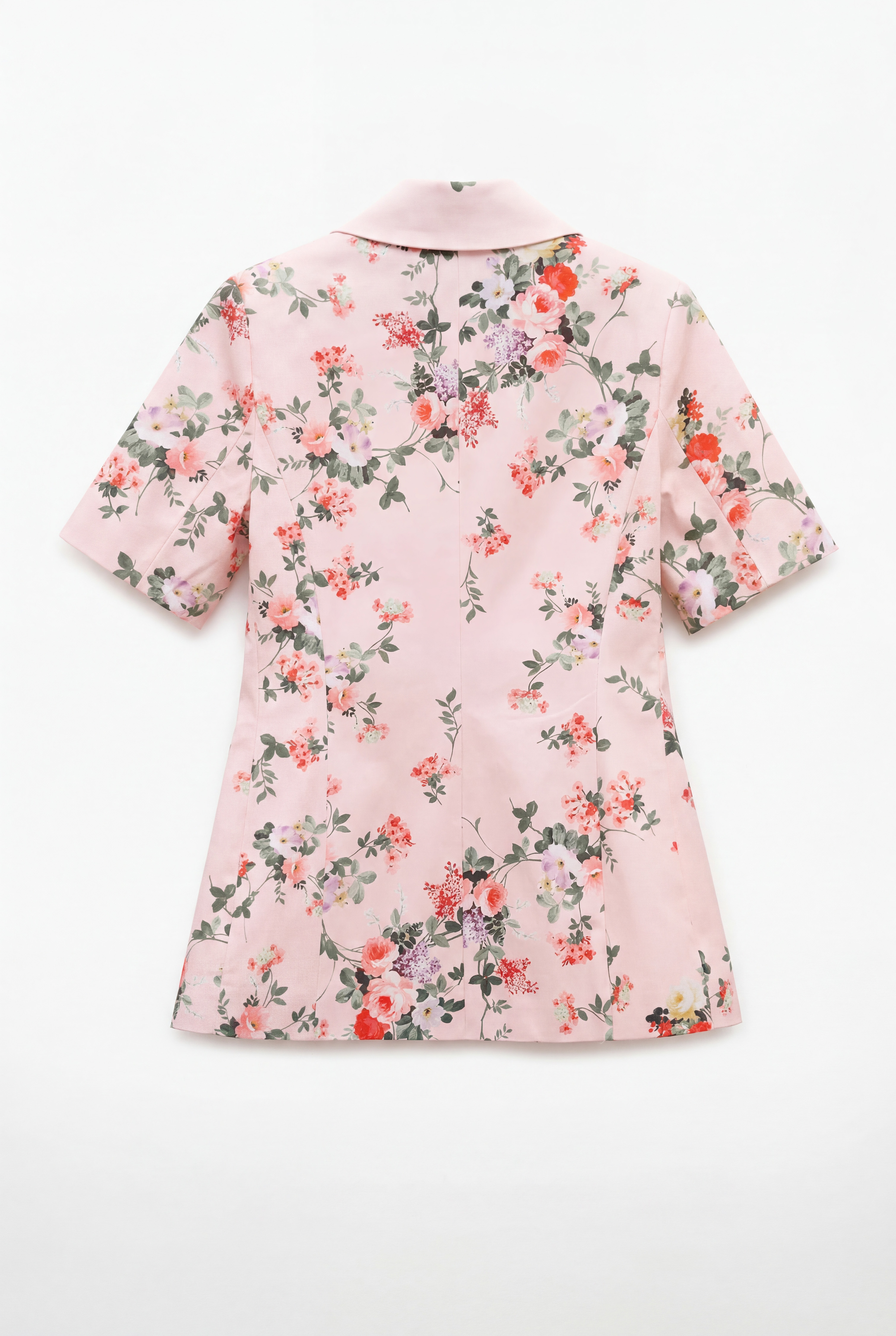 Classic lapel collar. Long sleeves with contrasting cuffs.