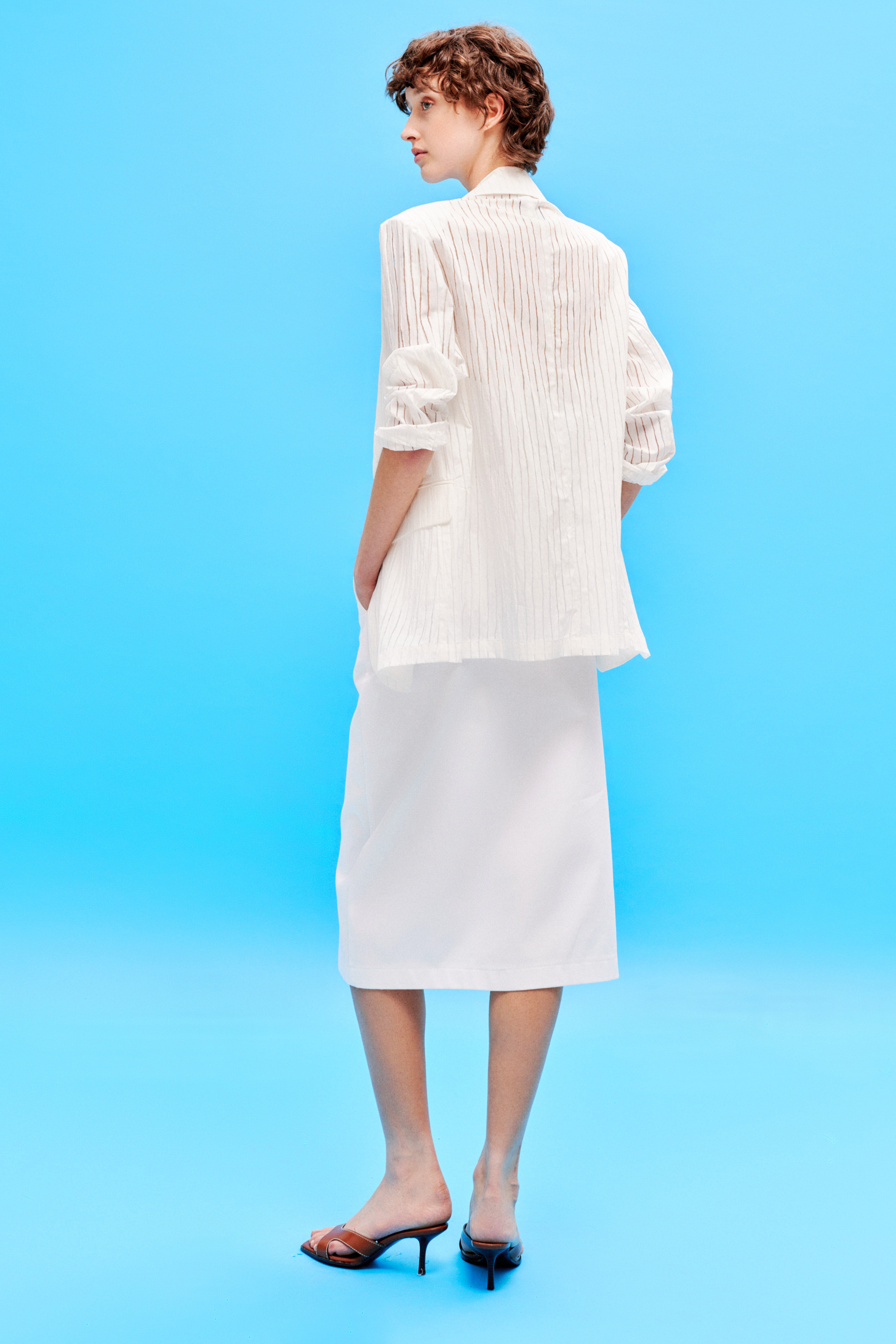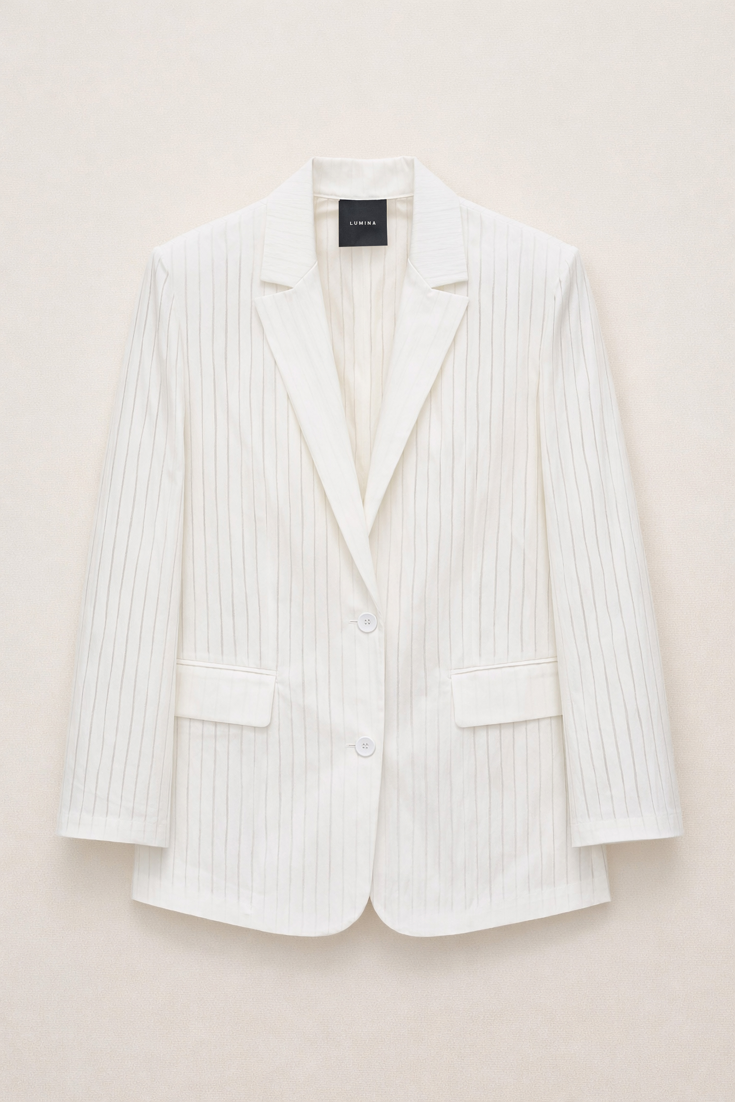Classic lapel collar. Long sleeves with contrasting cuffs.
