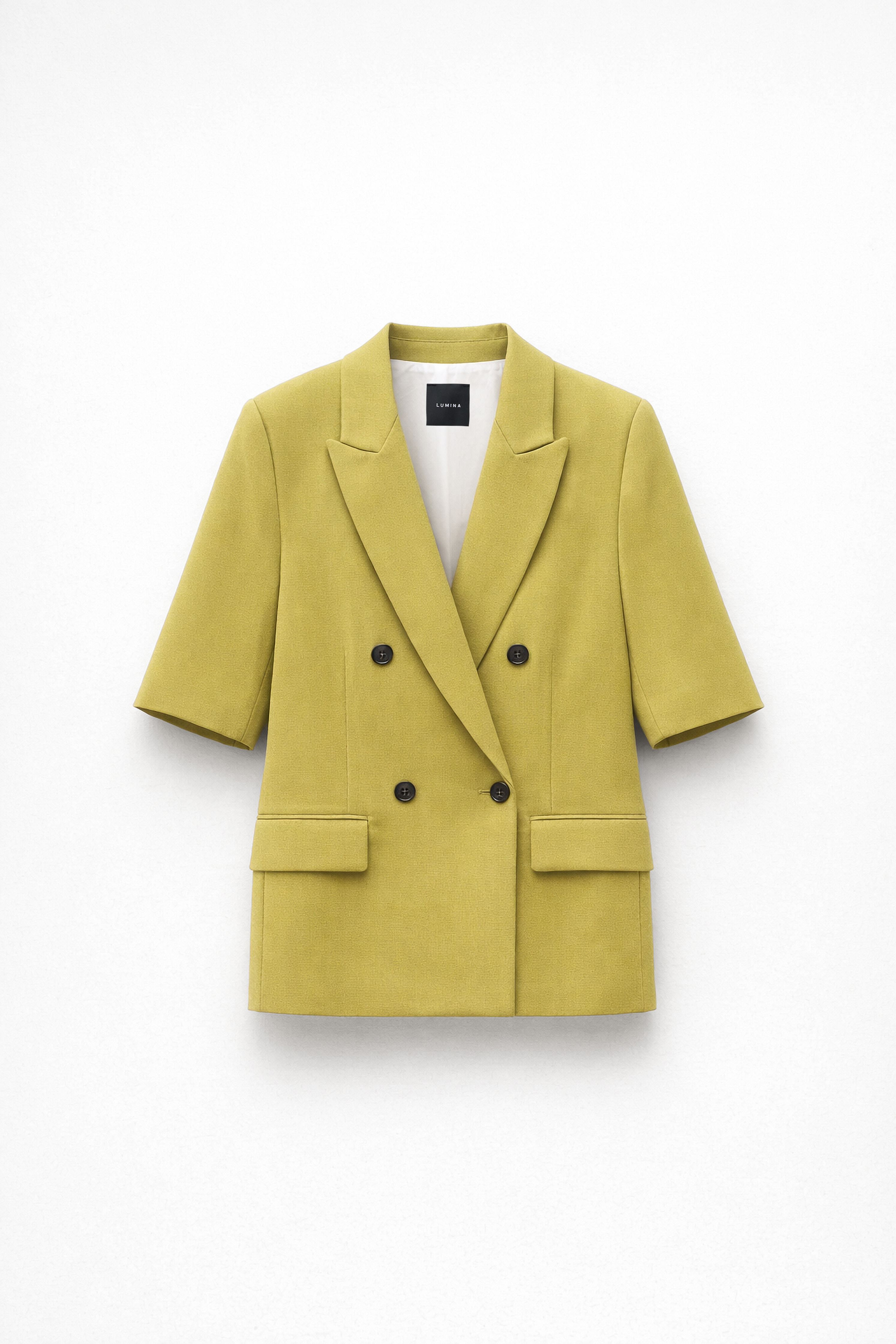 Lapel collar. Short sleeves. Lining.