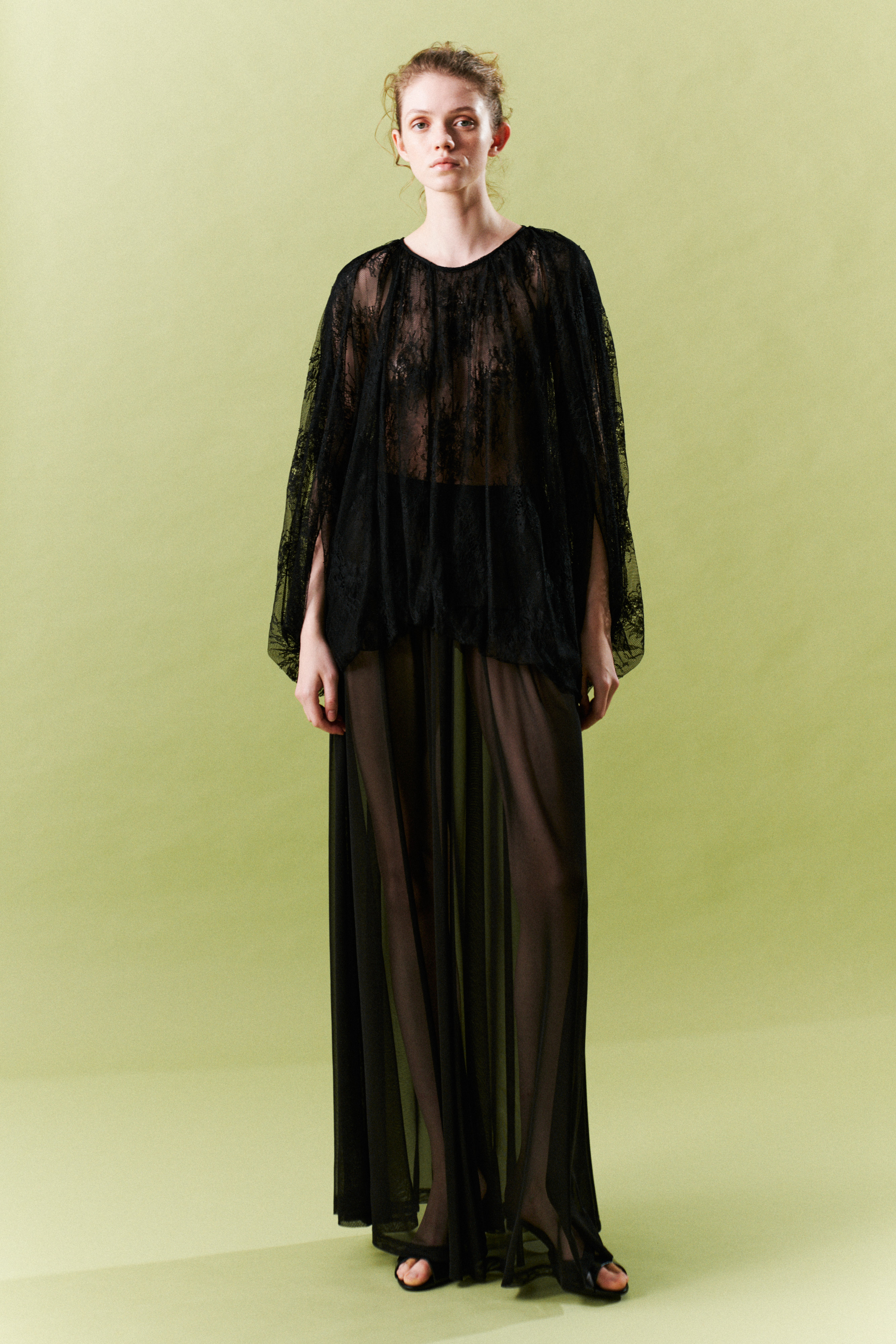 Tulle trousers with floral lace embroidery.