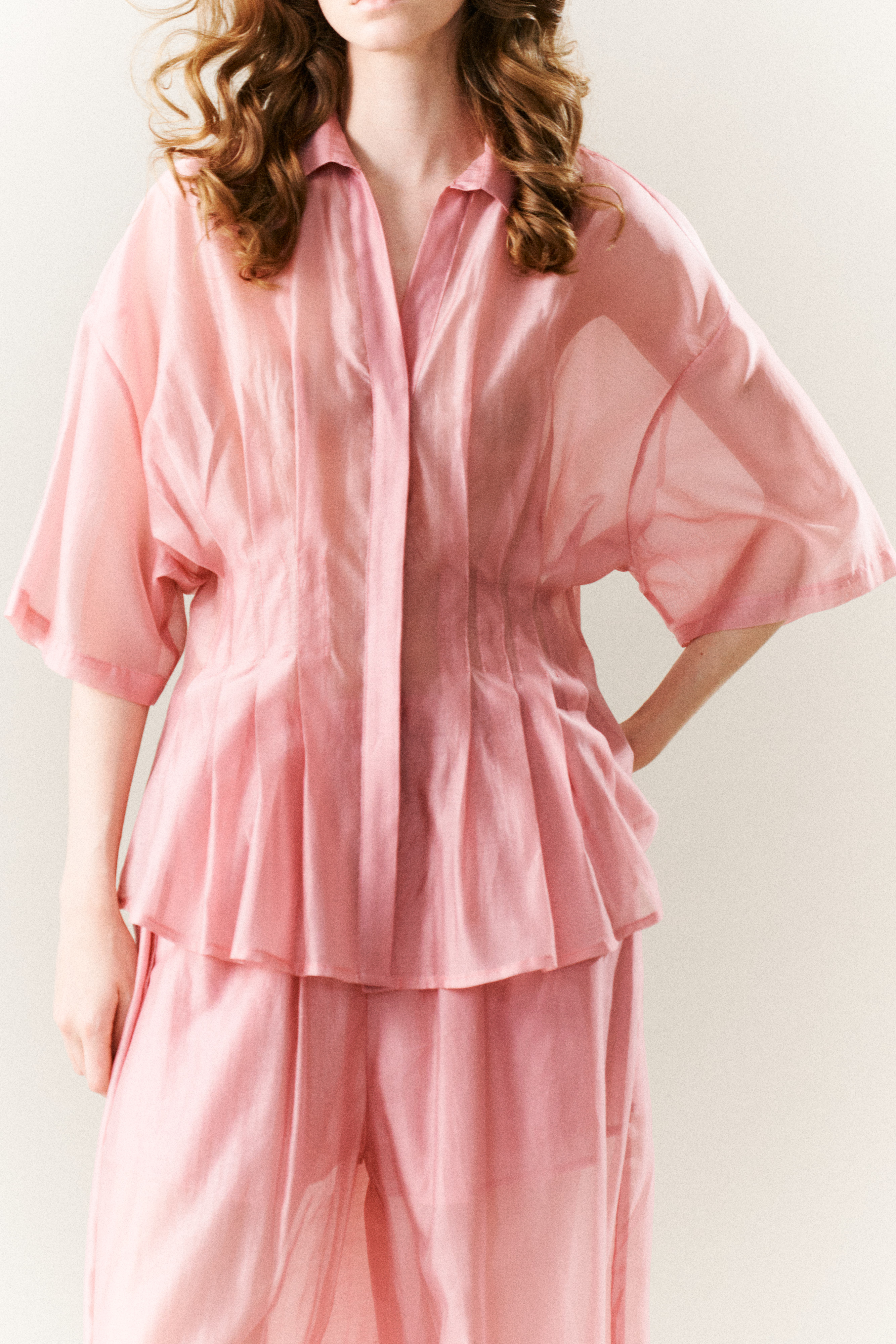 Sleeveless blouse in lightweight lyocell blend fabric.