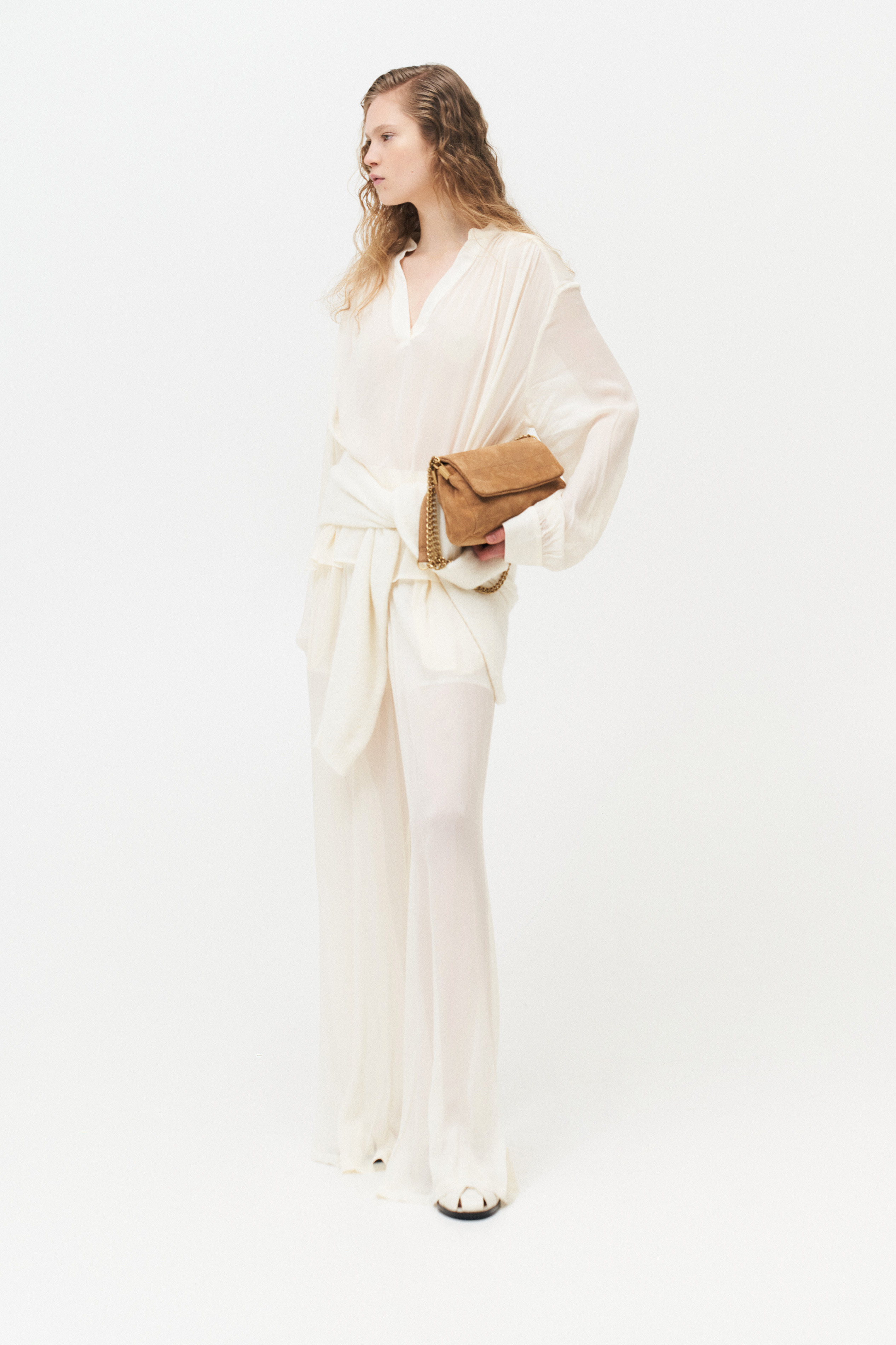 Blouse with long balloon sleeves.