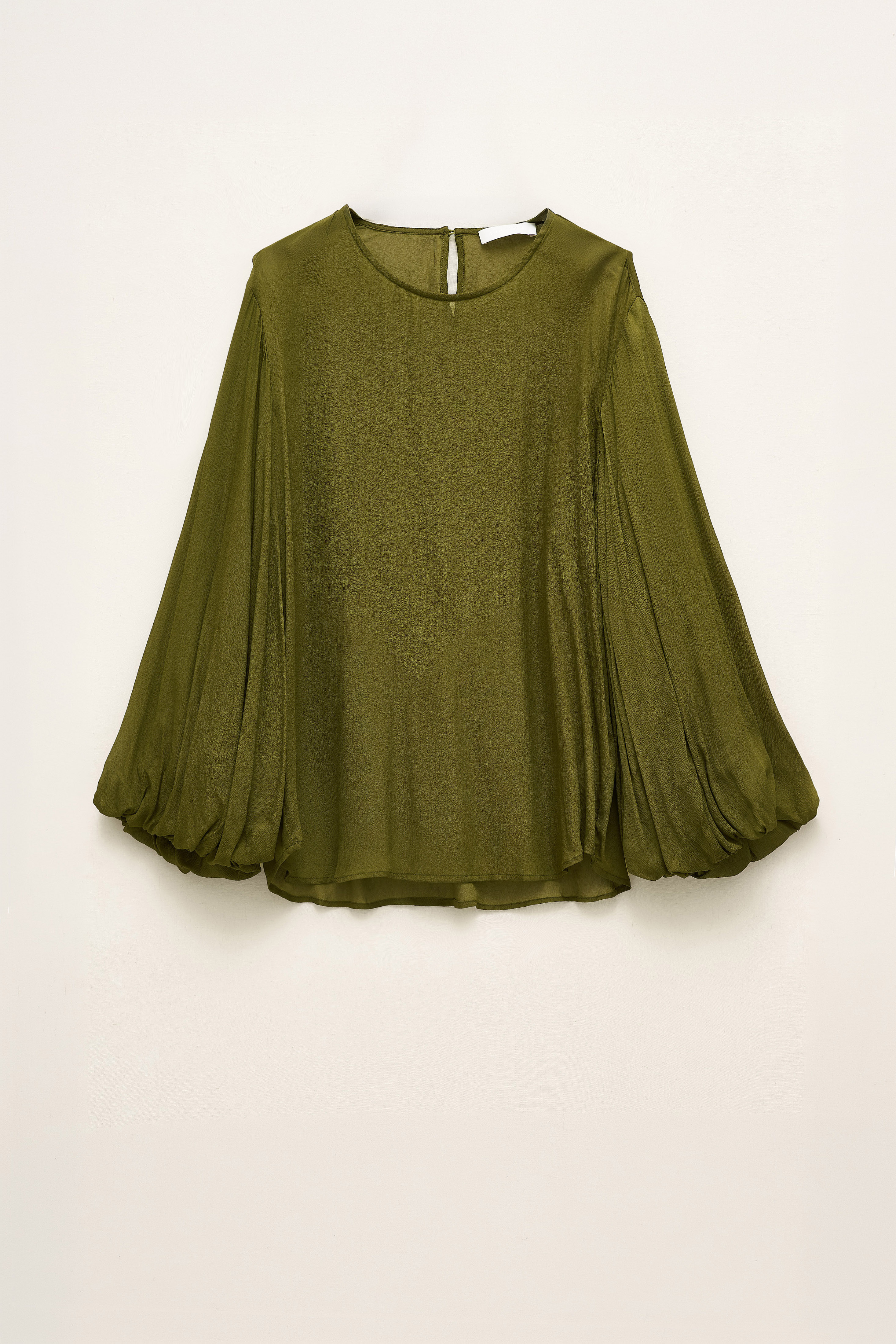 Blouse with long balloon sleeves.