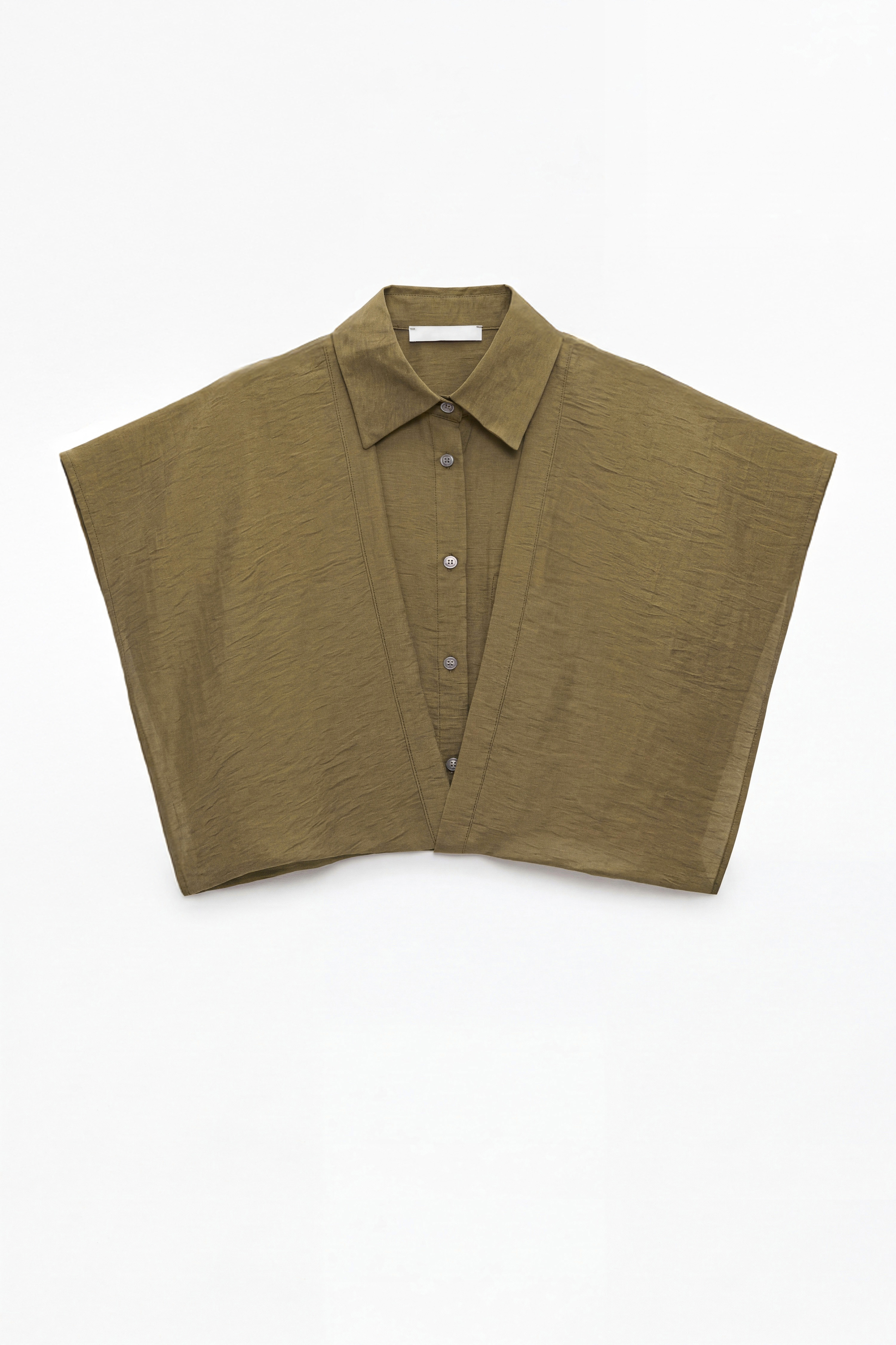 Semi-sheer sleeveless blouse in linen blend. Pointed collar. Patch pocket on the chest. Button detail on the shoulders to adjust and transform the line of the garment from structured to smooth. Front fastening with tone-on-tone buttons. Regular fit, available in size S/M, M/L.