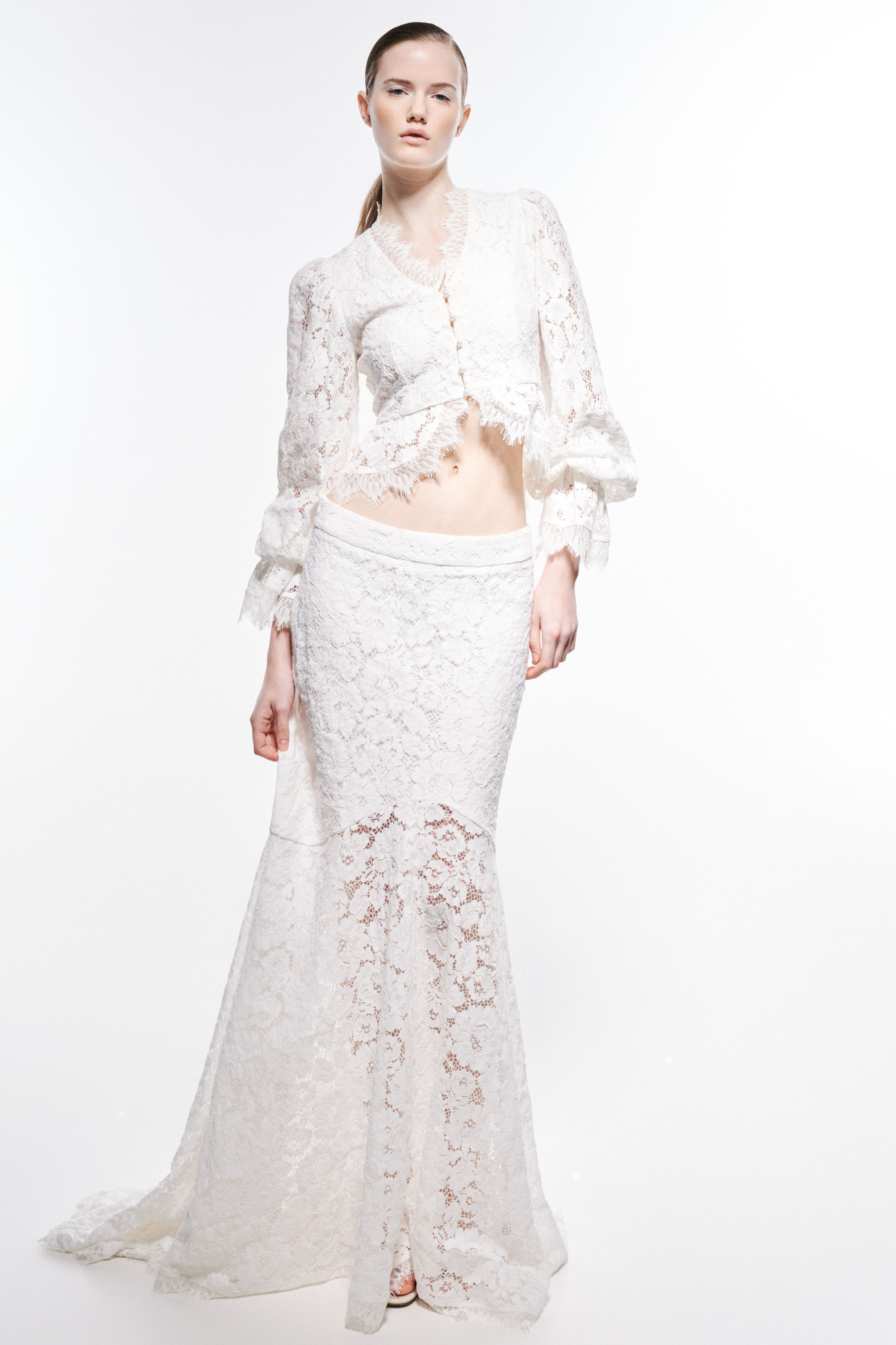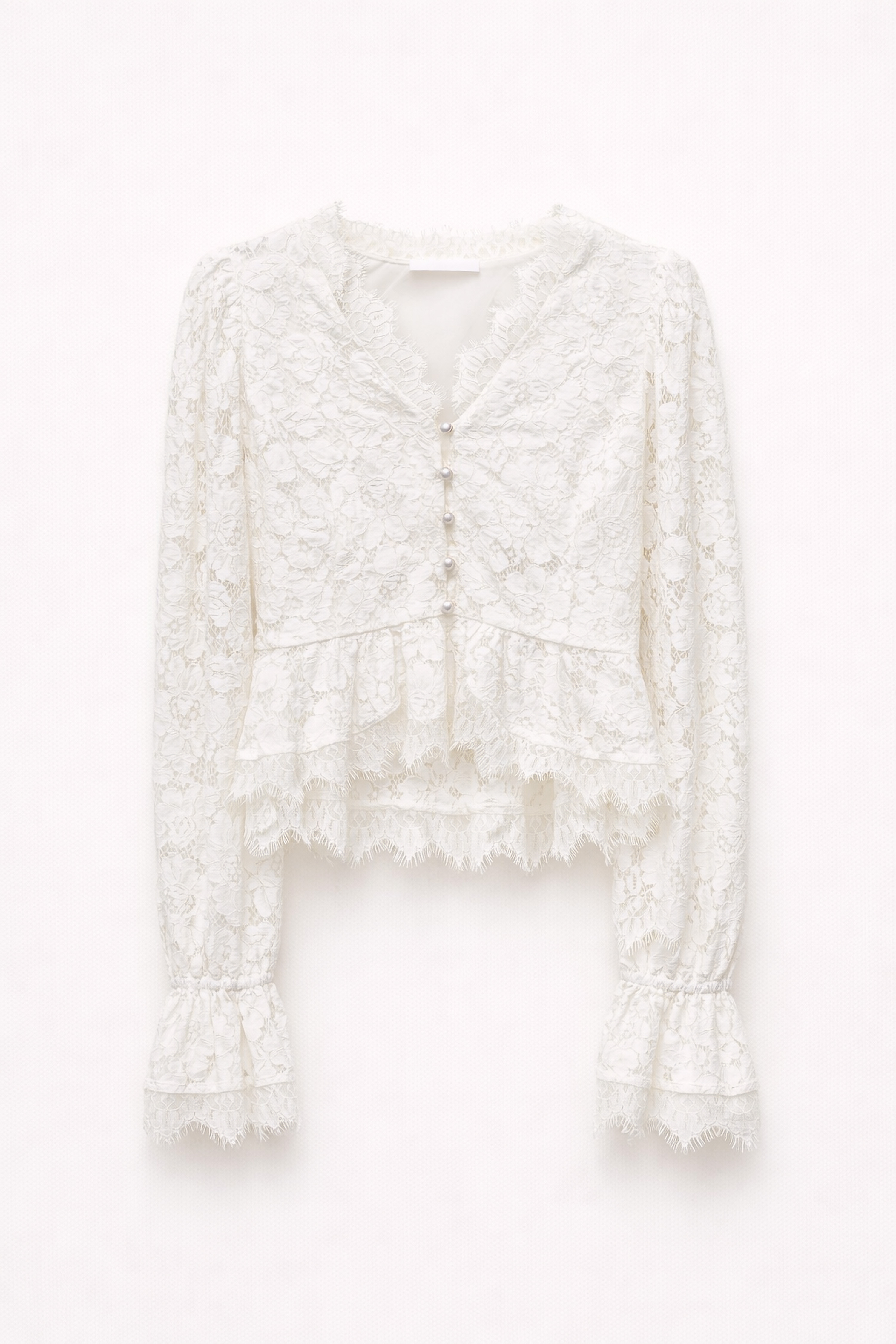 Blouse made of floral lace fabric.