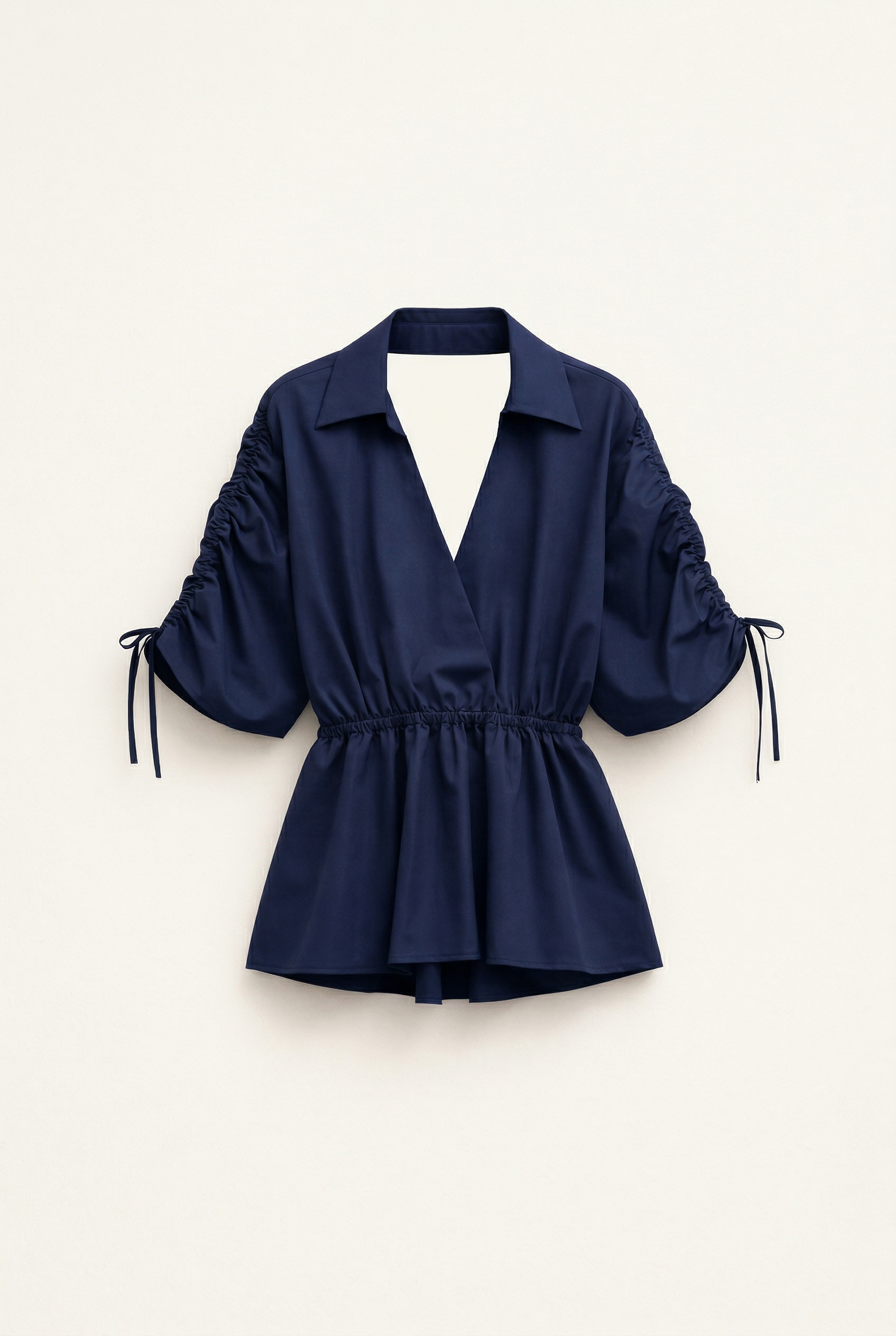 Cotton blouse with deep crossover V-neck.