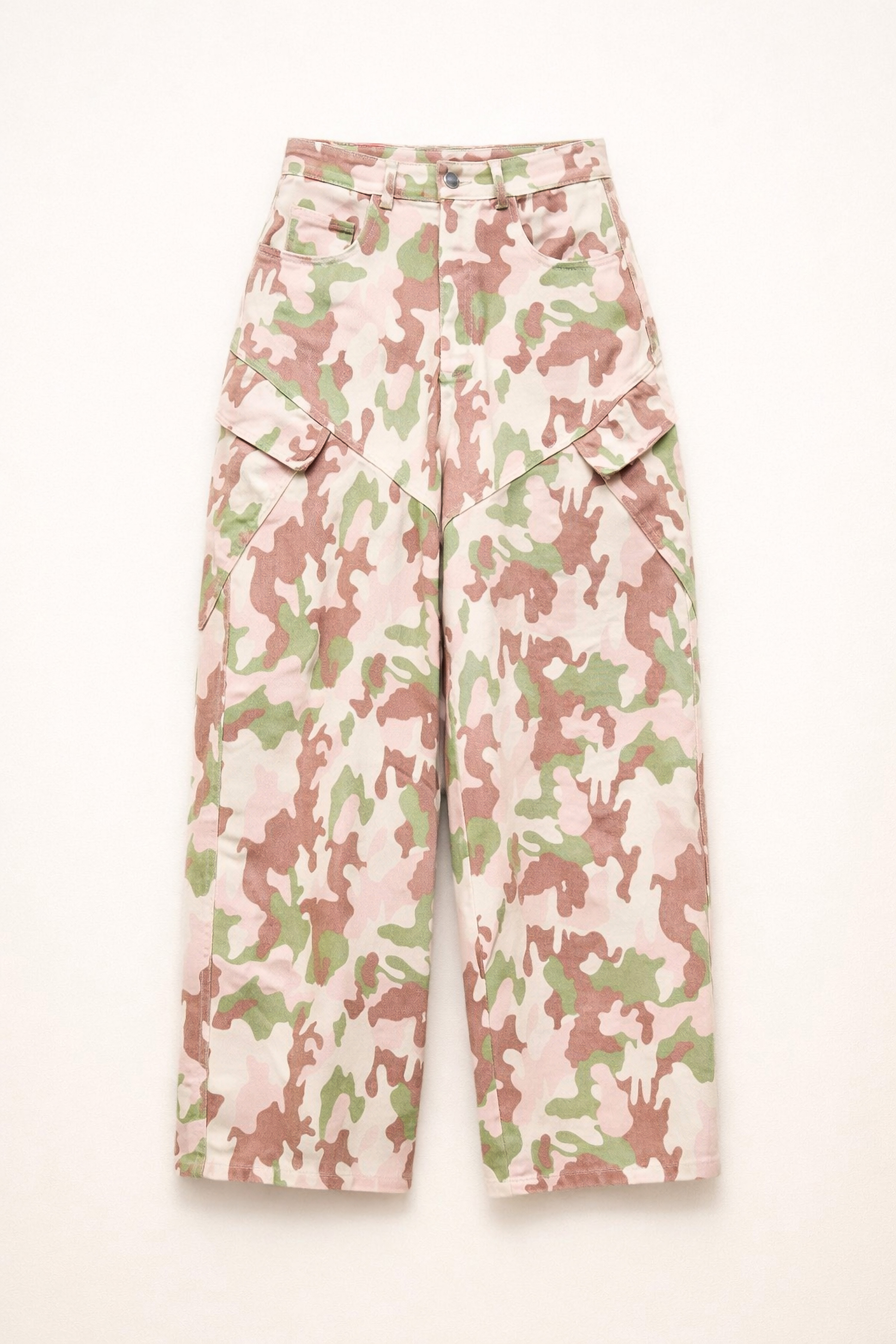 Gathered inserts on the legs. Elasticated leg cuffs.