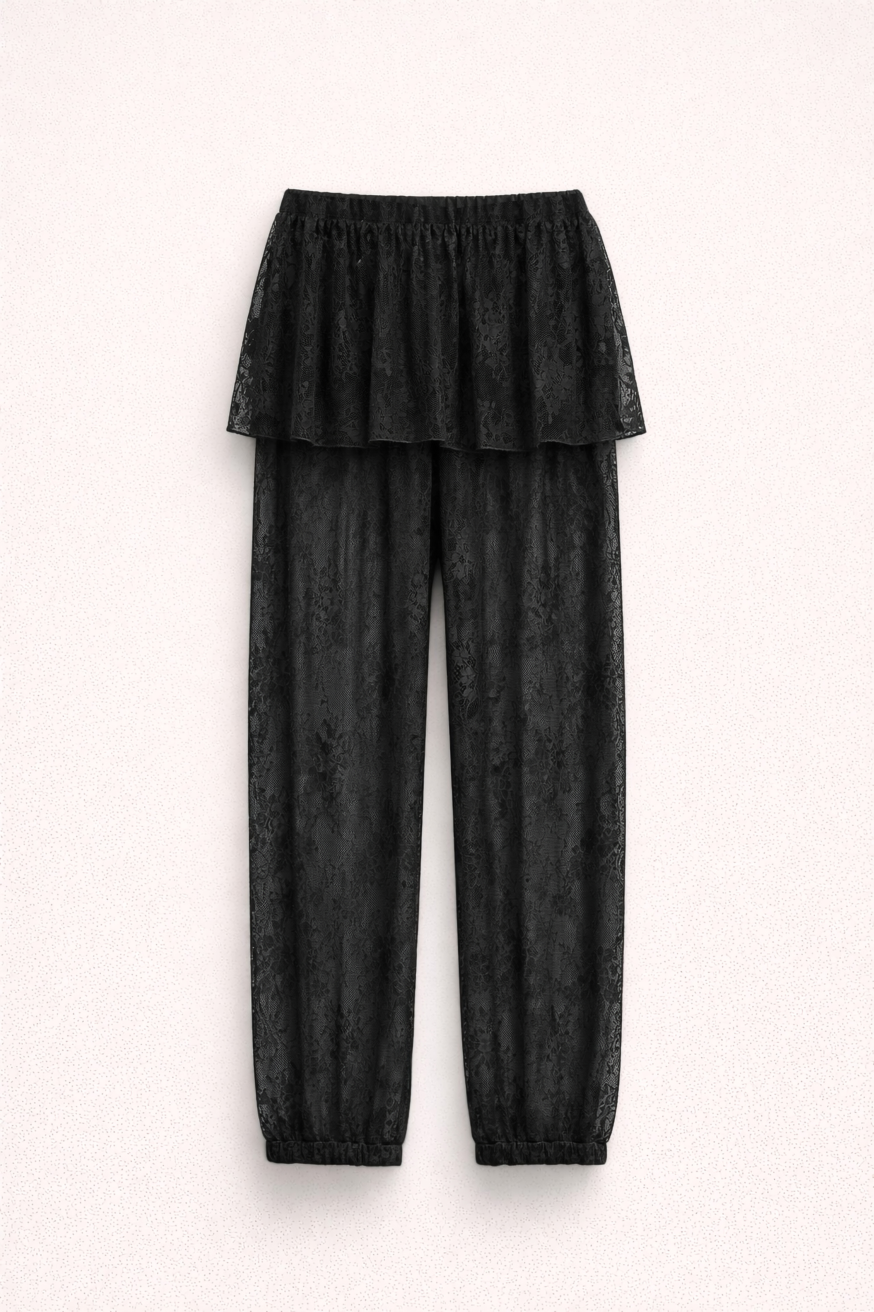 Gathered inserts on the legs. Elasticated leg cuffs.