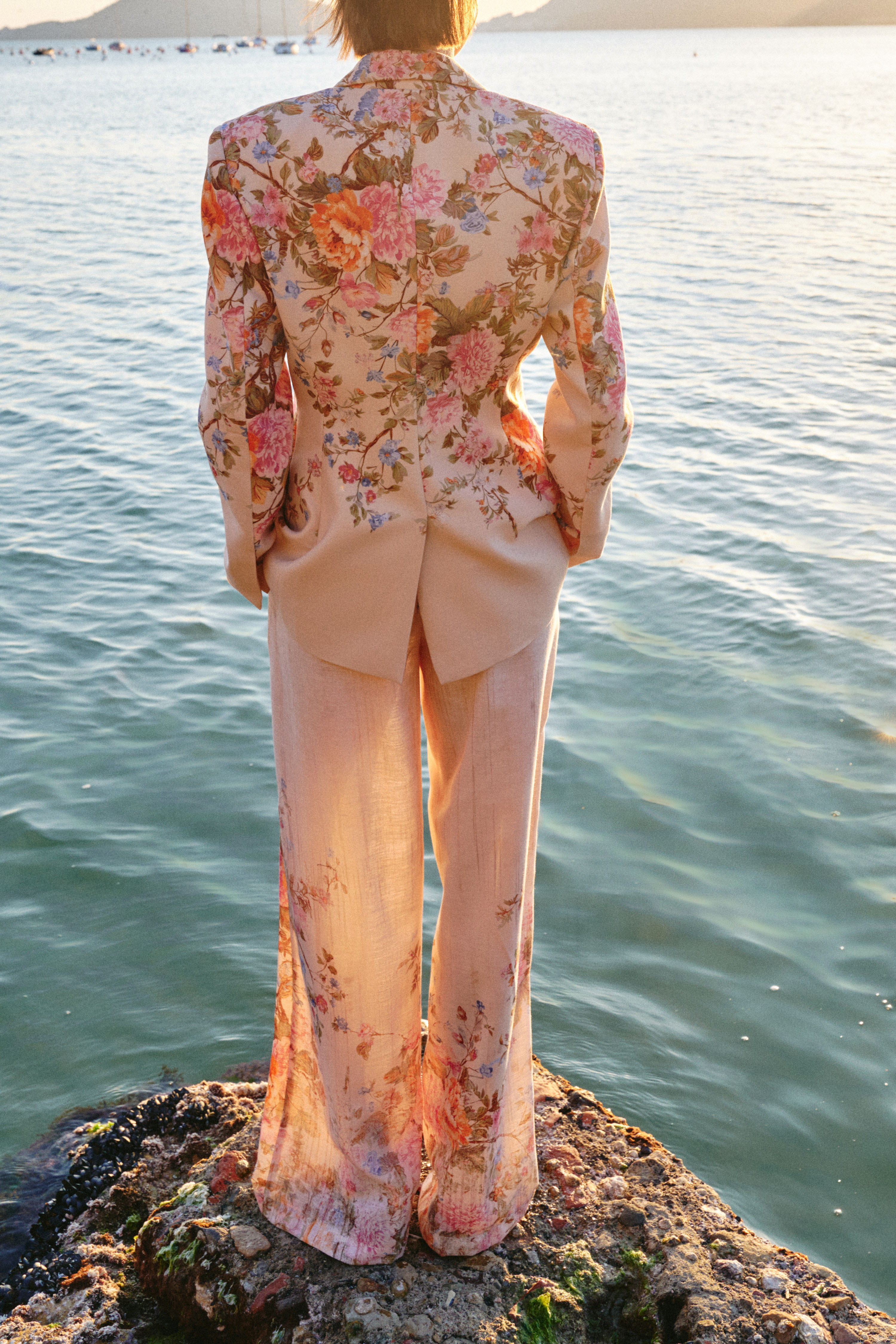 Cropped trousers with floral print.