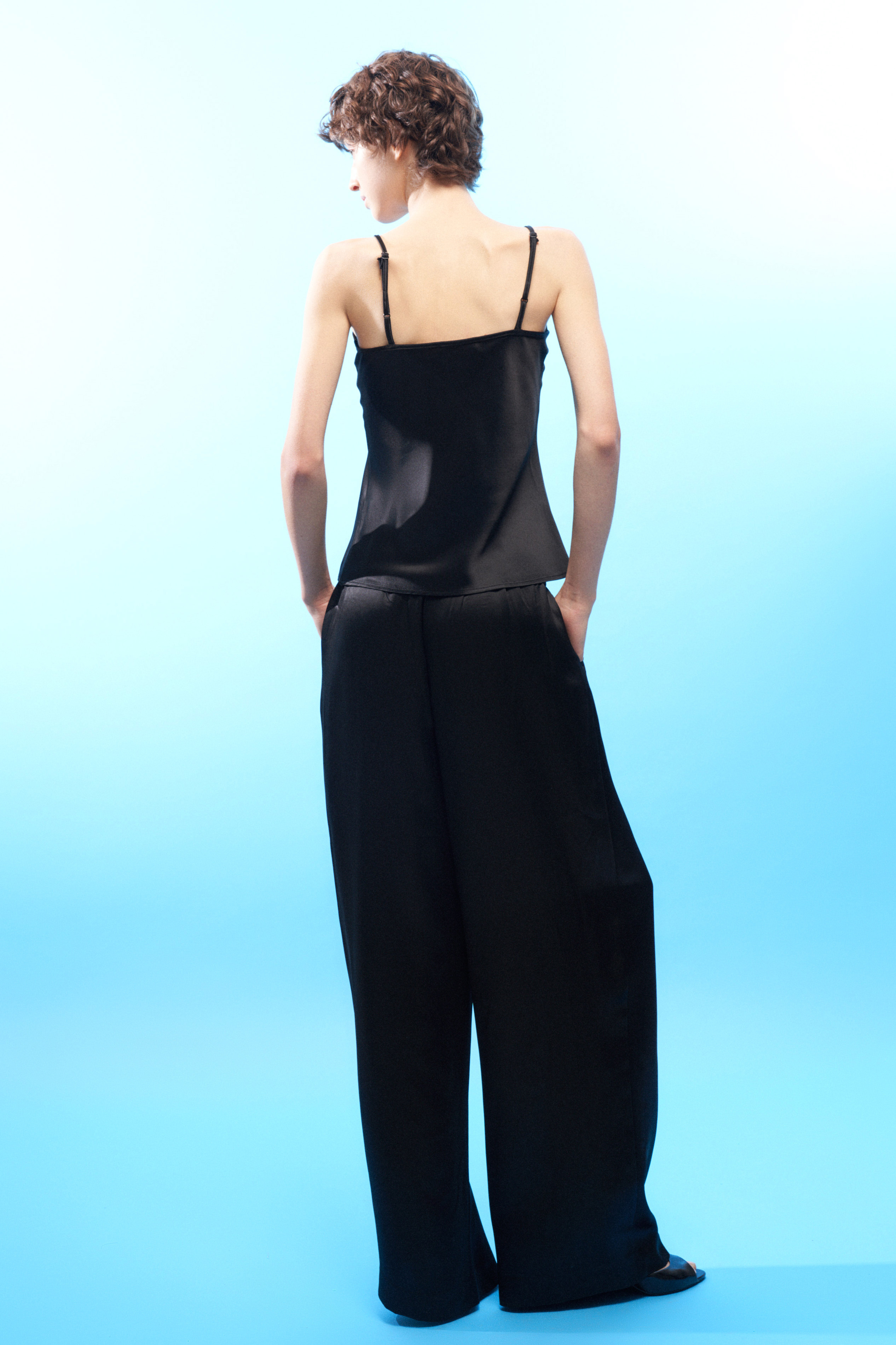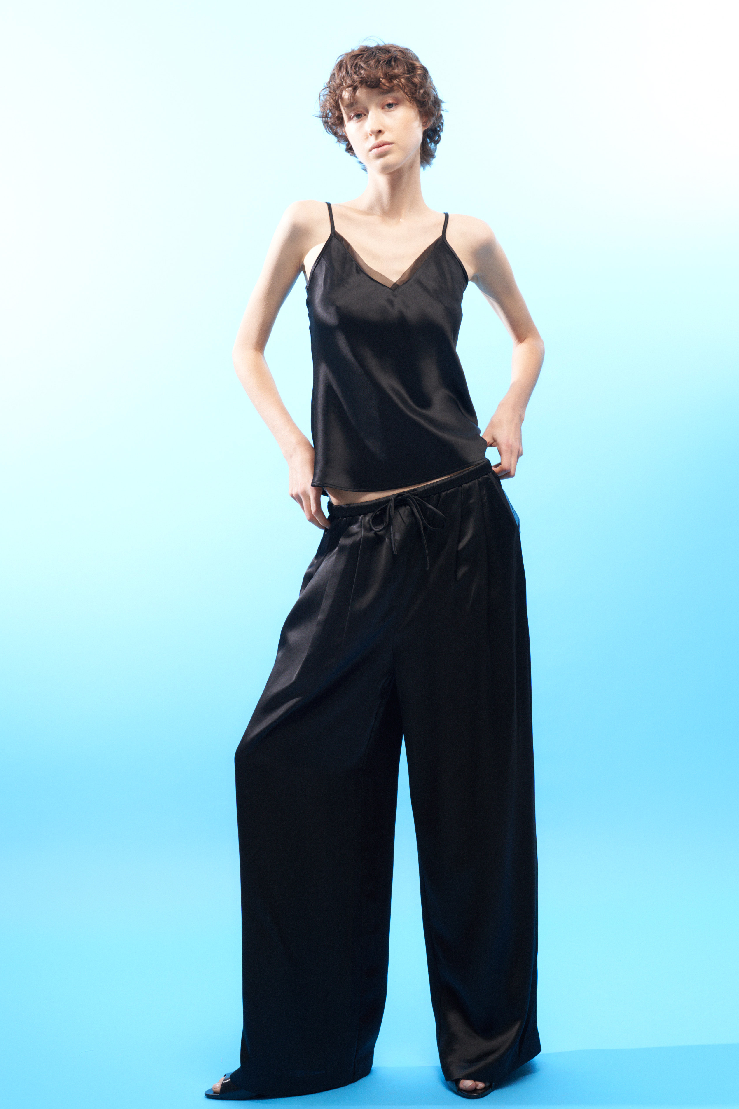 Gathered inserts on the legs. Elasticated leg cuffs.