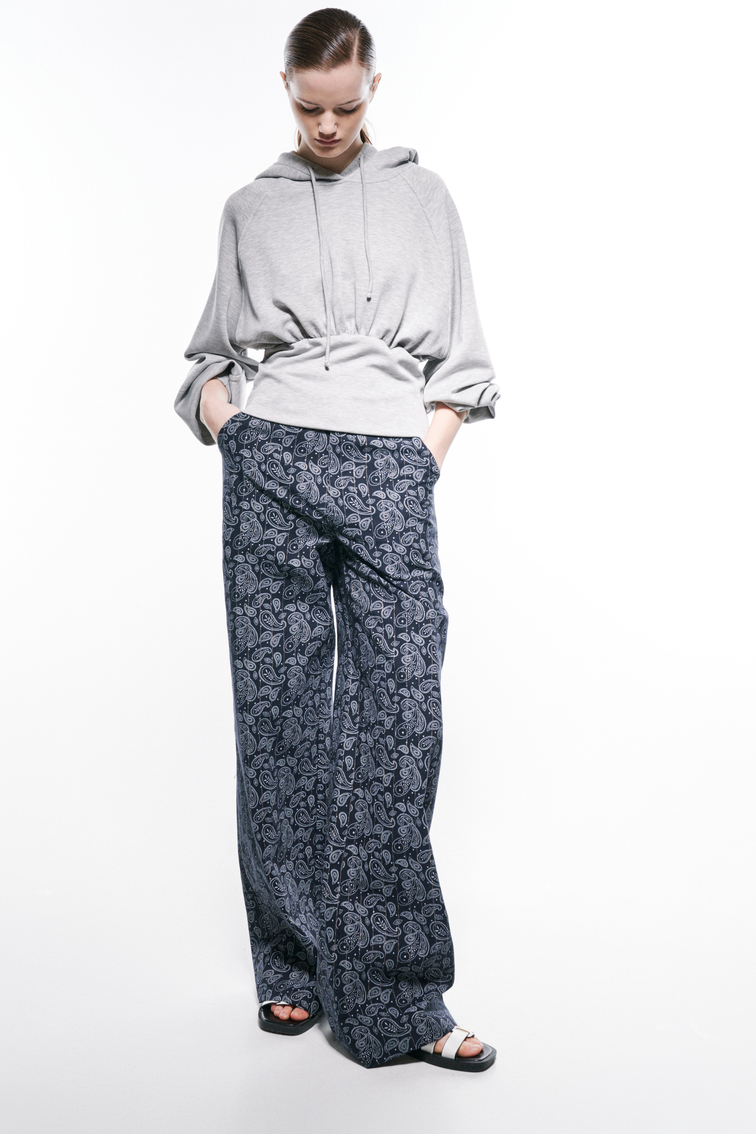 Gathered inserts on the legs. Elasticated leg cuffs.